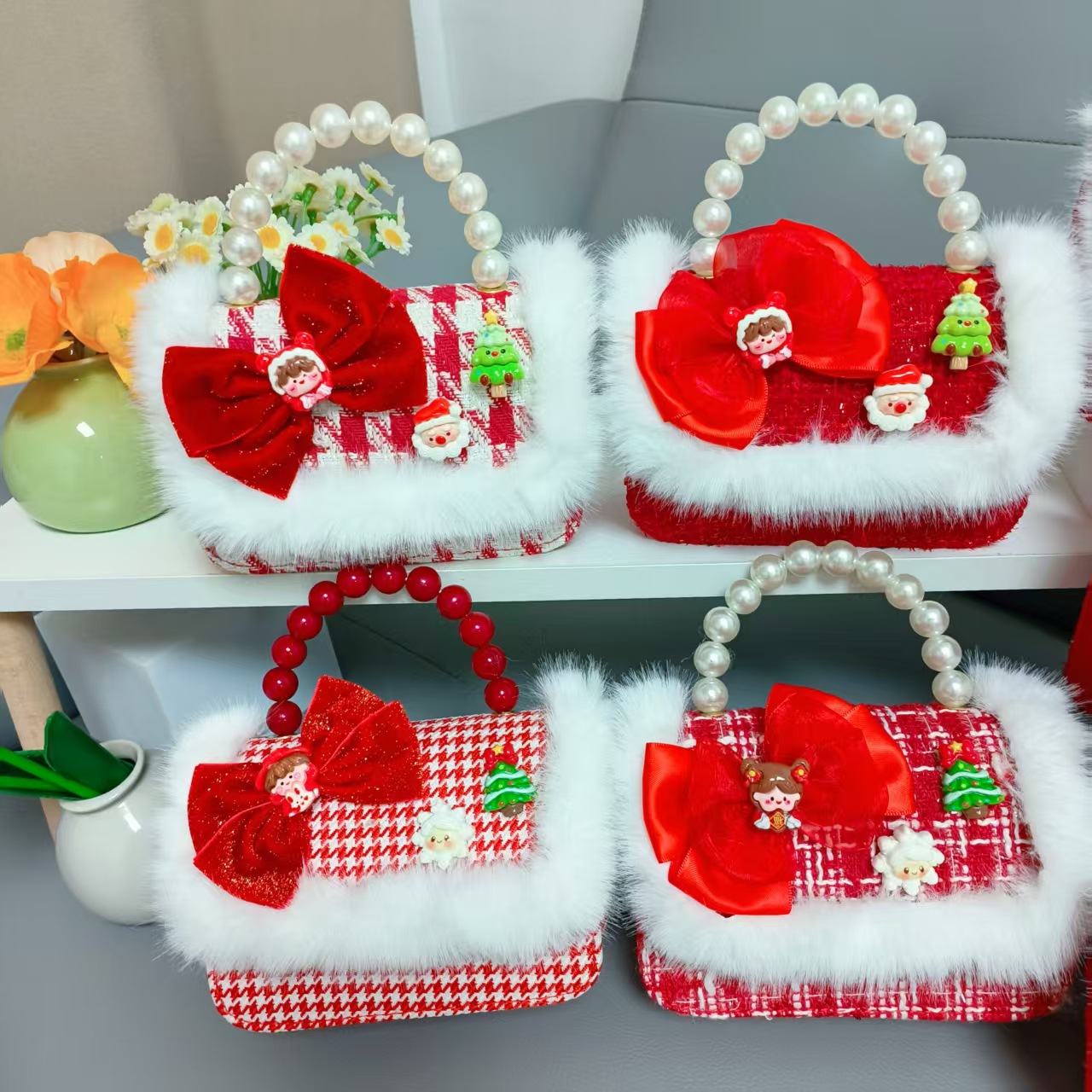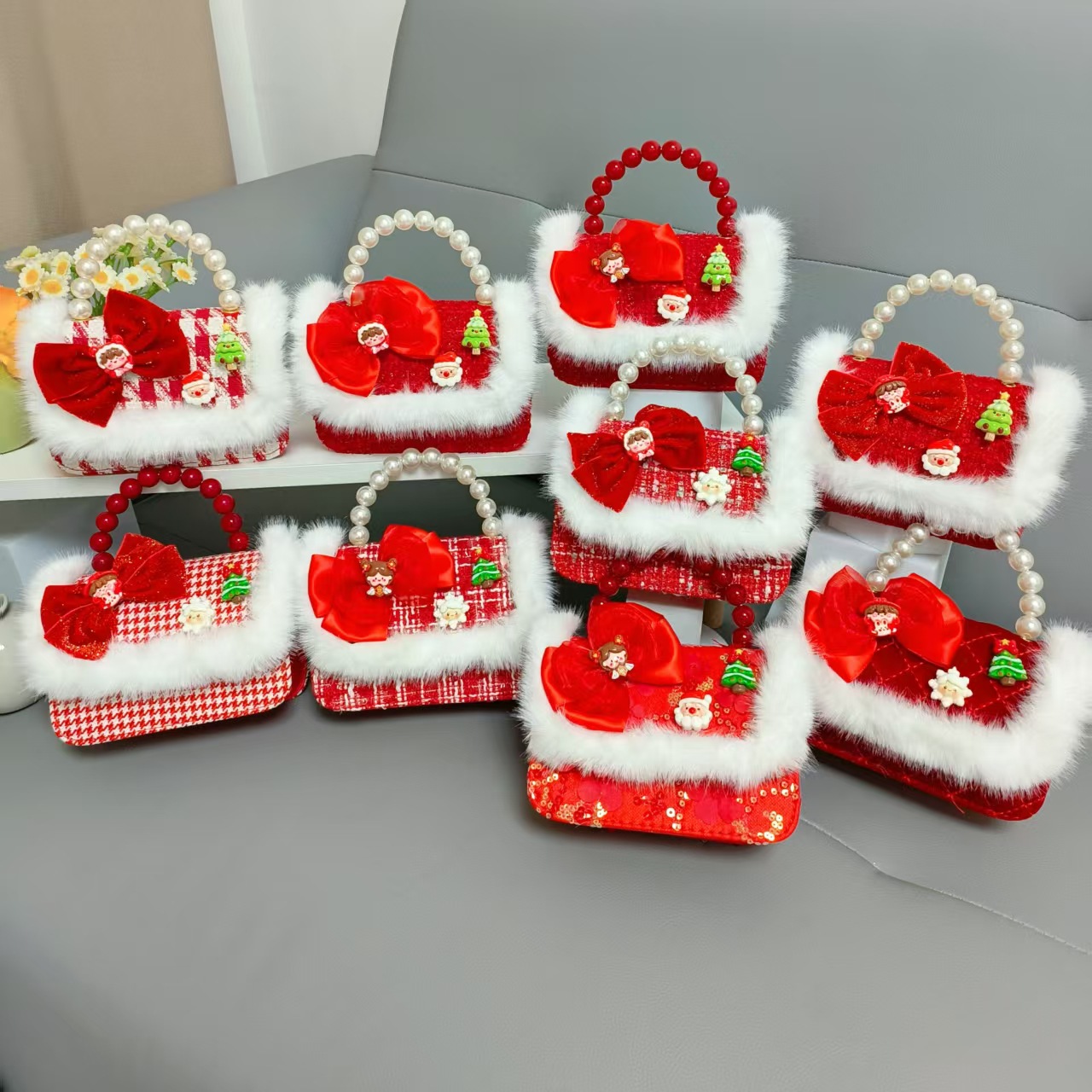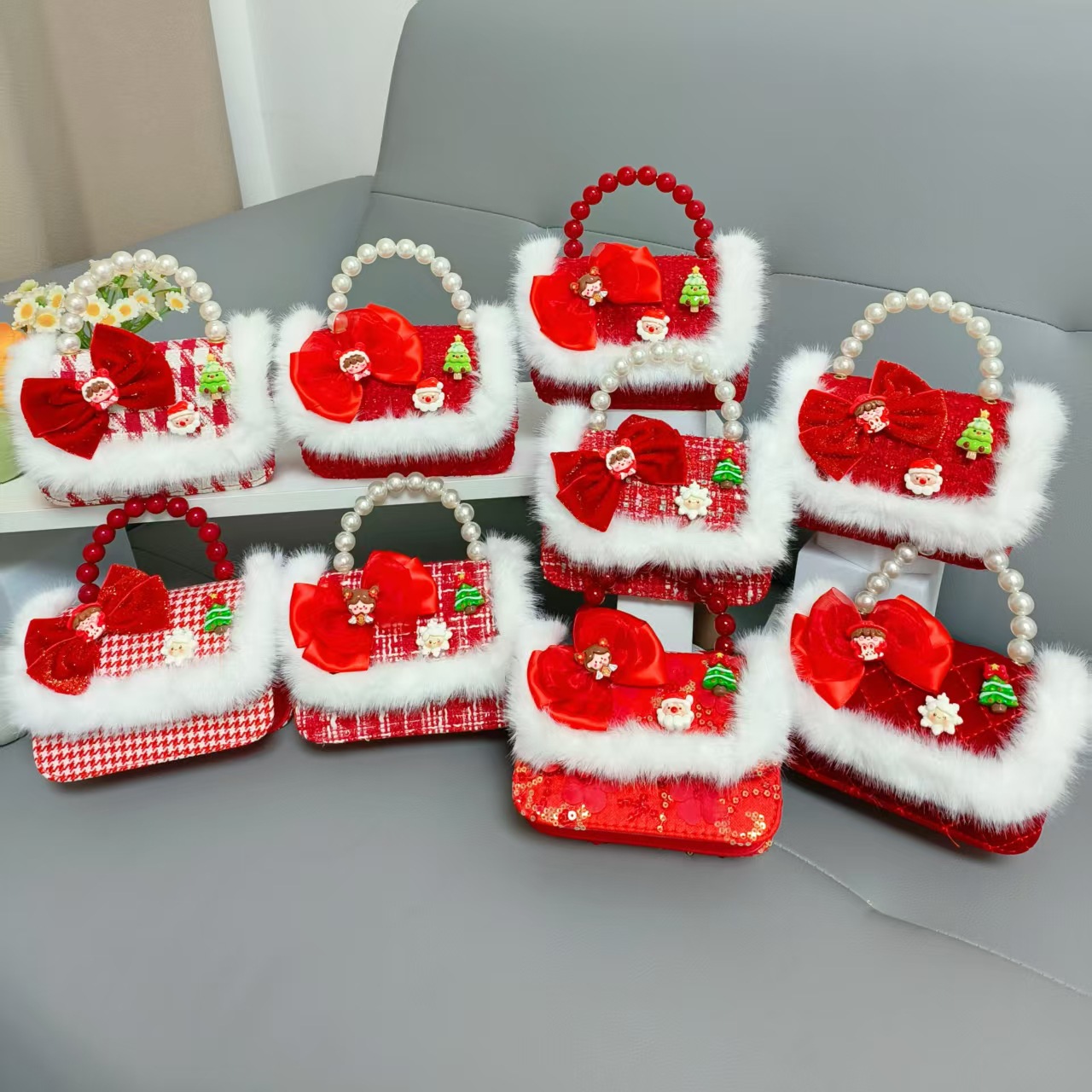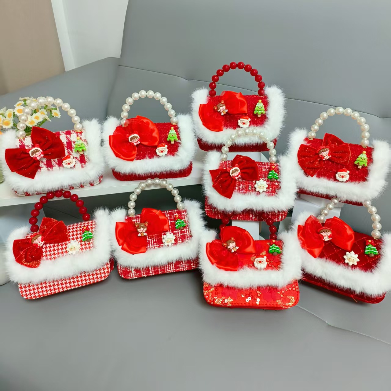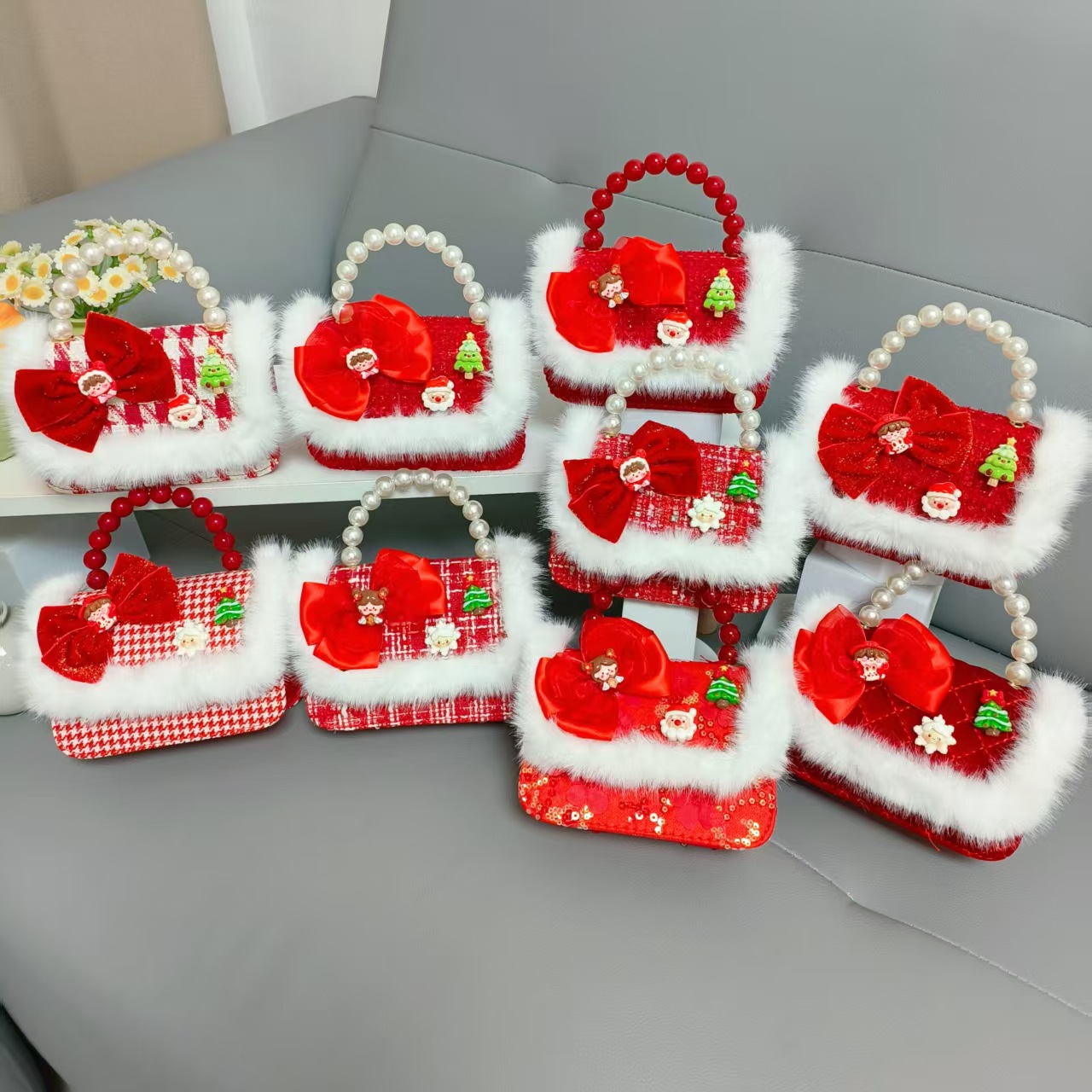 Cartera de Año Nuevo rojo arco de papá Noel bolso de perla pequeña cadena de viento fragante bolso de hombro