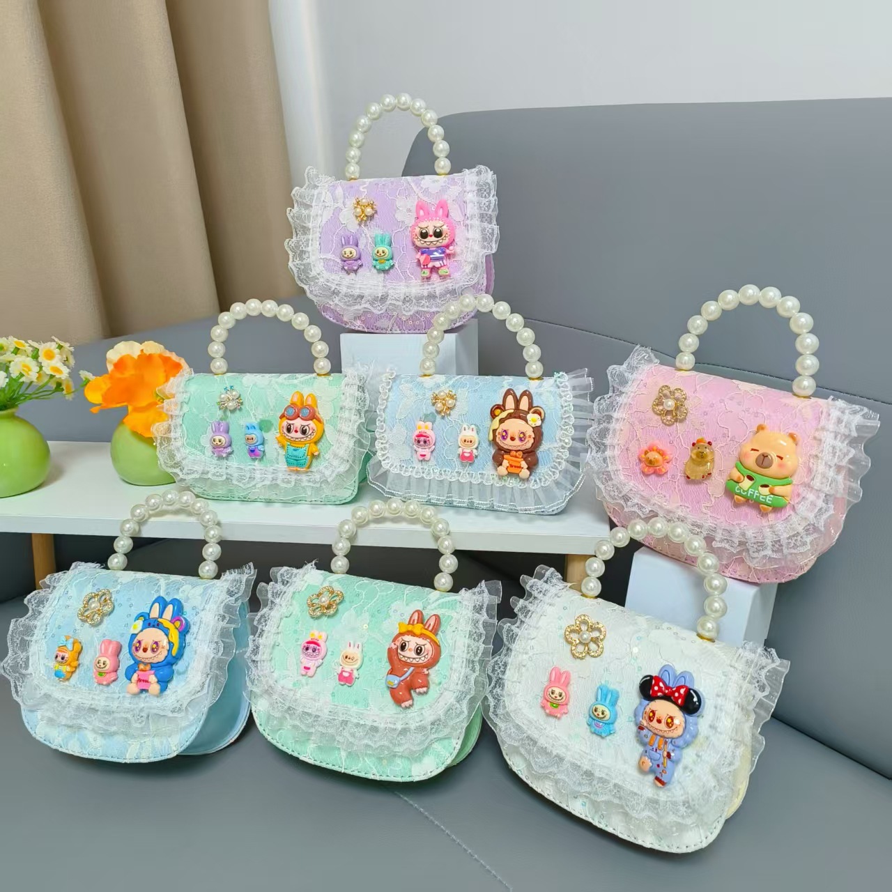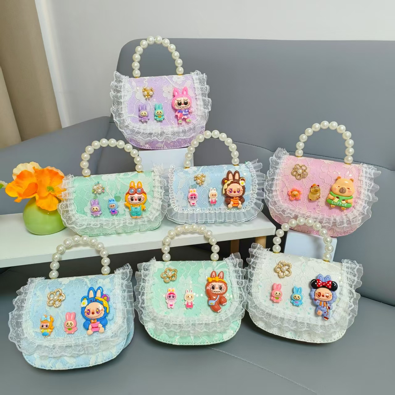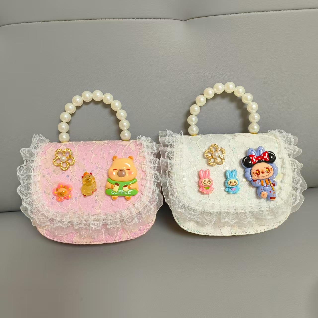 Bolso de perlas bolso de hombro bolso de cambio bolso de princesa bolso de tela de tela bolso de niños bolso de cadena bolso pequeño