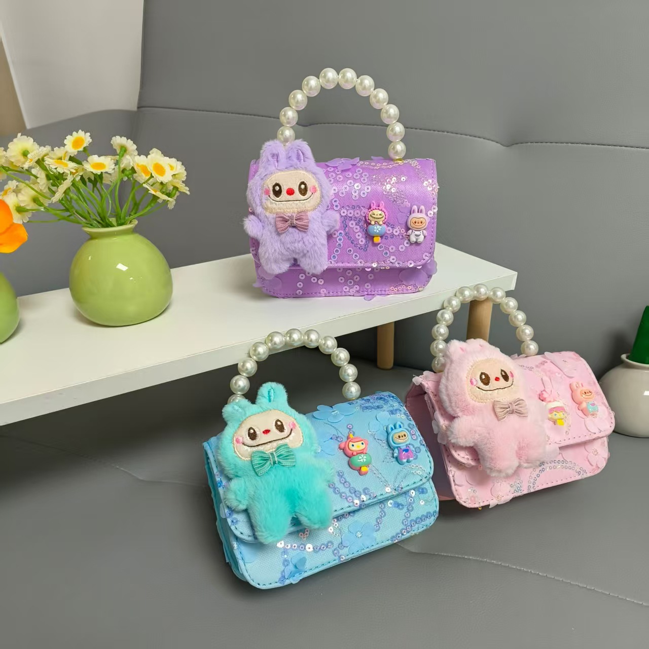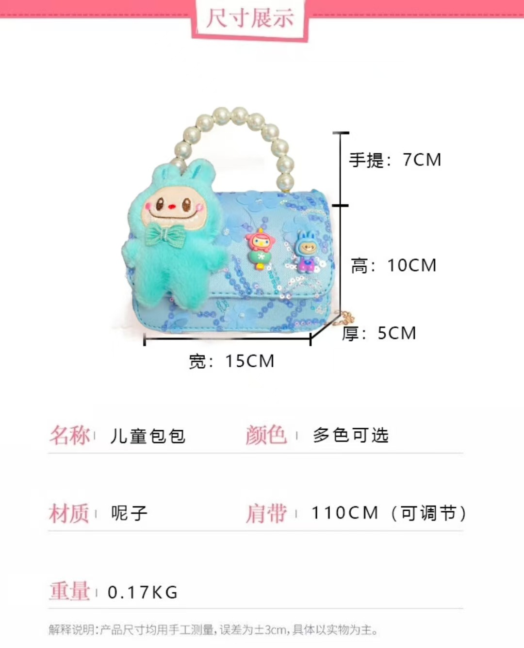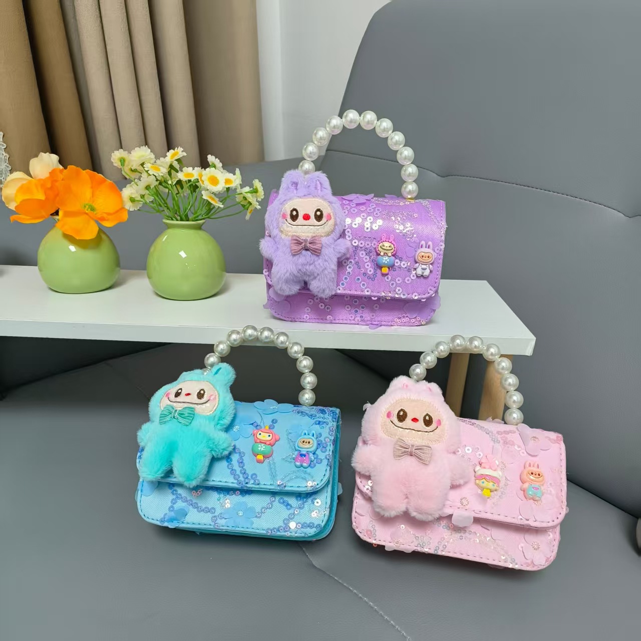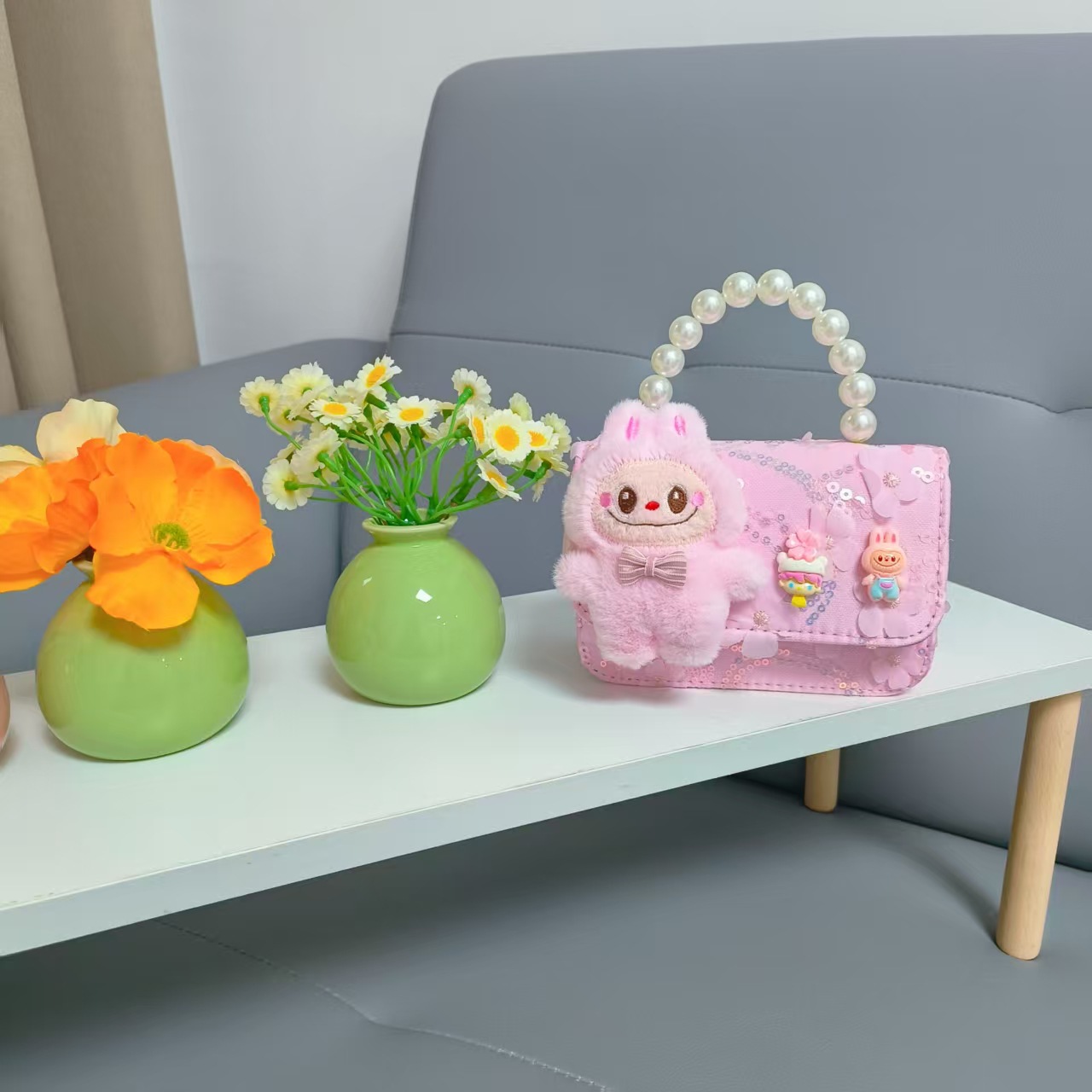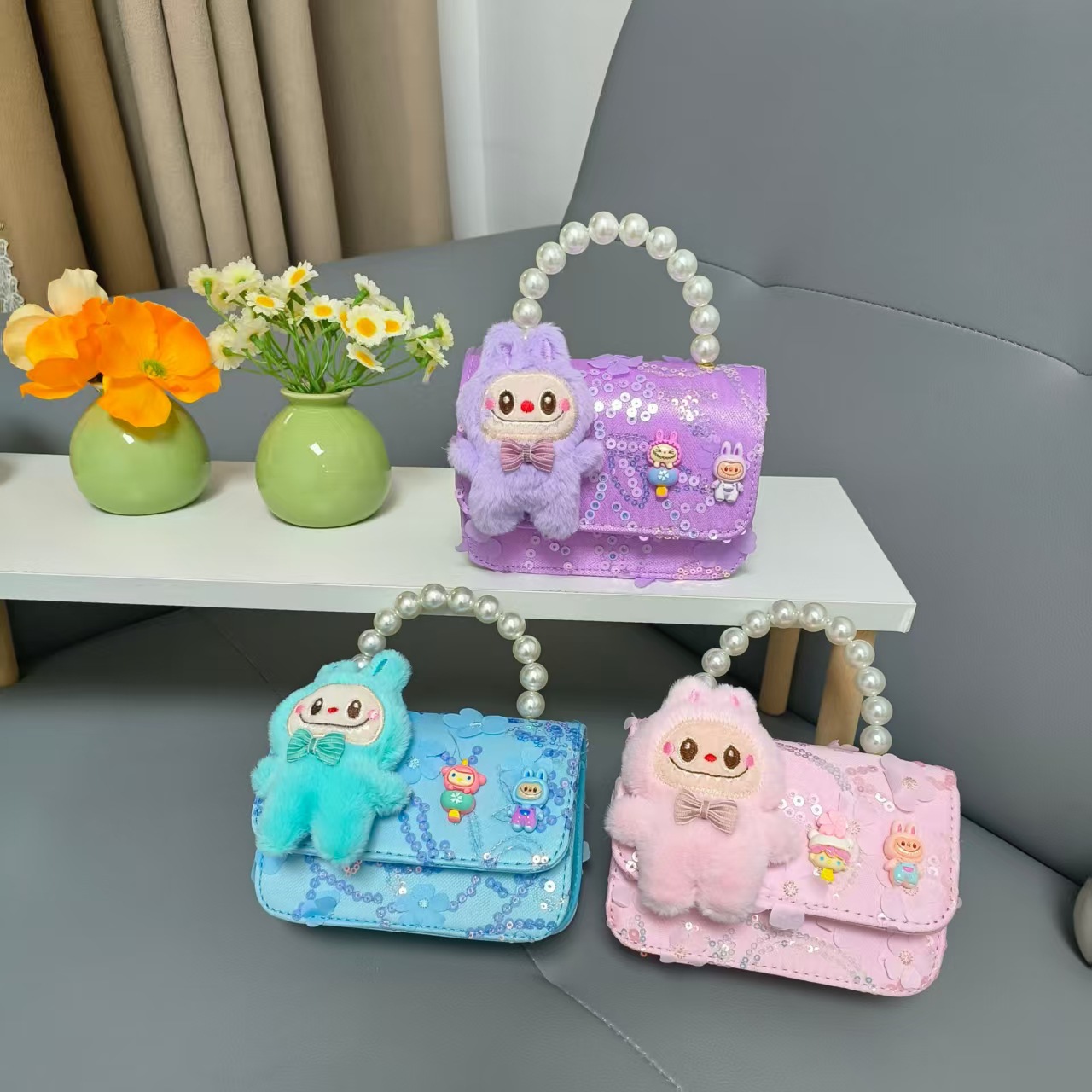 Niños perlas bolsos portátiles de princesa bolsos de cinturón de viento fragante bolsos de Año Nuevo de chicas bolsos de arco de cadena bolsos pequeños