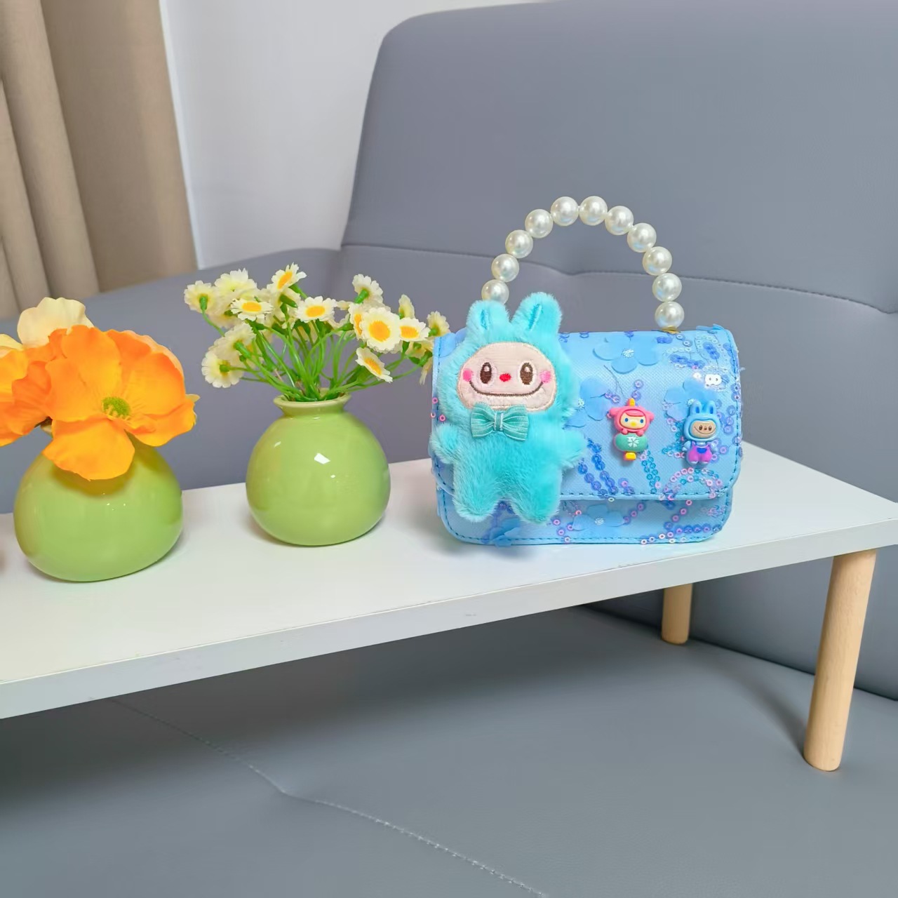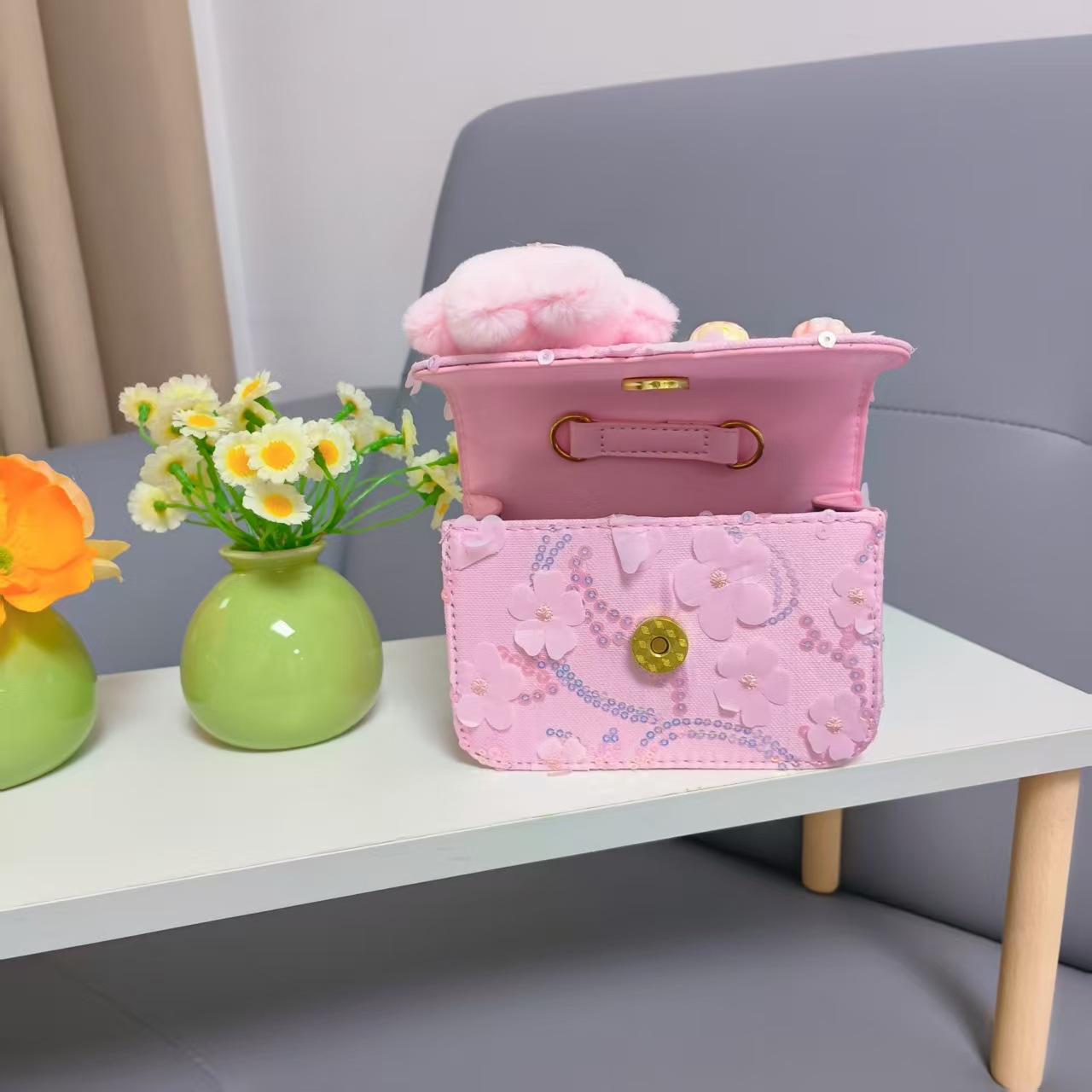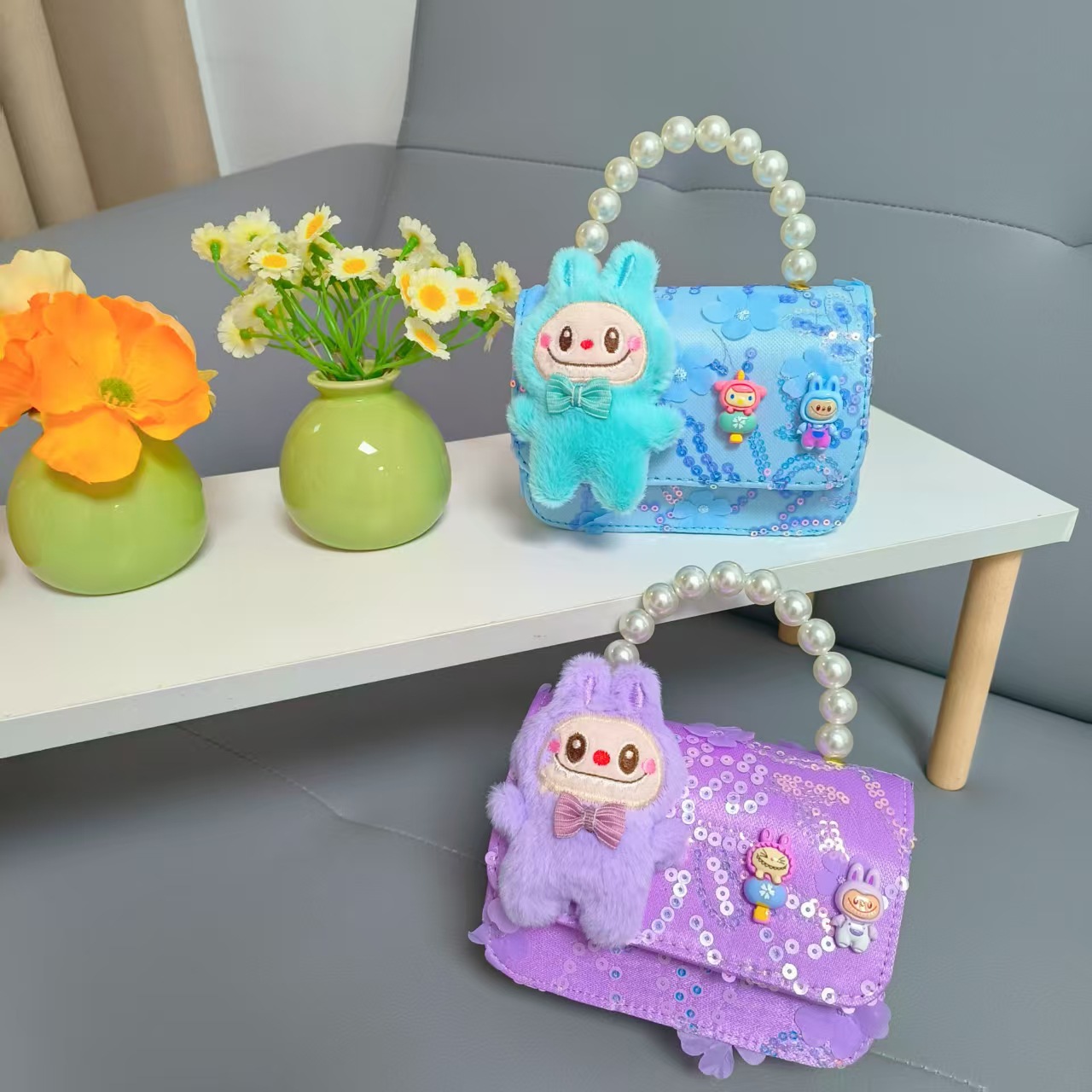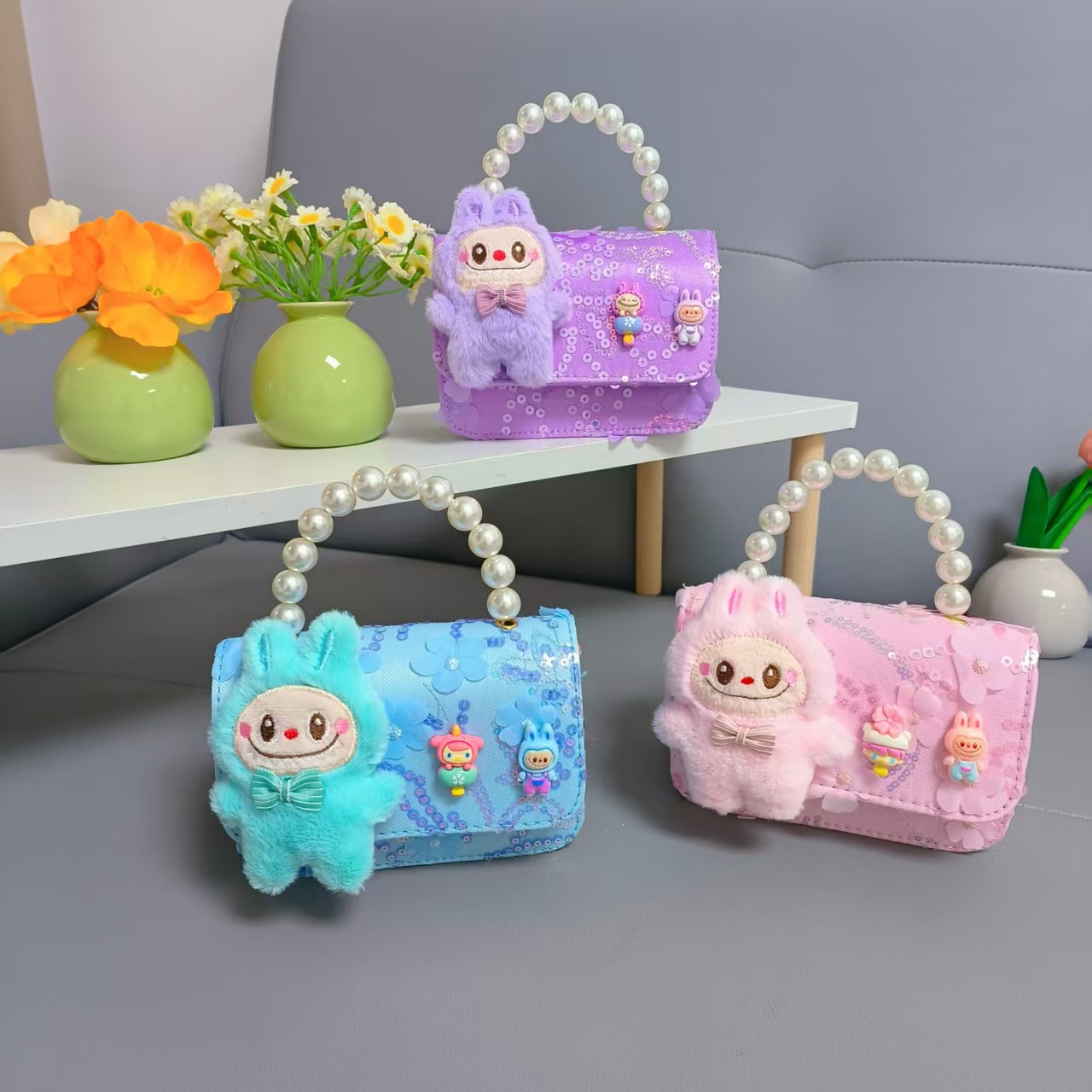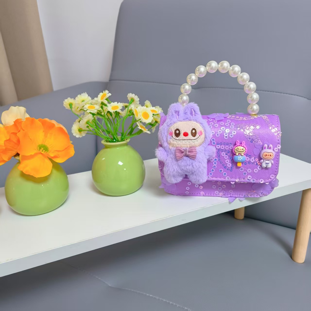 Niños perlas bolsos portátiles de princesa bolsos de cinturón de viento fragante bolsos de Año Nuevo de chicas bolsos de arco de cadena bolsos pequeños