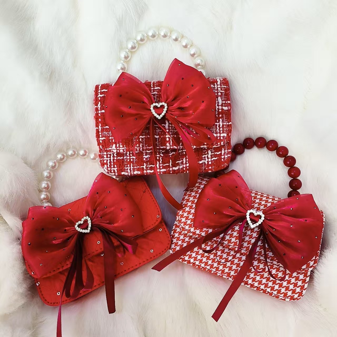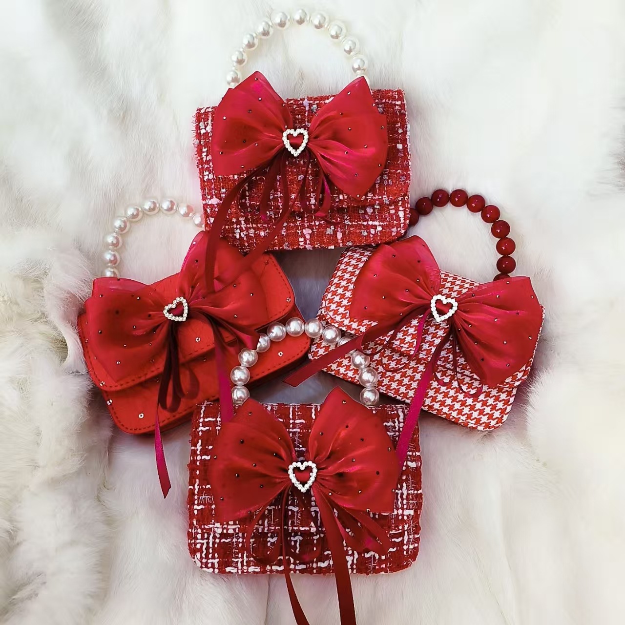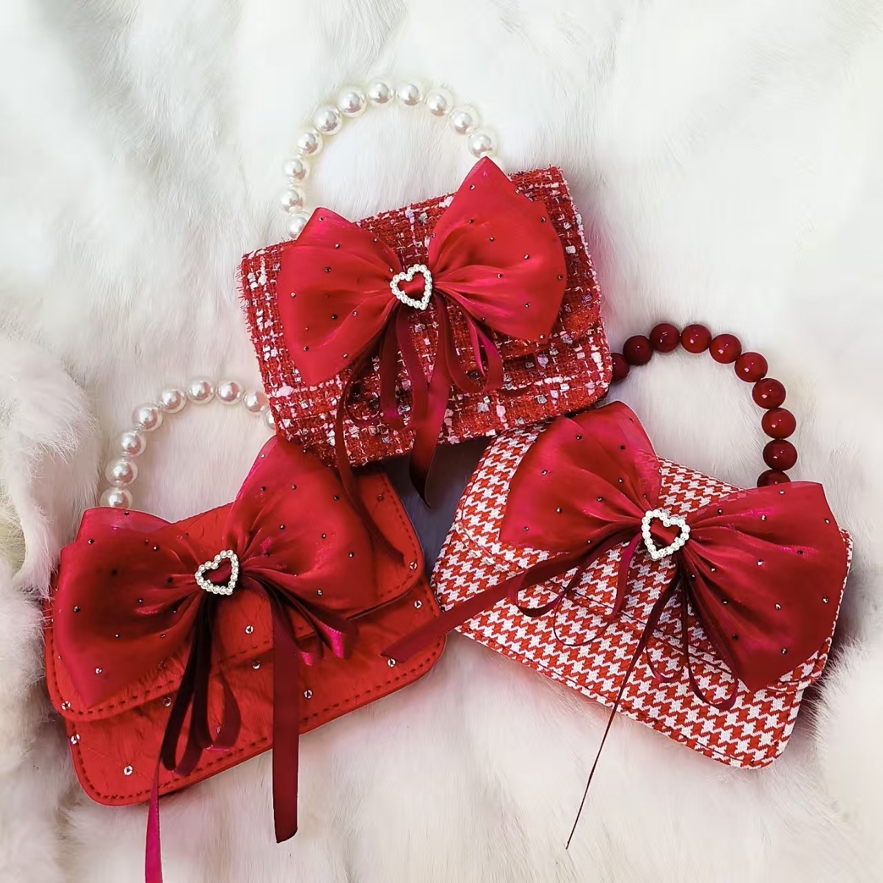 Gran arco rojo bolso de princesa bolso de perla bolso de Año Nuevo bolso de cambio accesorios cadena de hombro