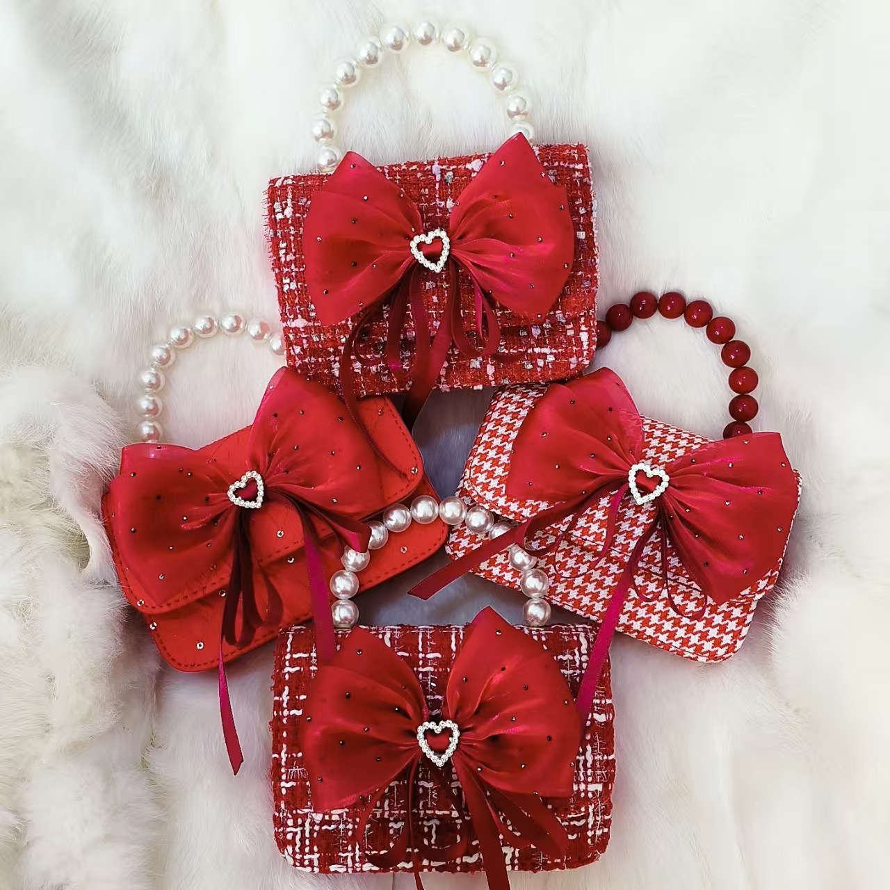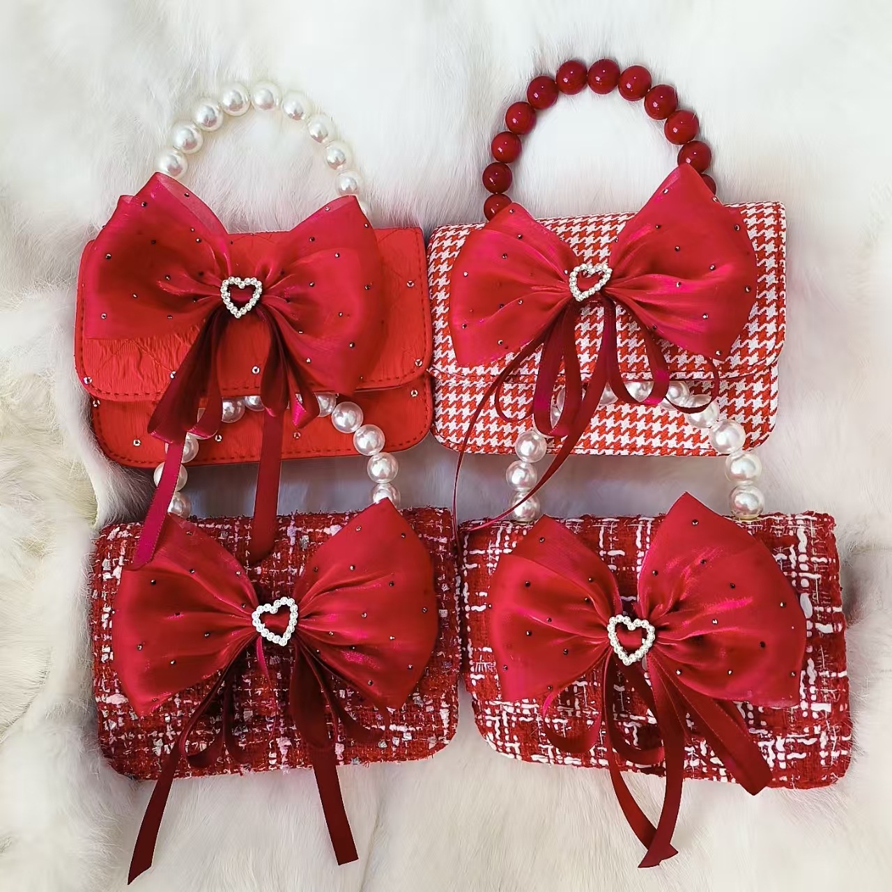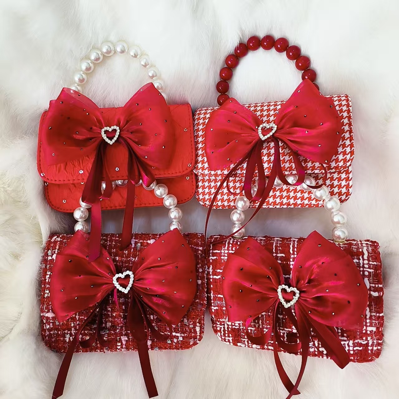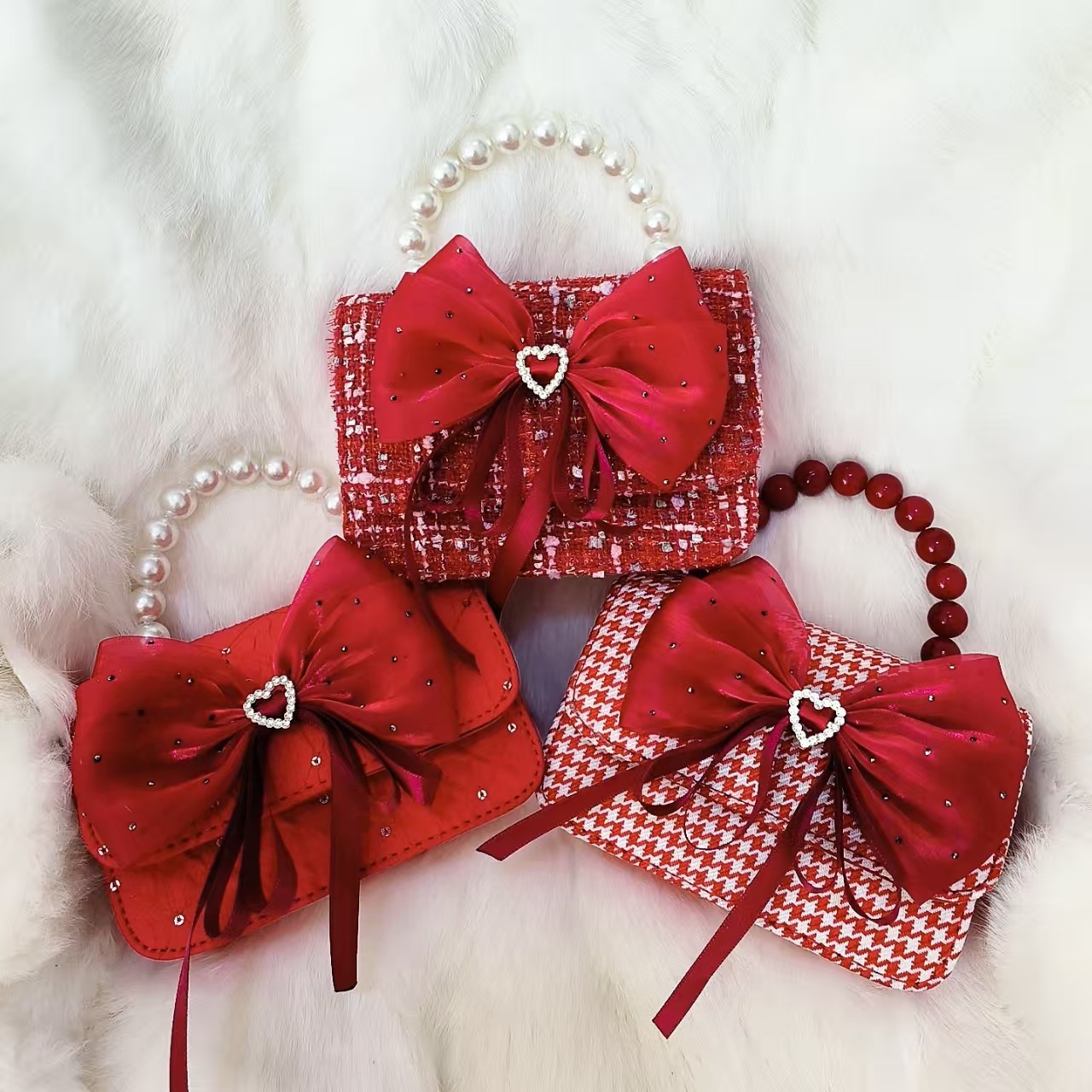 Gran arco rojo bolso de princesa bolso de perla bolso de Año Nuevo bolso de cambio accesorios cadena de hombro