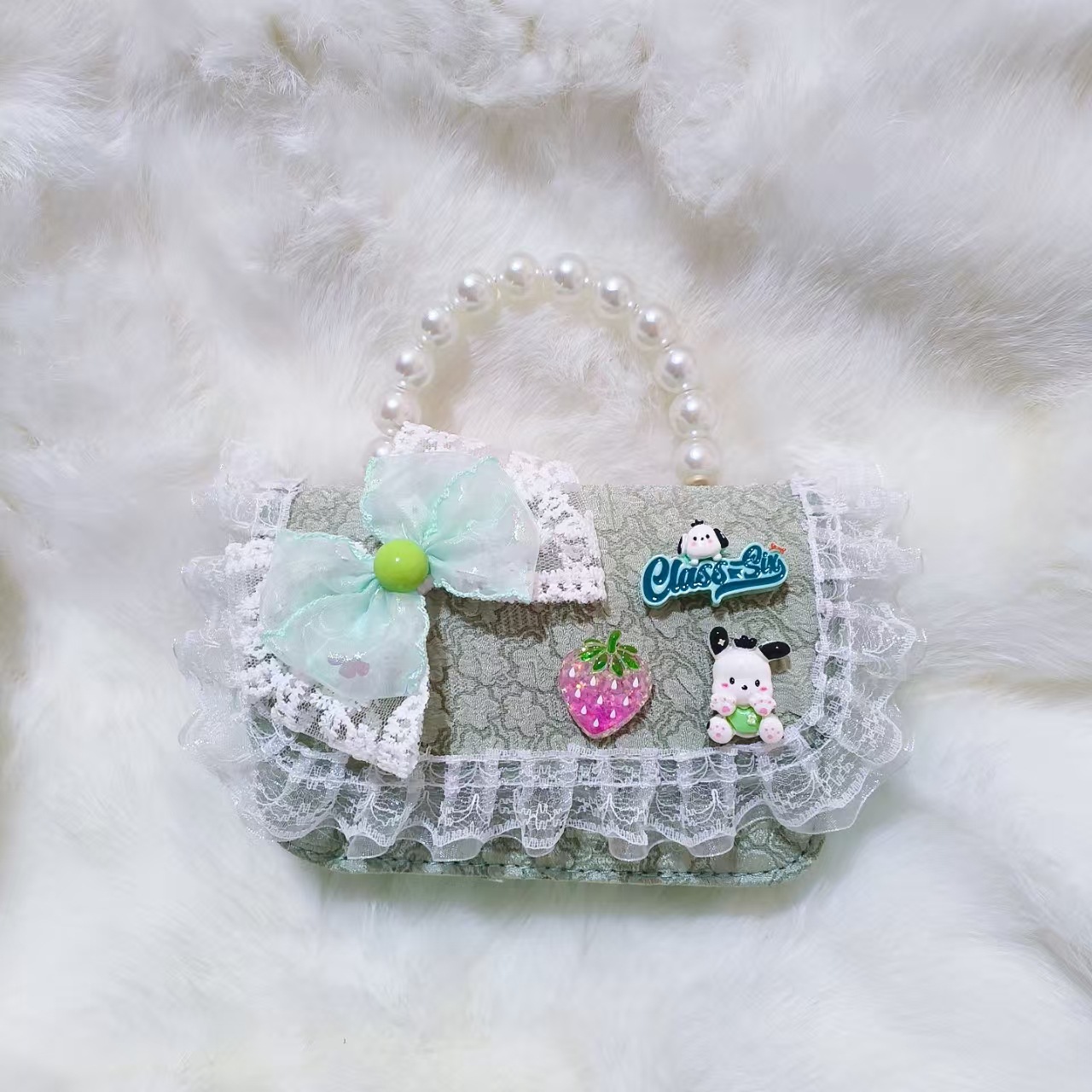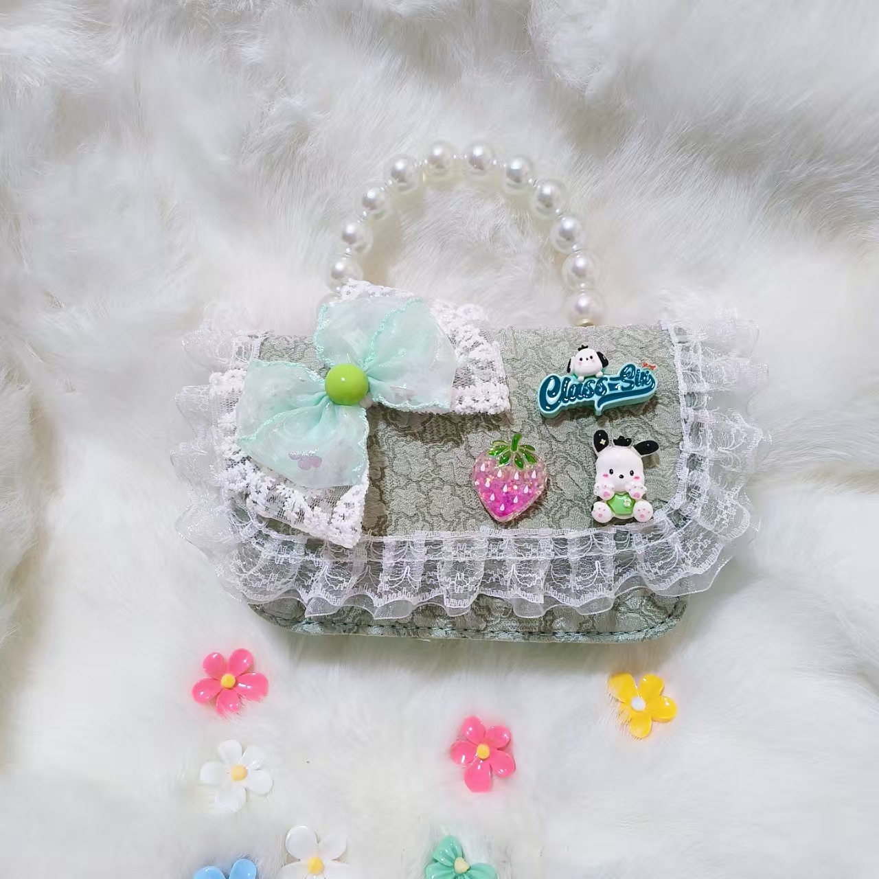 Bolso de perlas, bolso de cambio, bolso de accesorios, bolso de Año Nuevo para chicas, bolso de Año Nuevo, bolso pequeño, bolso cuadrado.