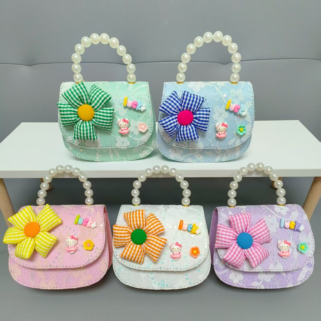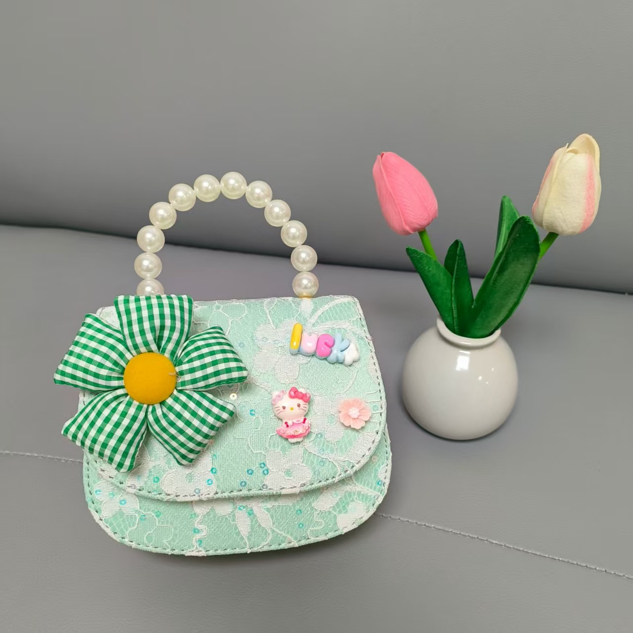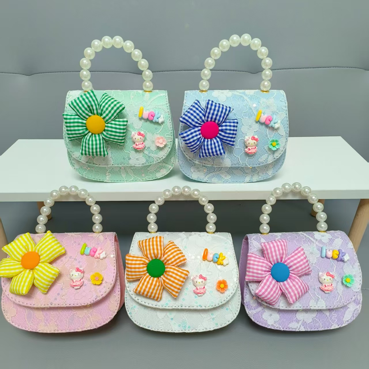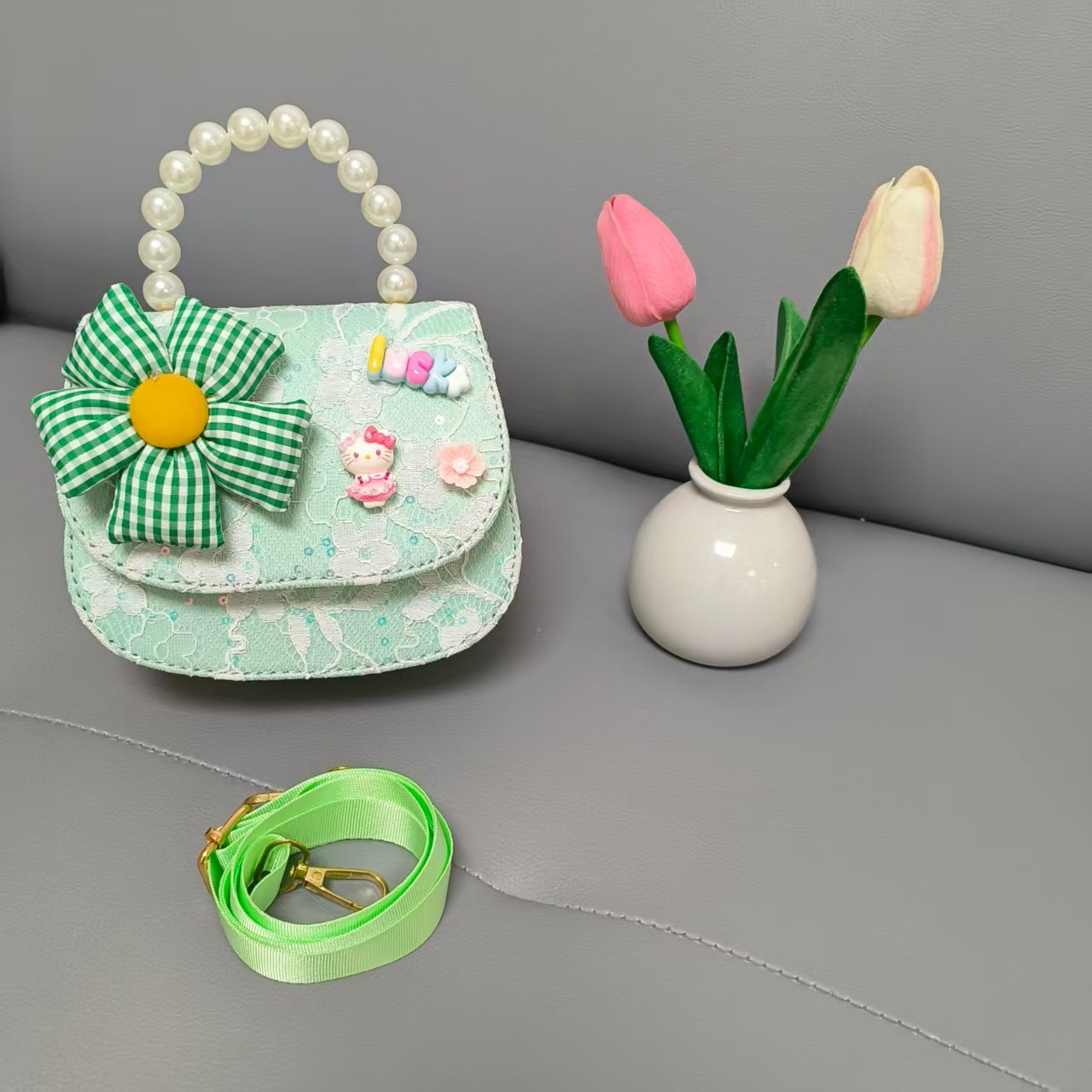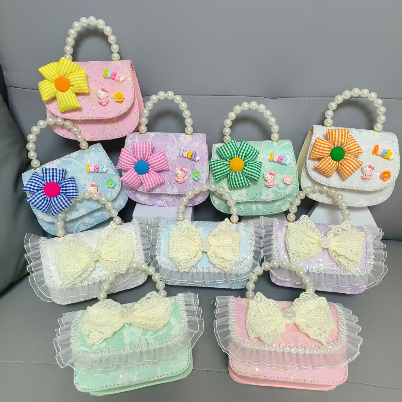 Bolso de princesa portátil de perlas, arco de encaje, bolso de hombro, bolso de cadena, bolso de cambio de Año Nuevo.