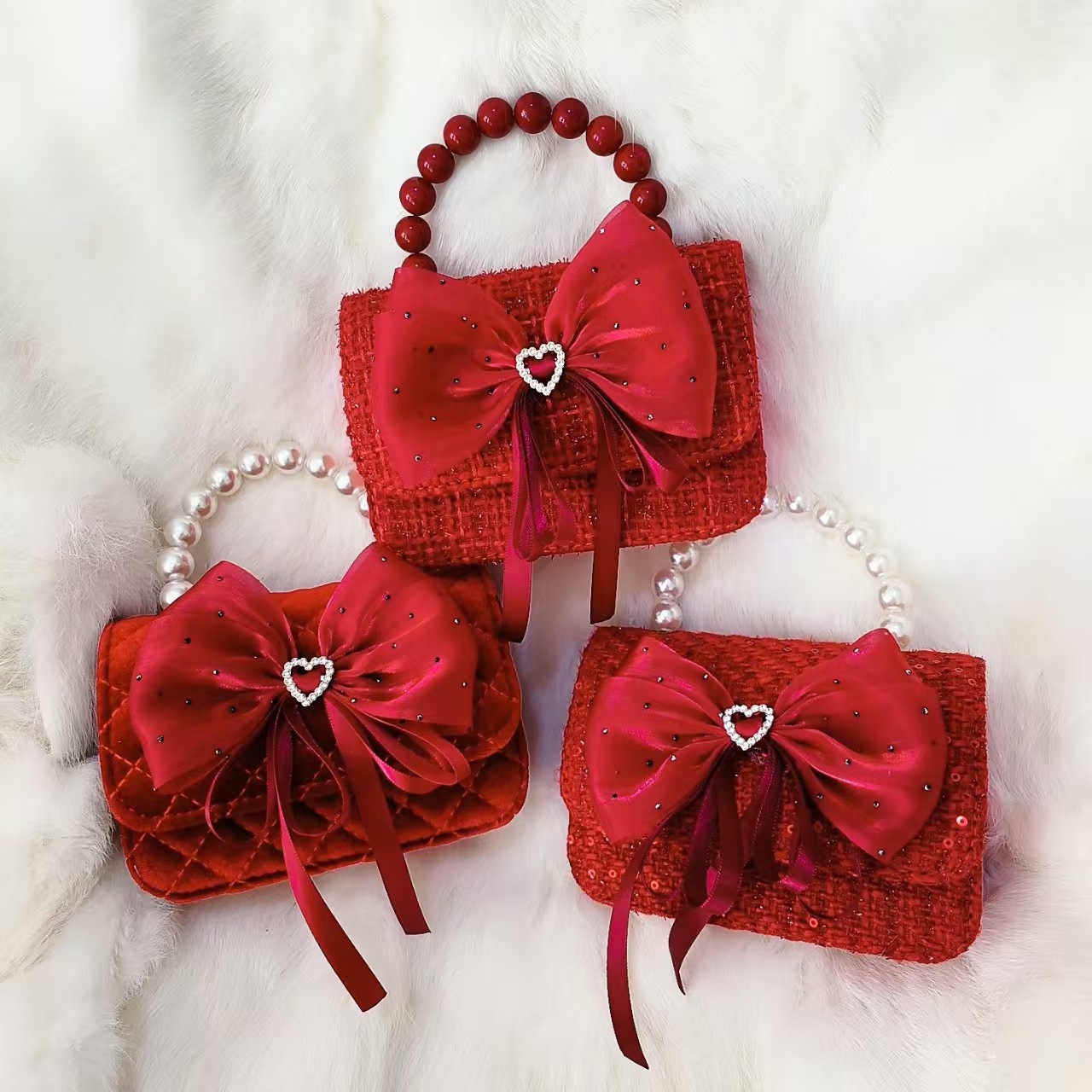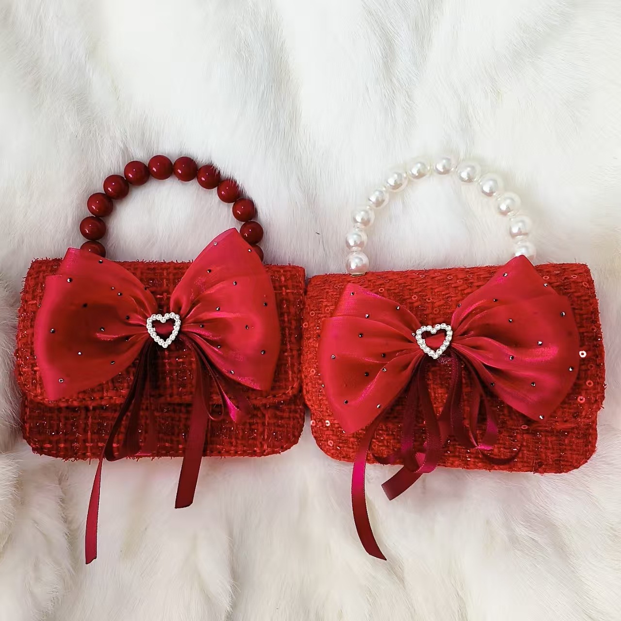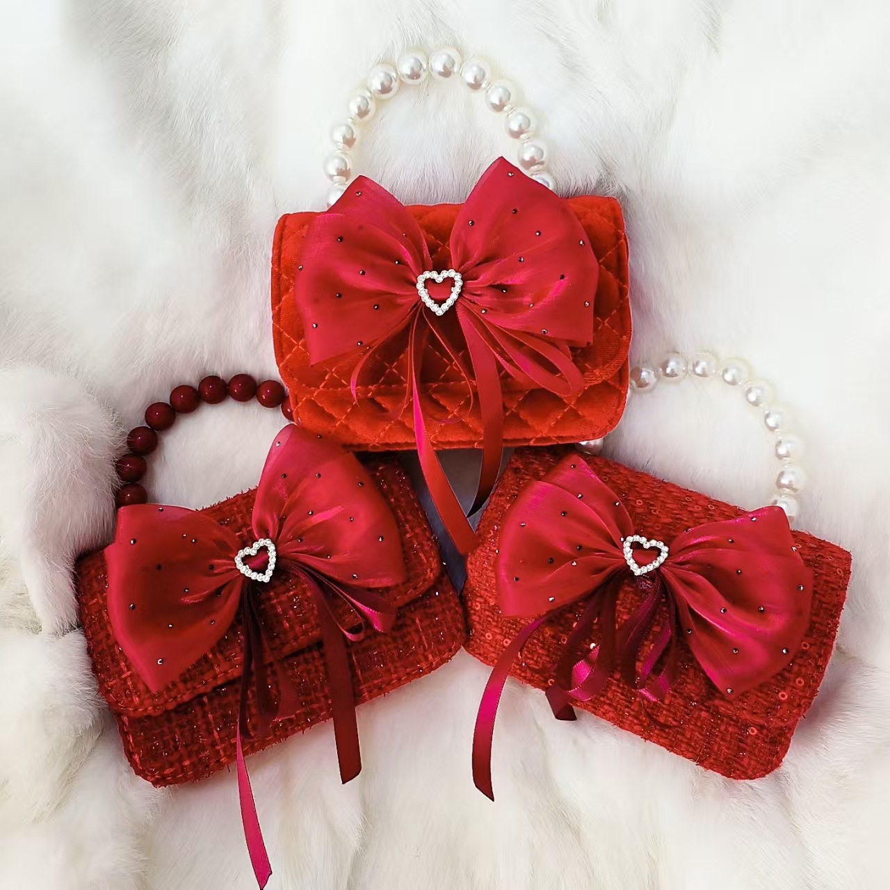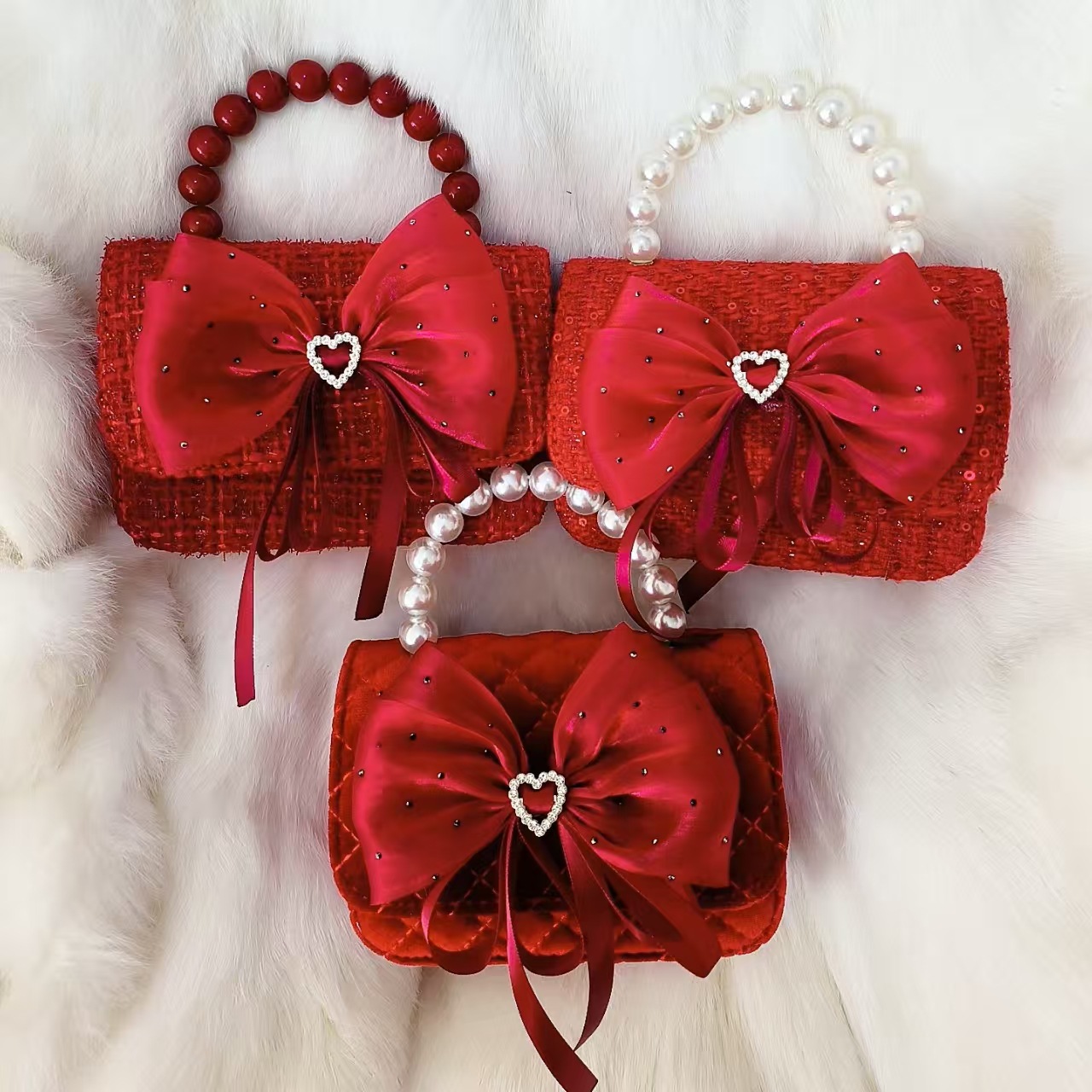 Xiaoxiang viento arco rojo princesa bolso de Año Nuevo Zhen bolso de cambio accesorios de cadena perlas bolso de hombro