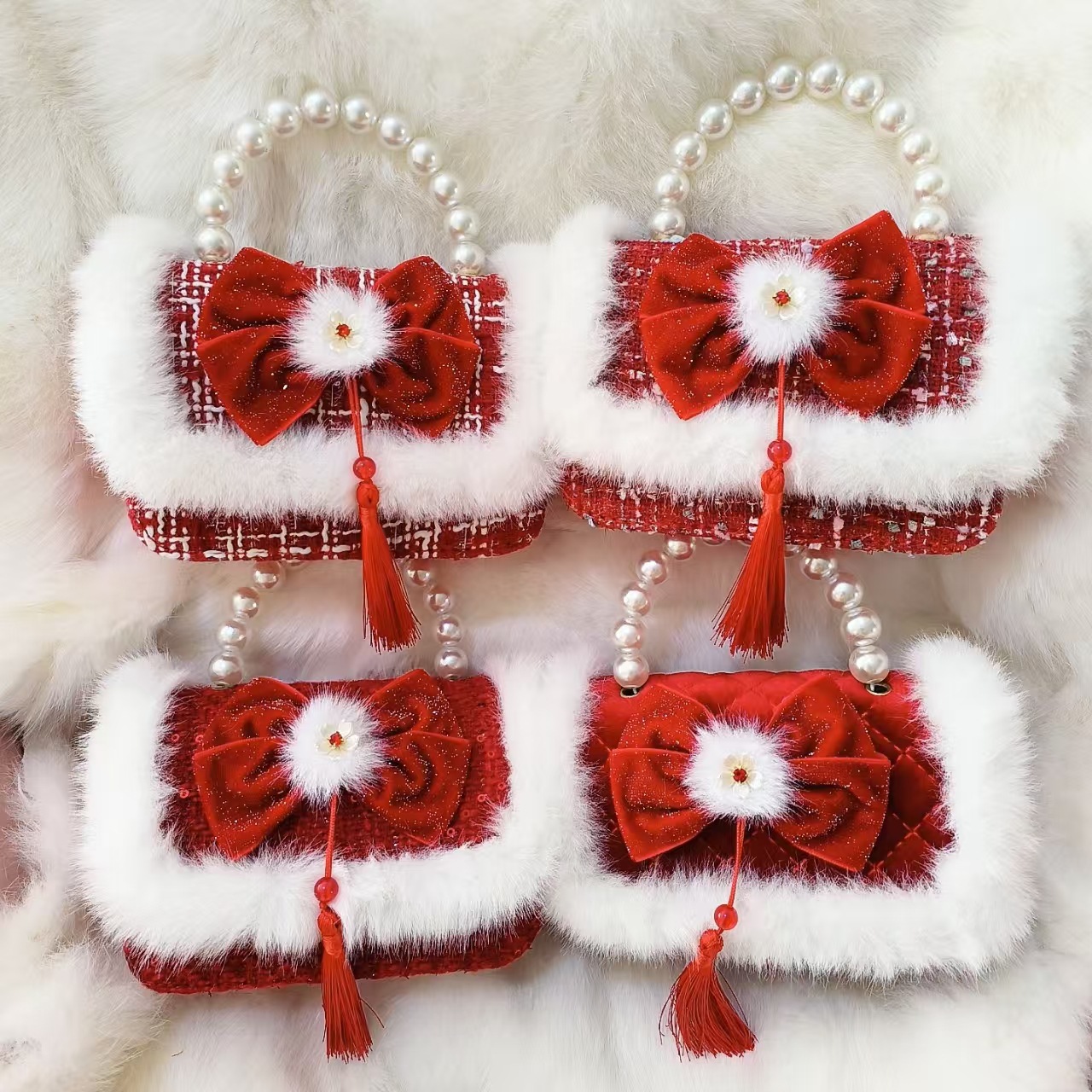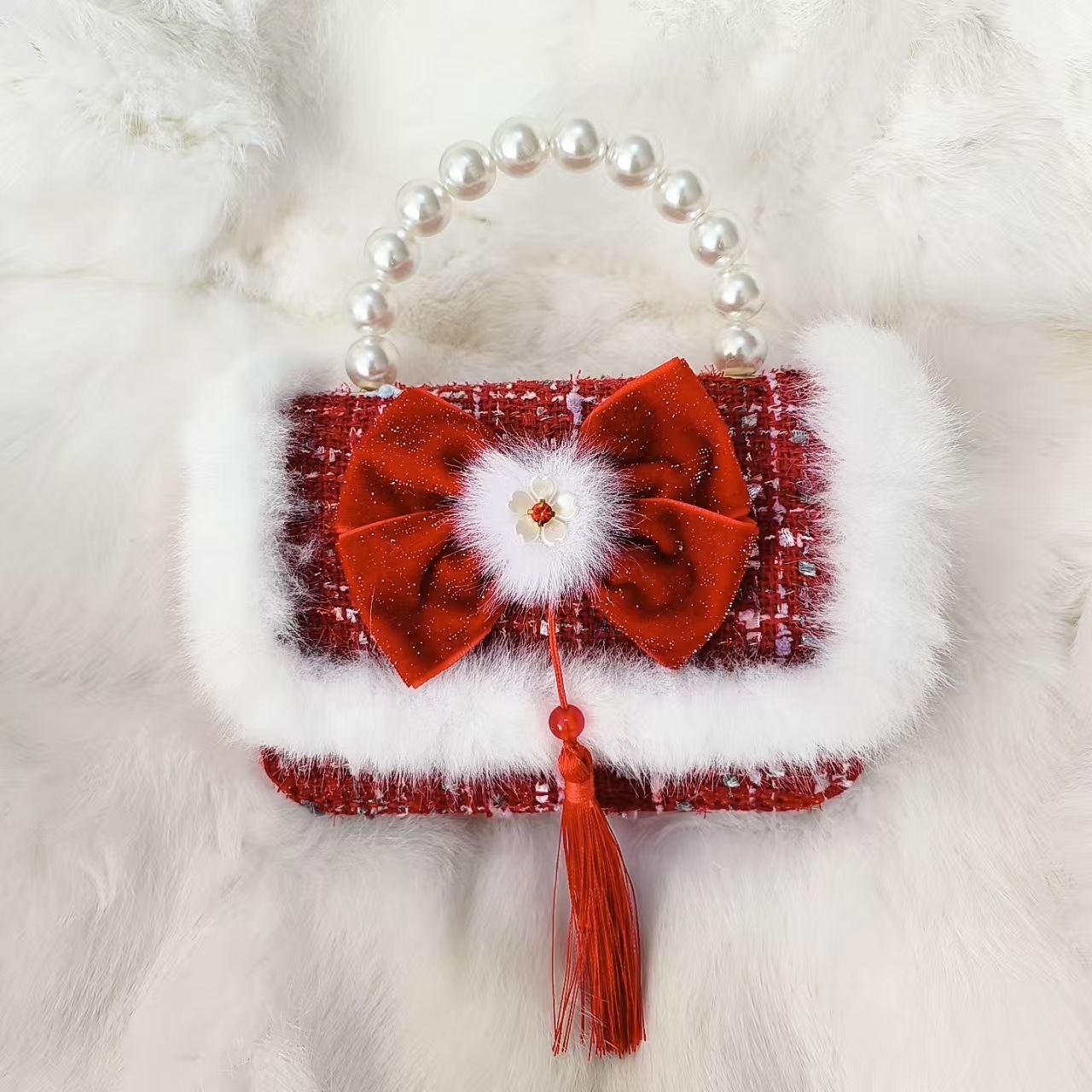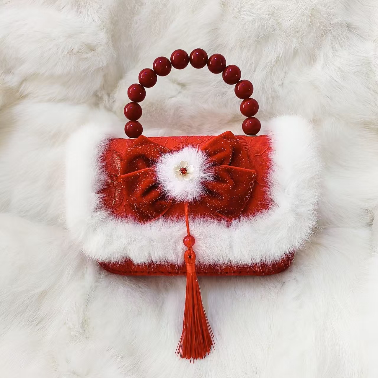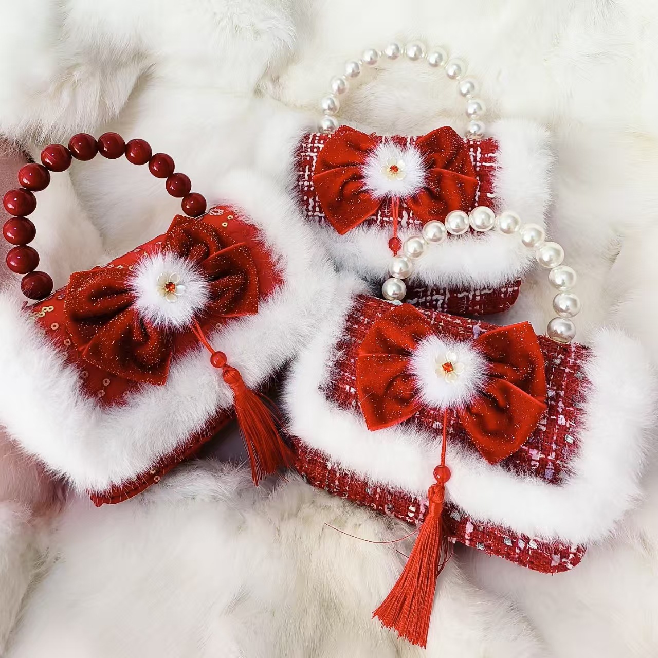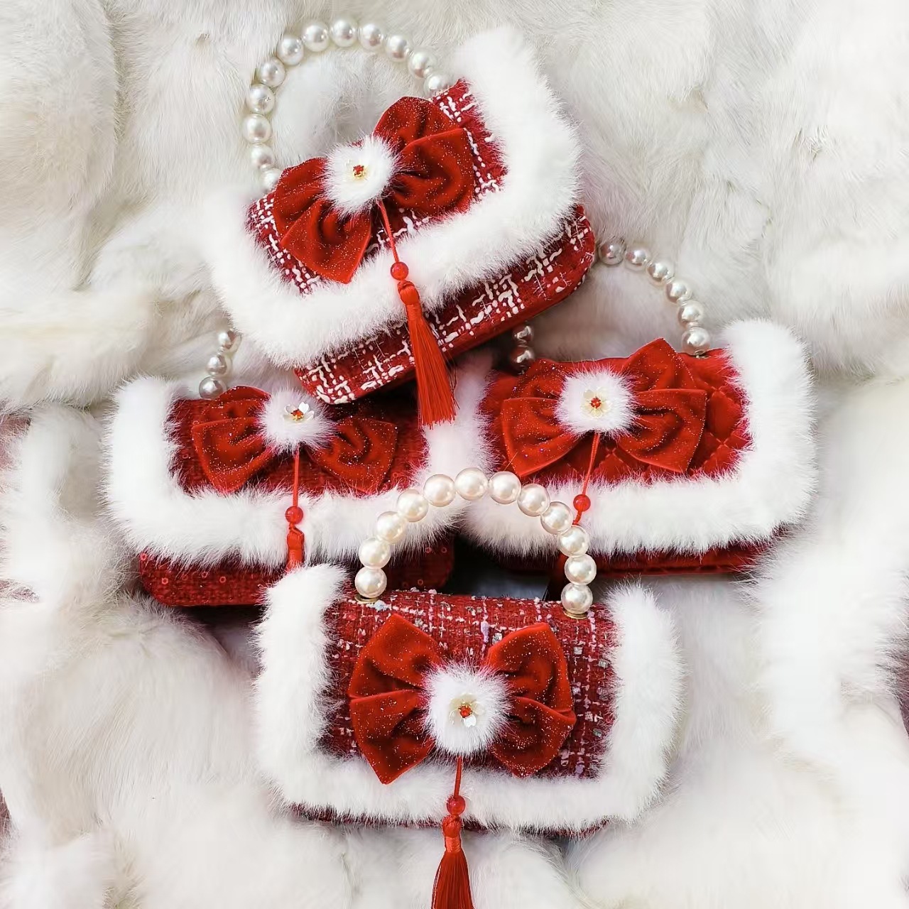 Gran arco rojo bolso de princesa bolso de perla bolso de Año Nuevo bolso de cambio accesorios cadena de hombro