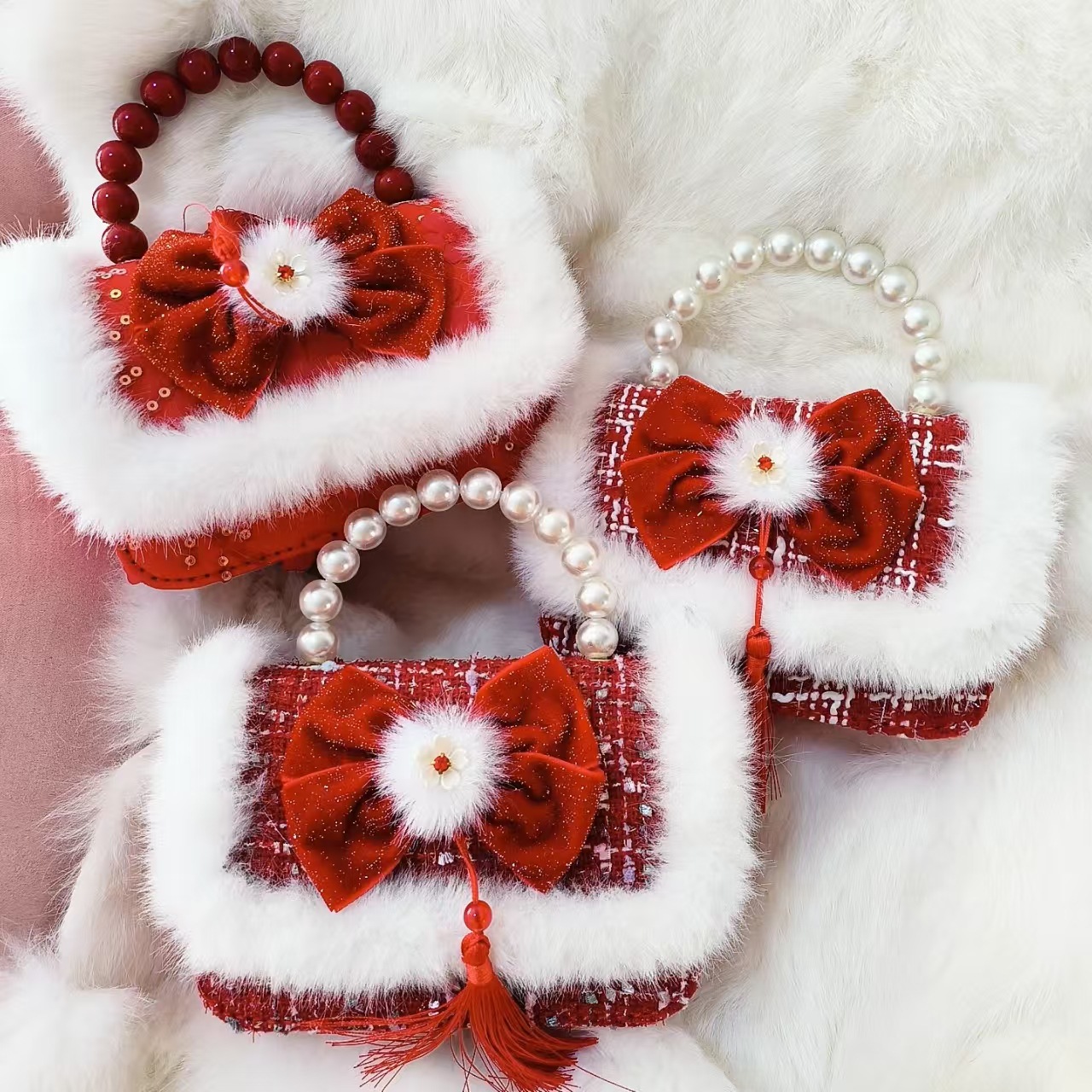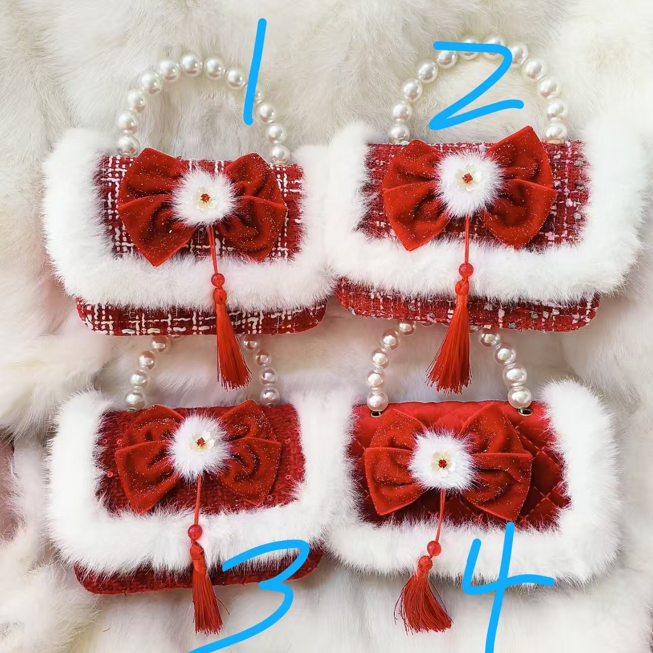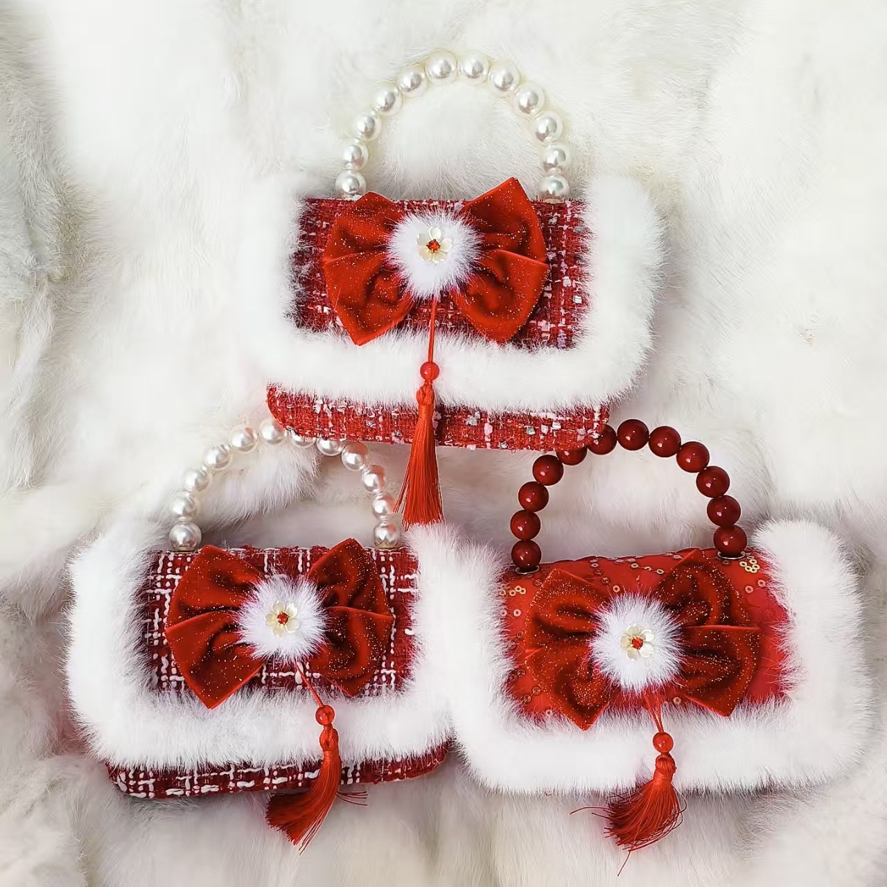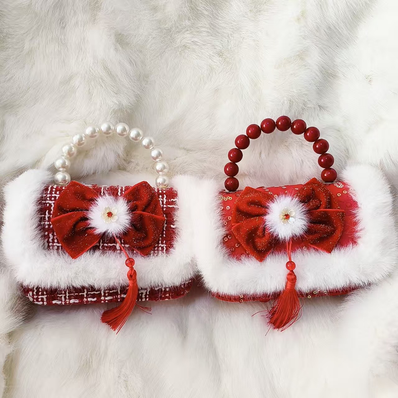 Gran arco rojo bolso de princesa bolso de perla bolso de Año Nuevo bolso de cambio accesorios cadena de hombro