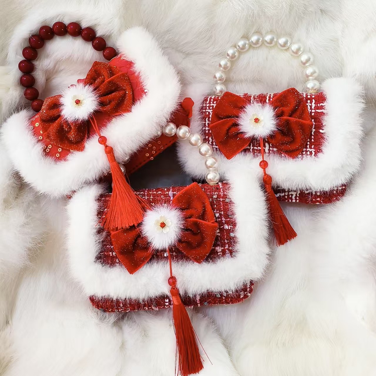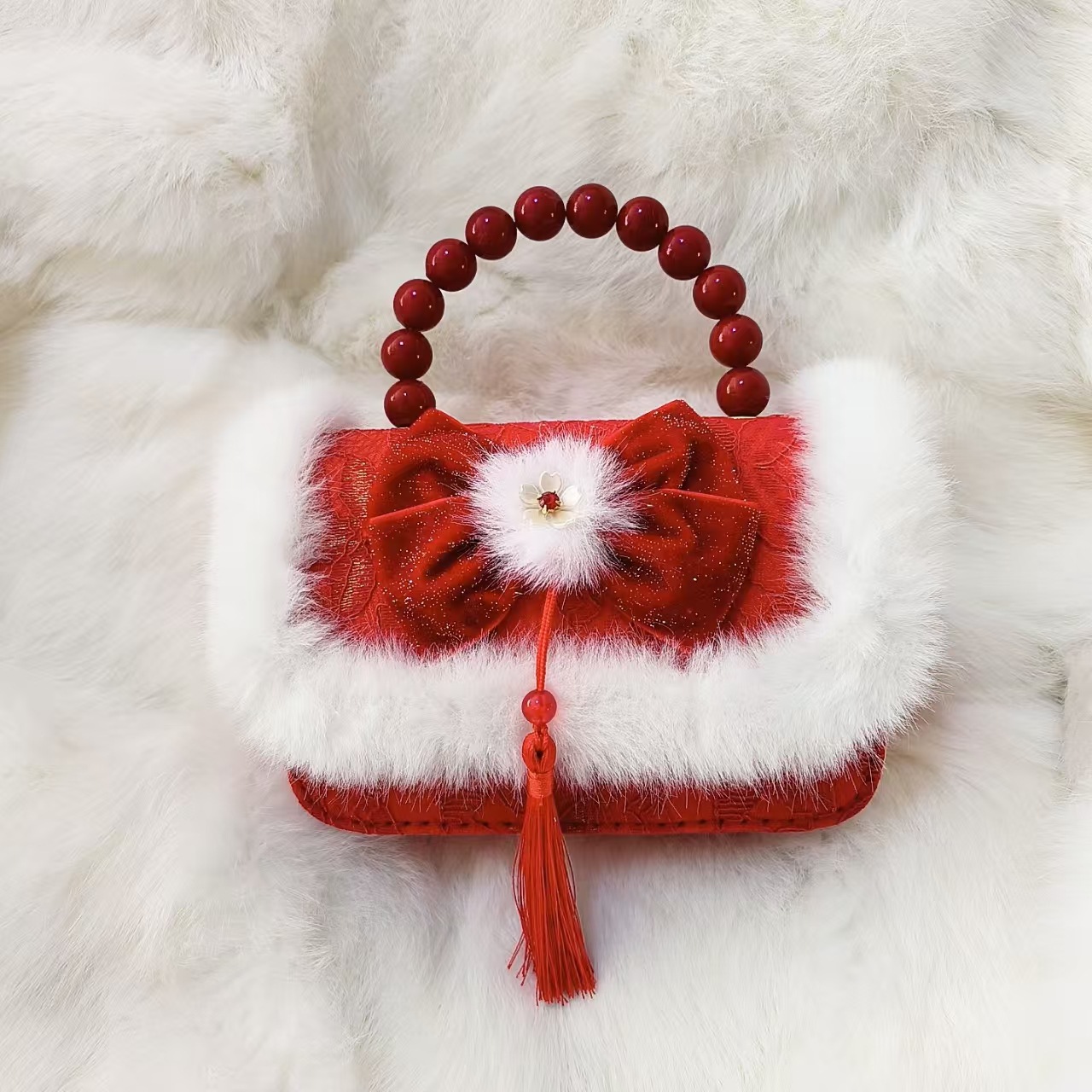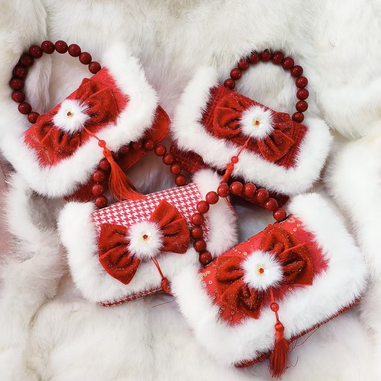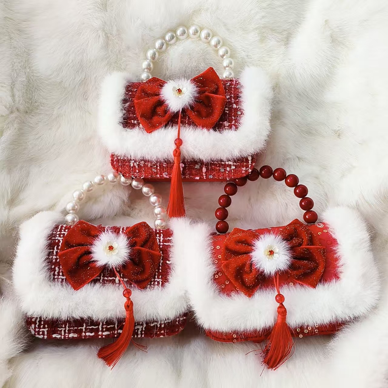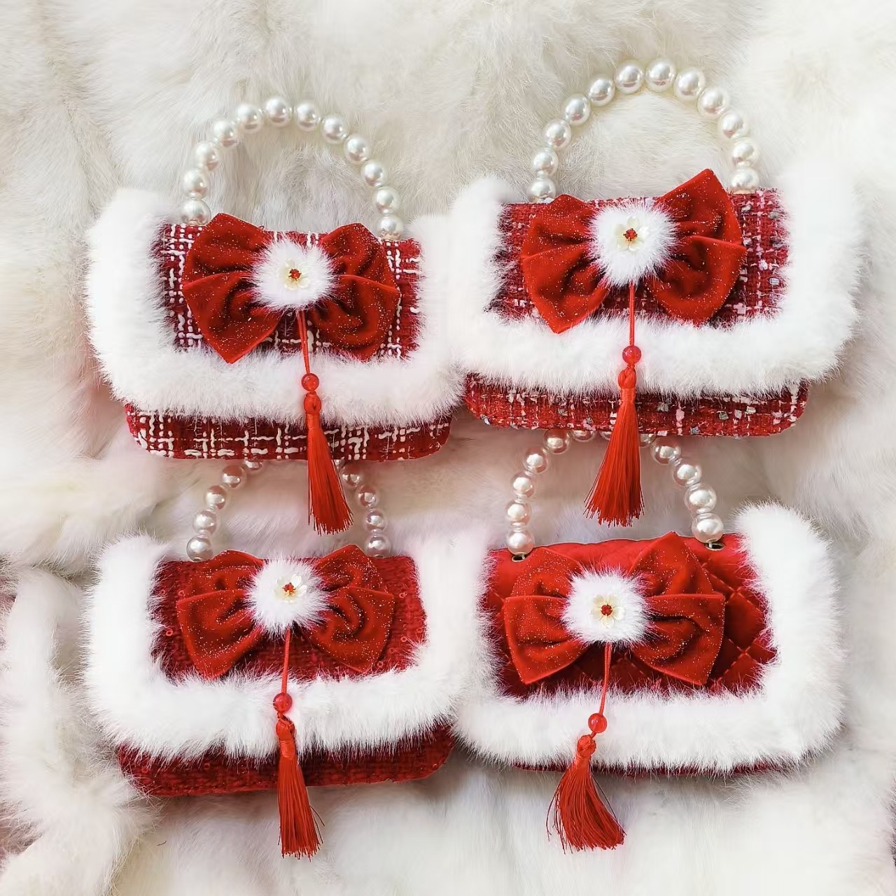 Gran arco rojo bolso de princesa bolso de perla bolso de Año Nuevo bolso de cambio accesorios cadena de hombro