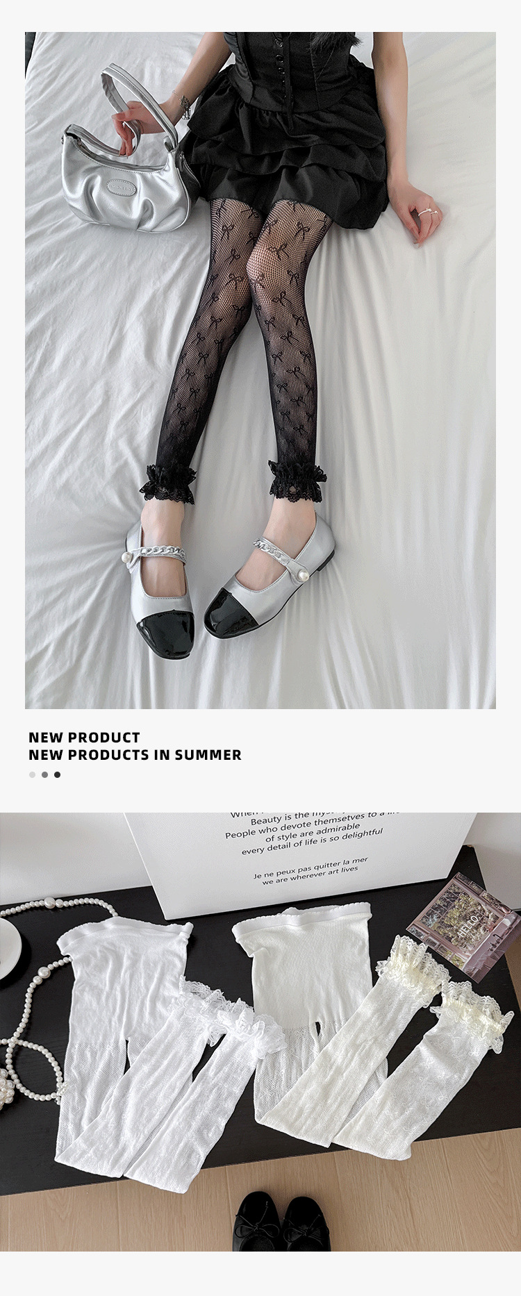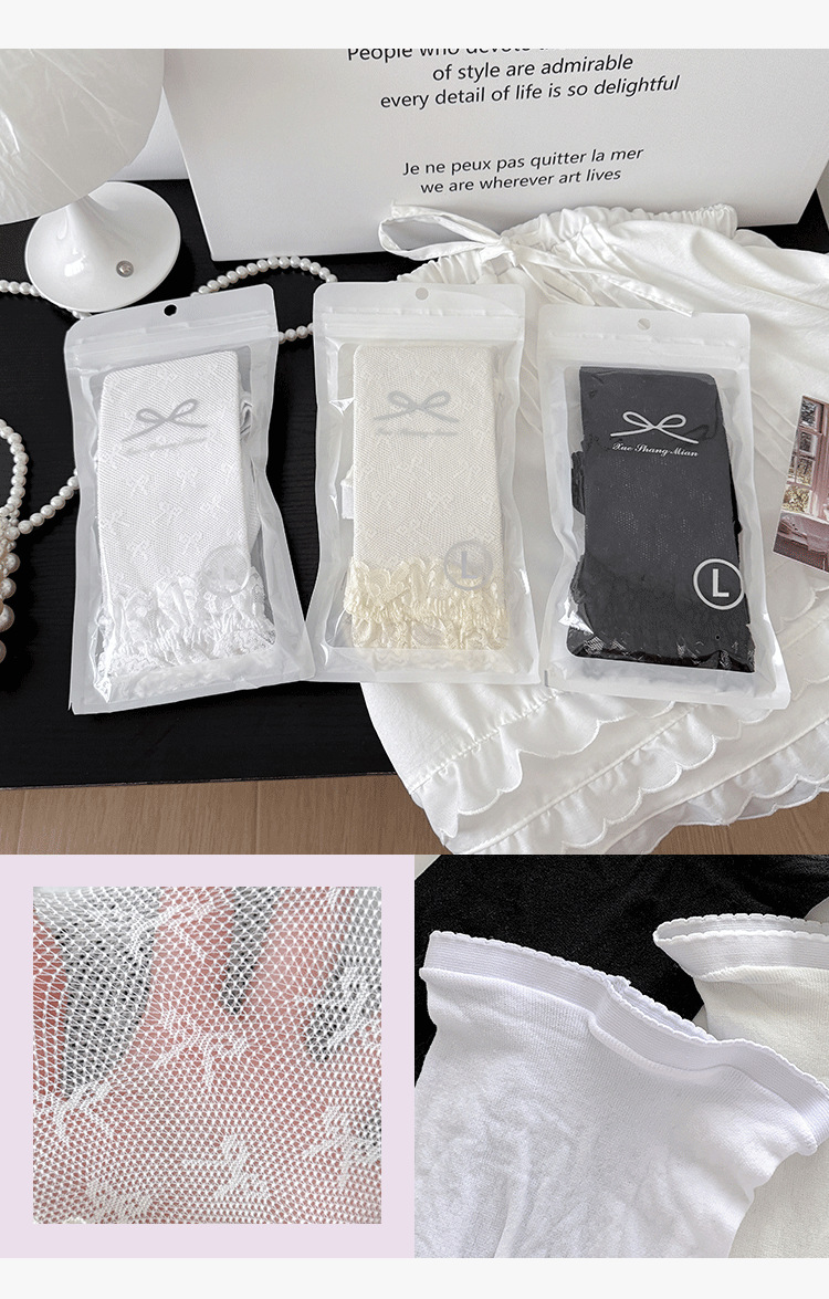 Botas, algodón, lazo, Lolita, calcetines de fondo, mujeres, primavera y verano, encaje fino, pantalones cortos de estilo ballet blanco lechoso