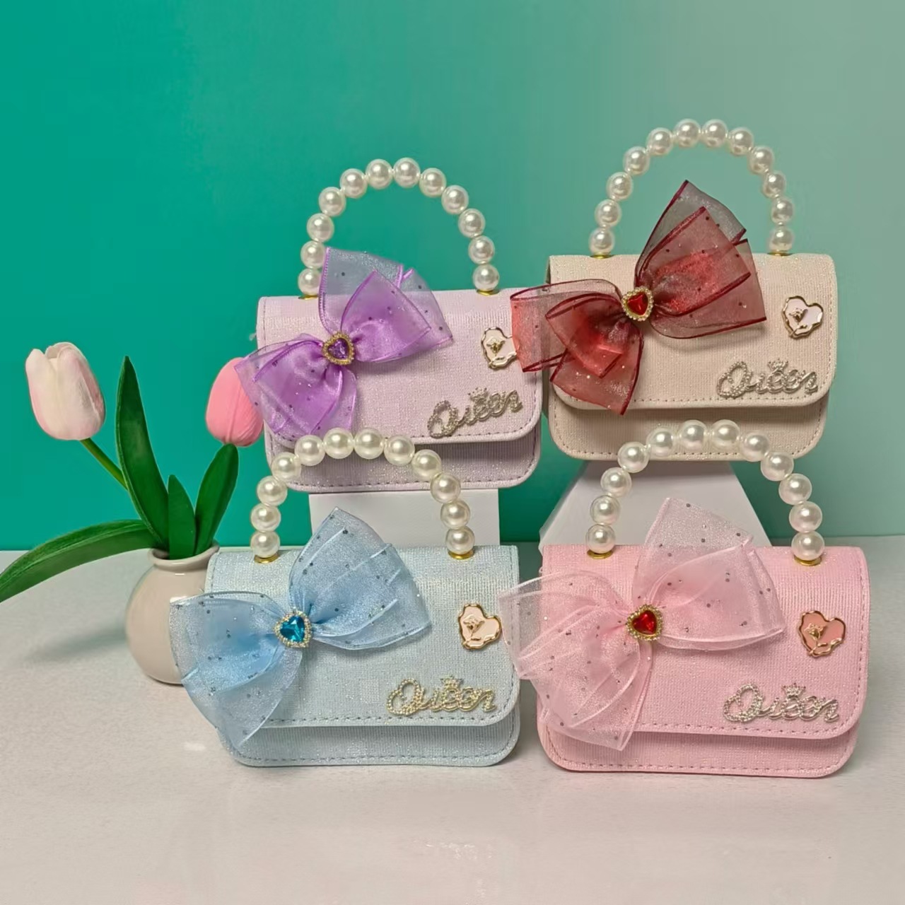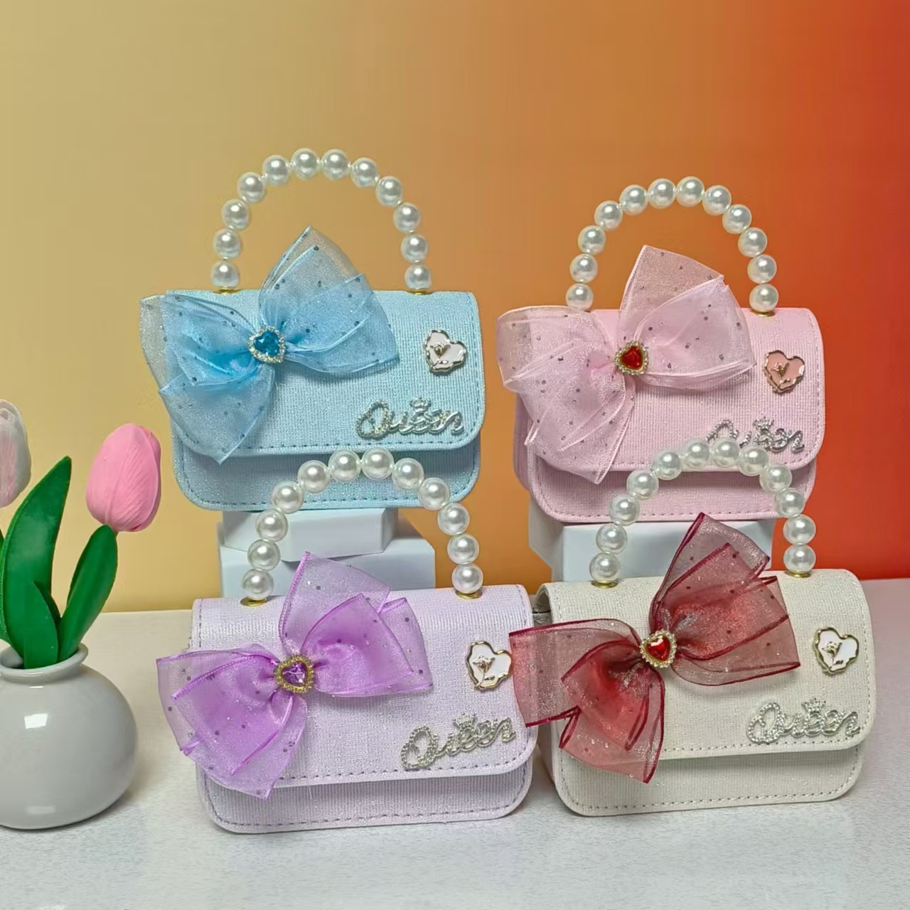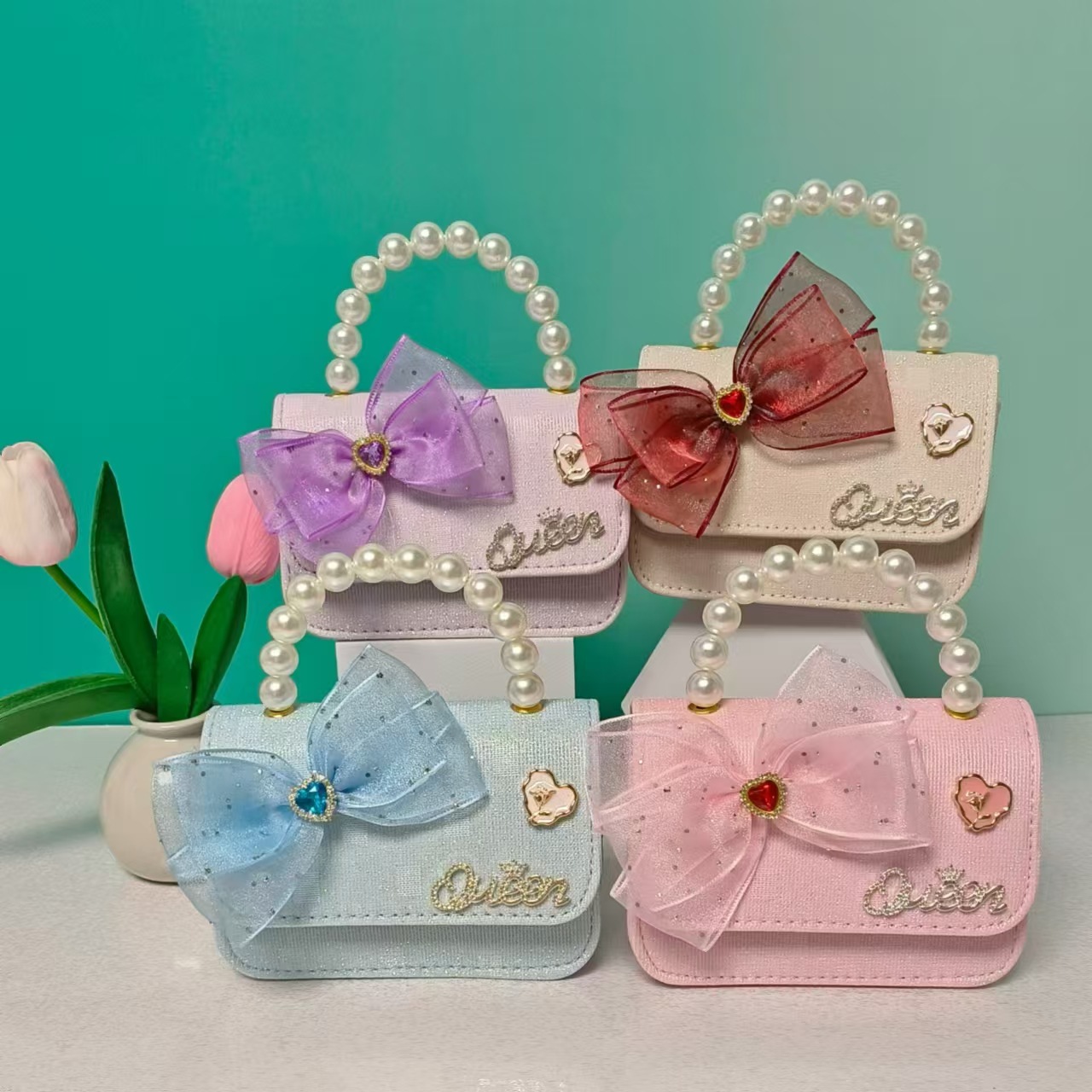 Bagos de perlas para niños 2025 nuevos bolsos de niños bolsos de mochila de niñas bolsos accesorios de princesa bolsos de viento de fragancia