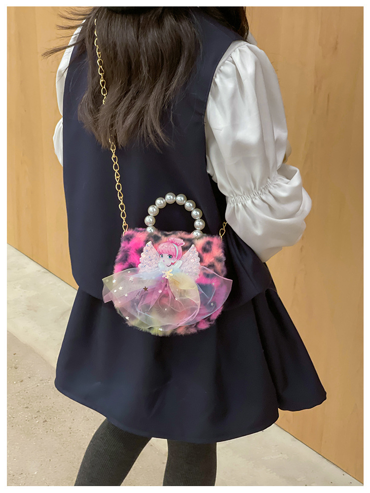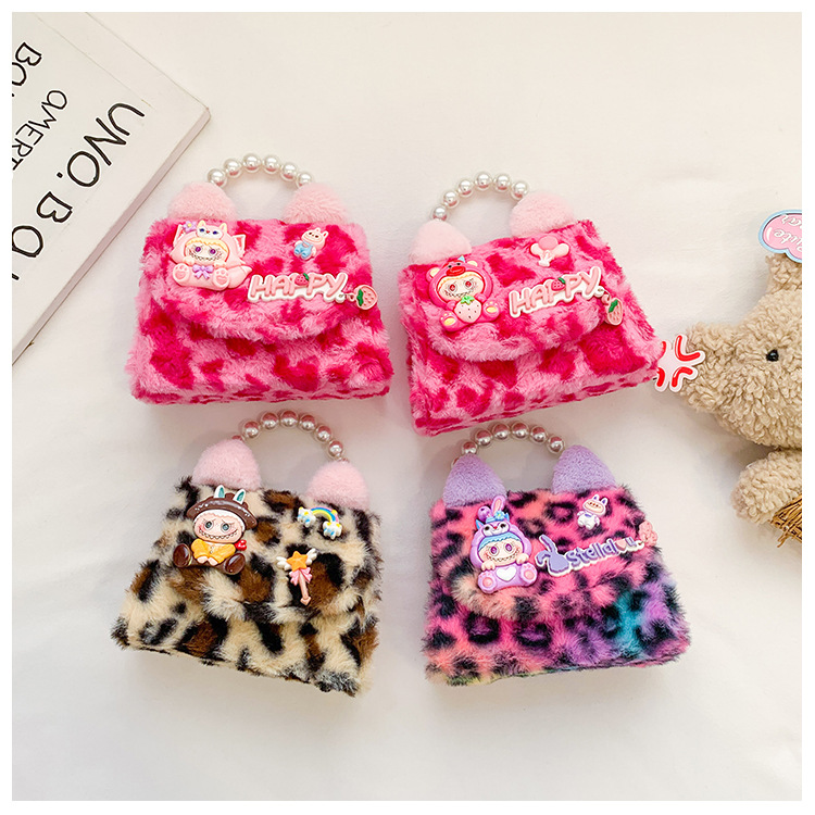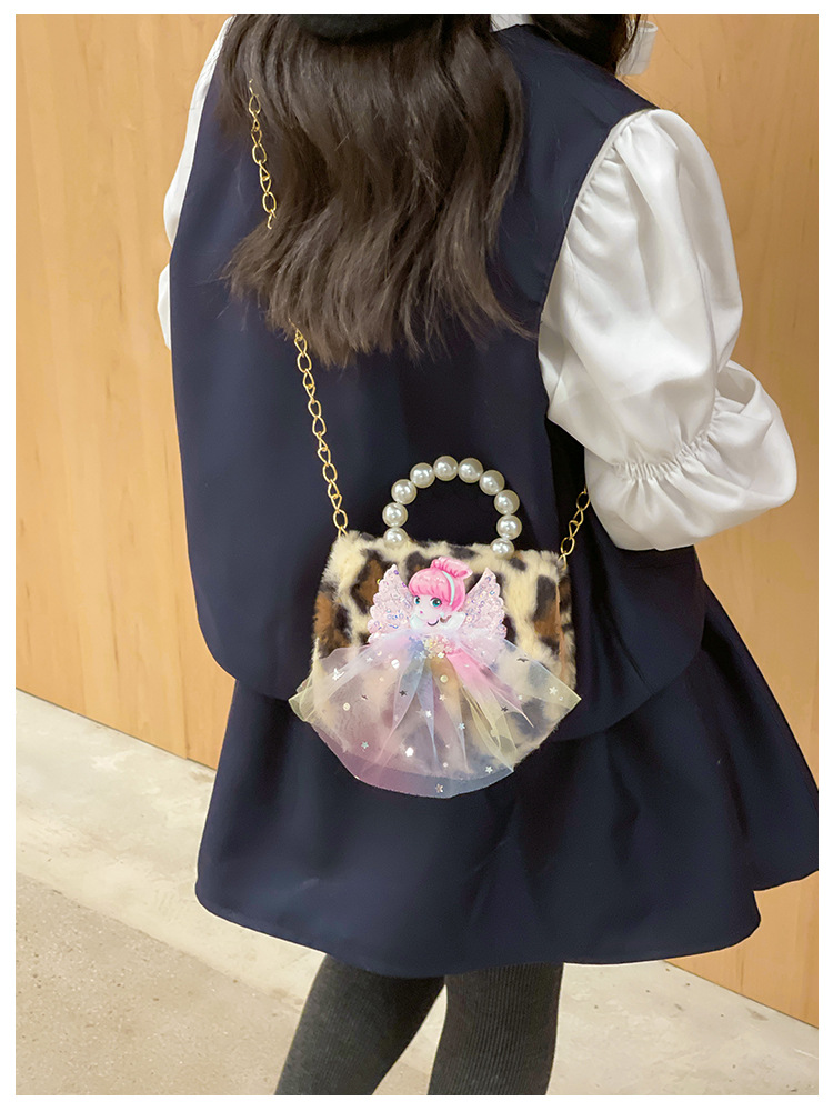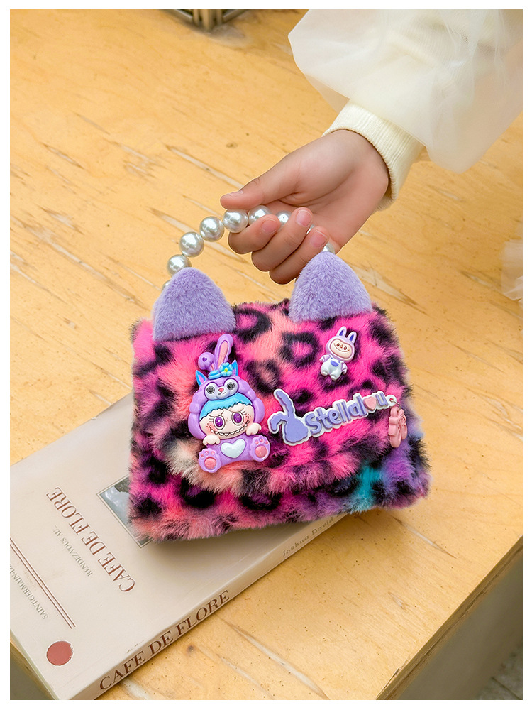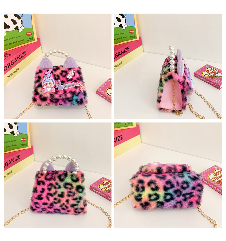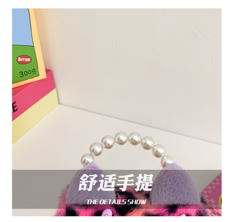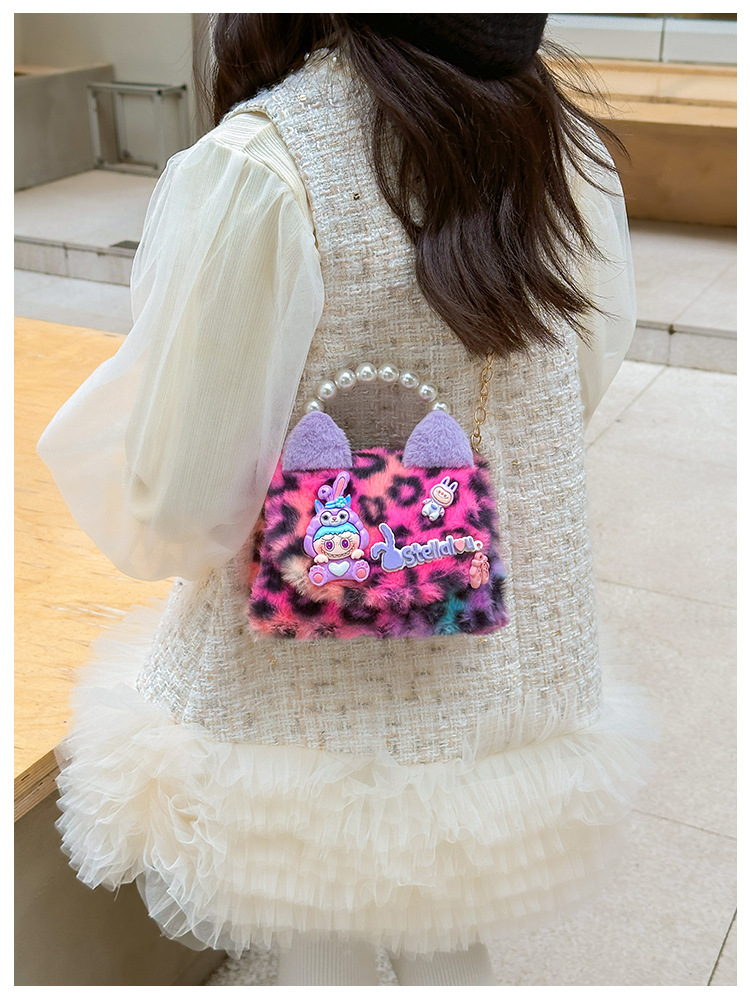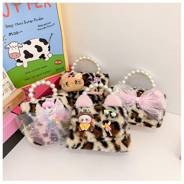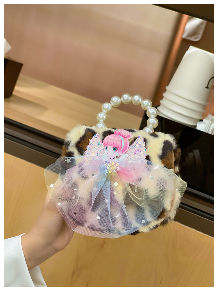 Nuevo leopardo arco bolso infantil peluche princesa de dibujos animados chica bolso de perlas bolso de hombro monedero