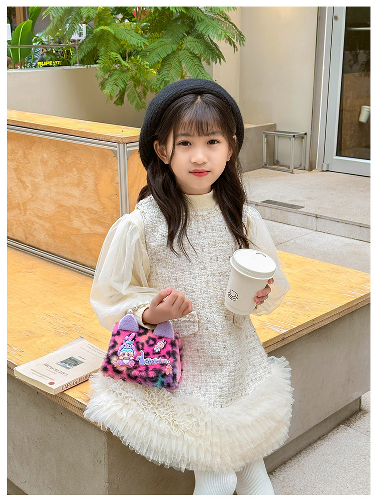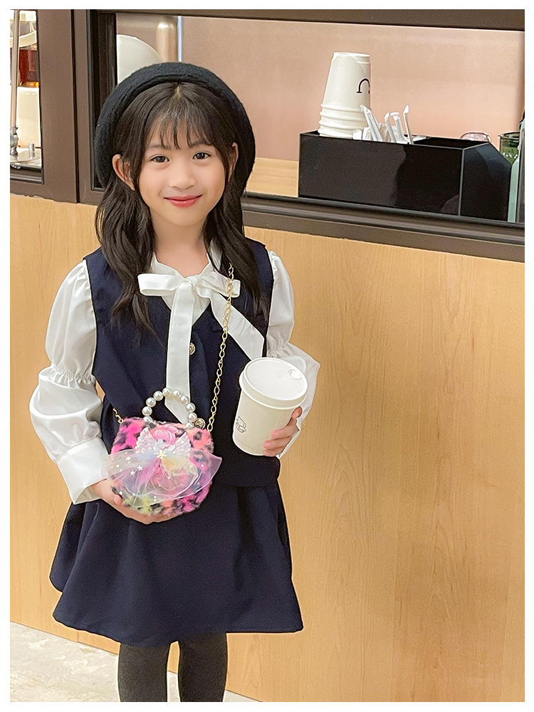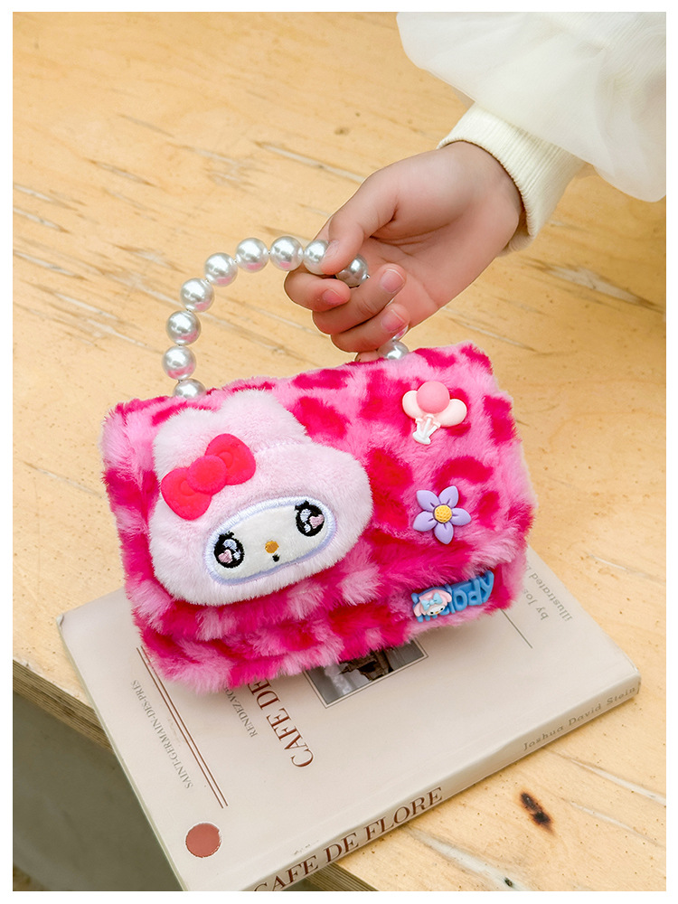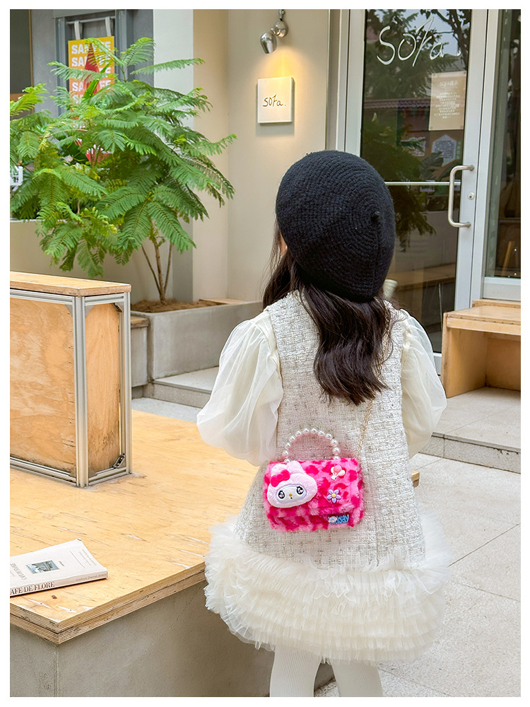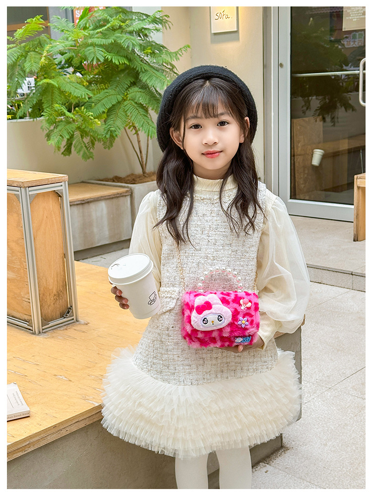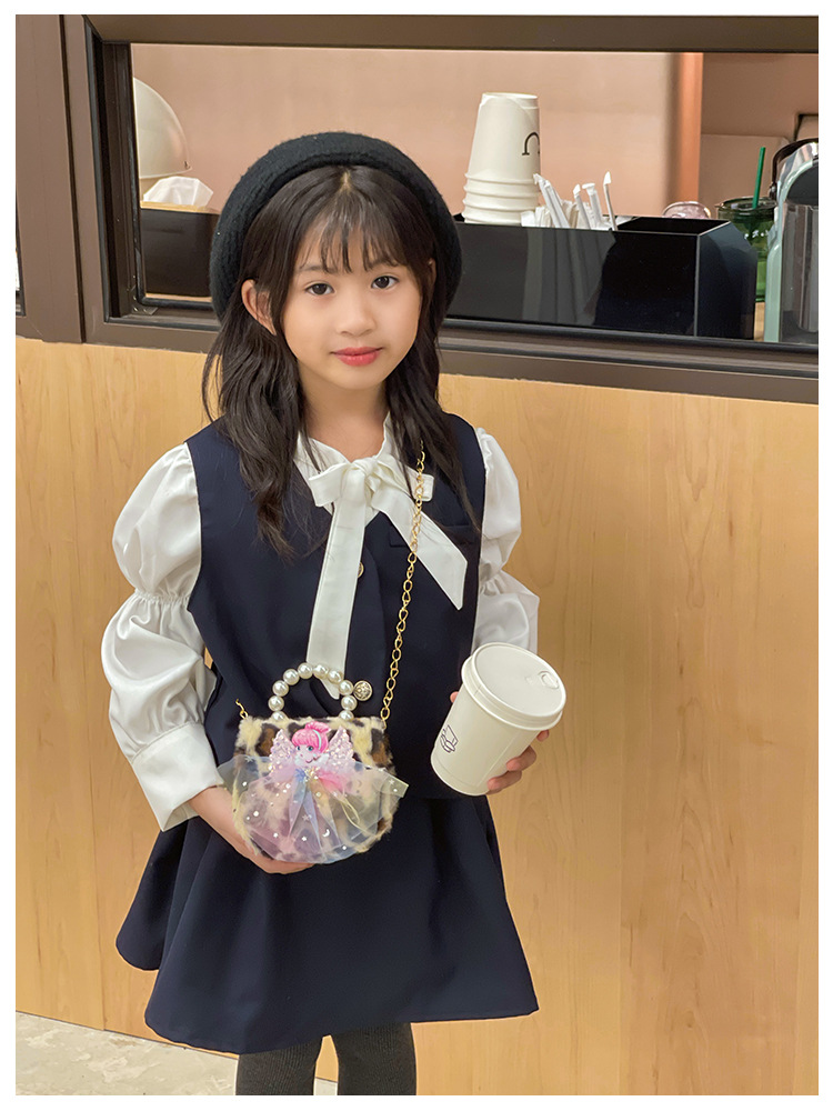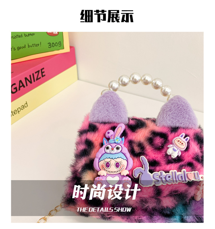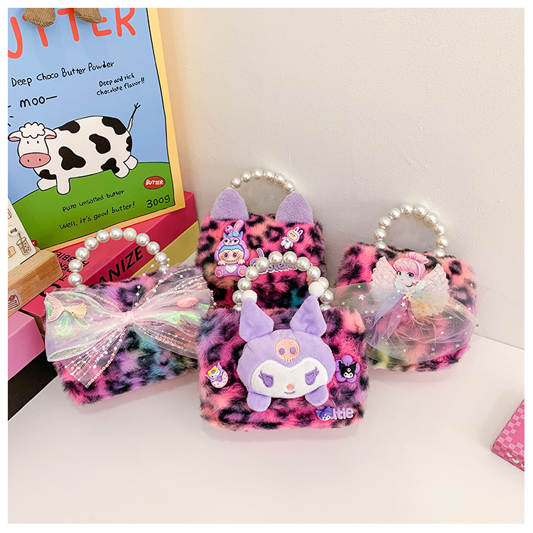 Nuevo leopardo arco bolso infantil peluche princesa de dibujos animados chica bolso de perlas bolso de hombro monedero