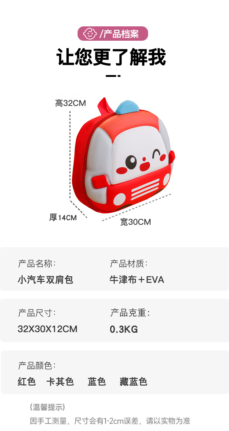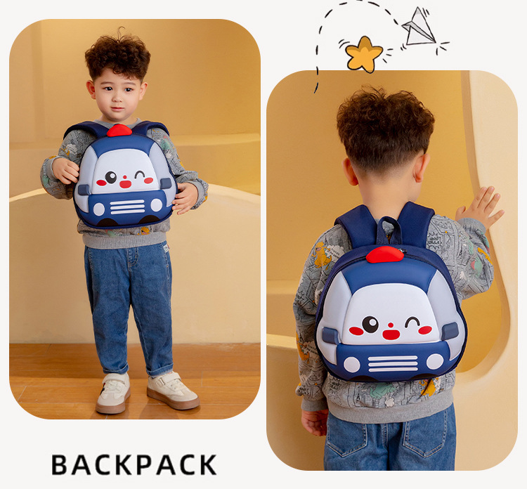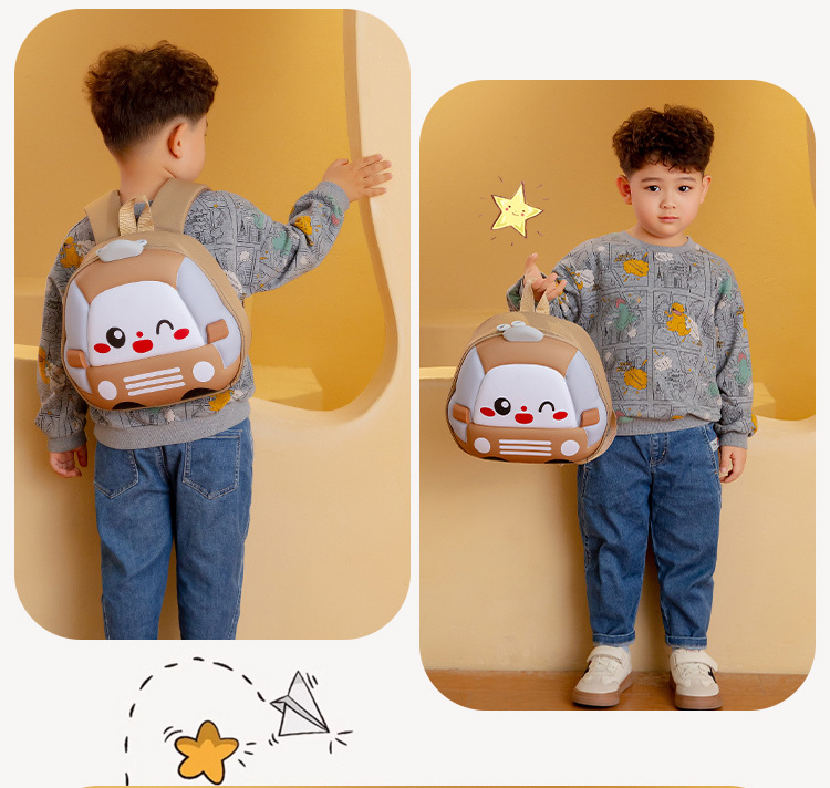 2025 verano nuevo lindo coche bolso infantil cartoon estereoscópico mochila de jardín de infantes mochila ligera