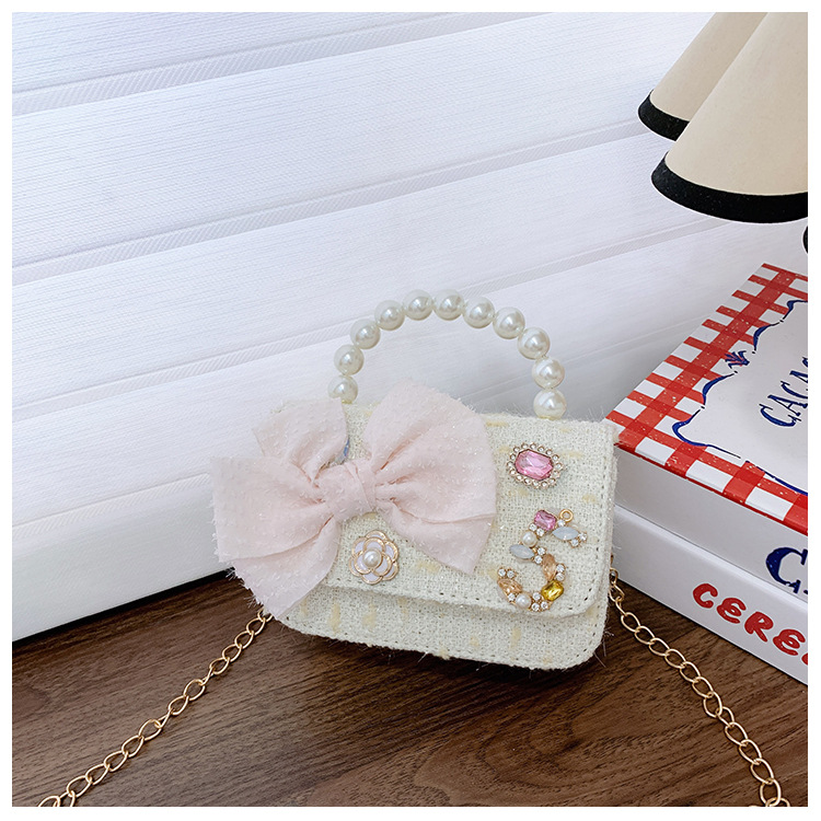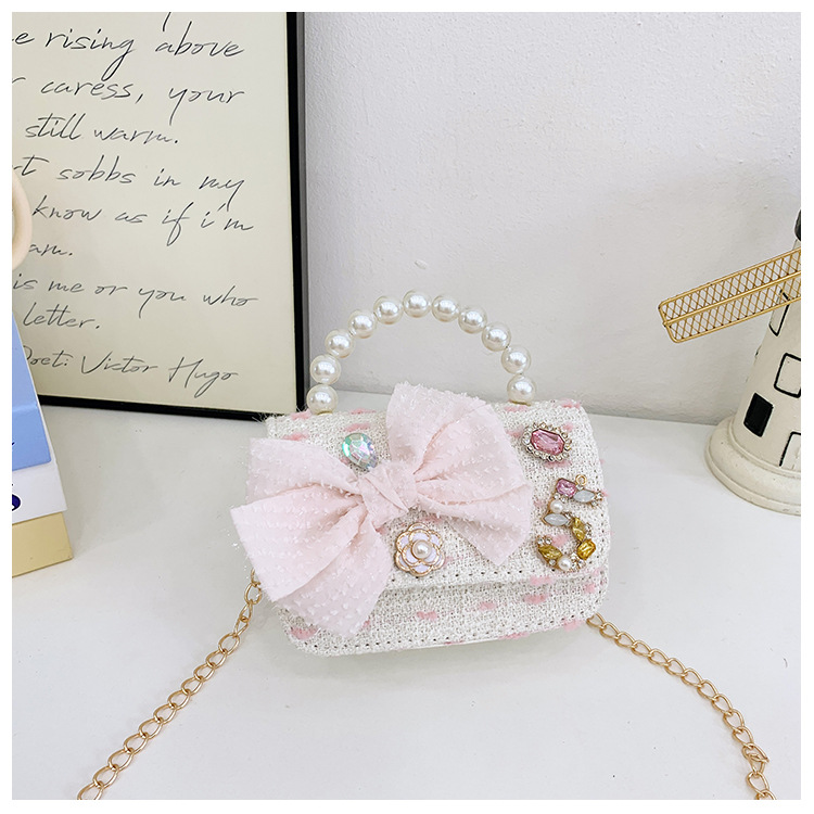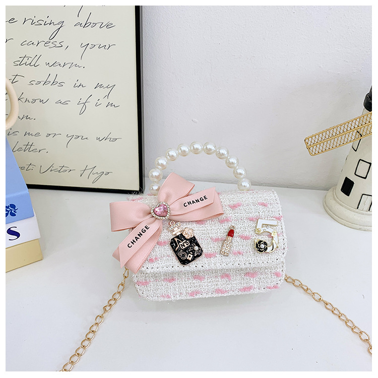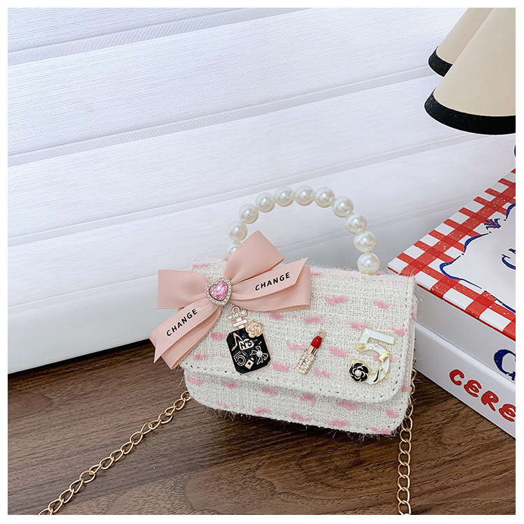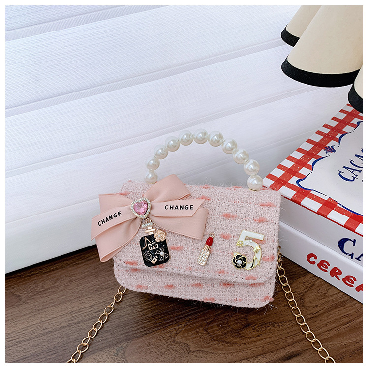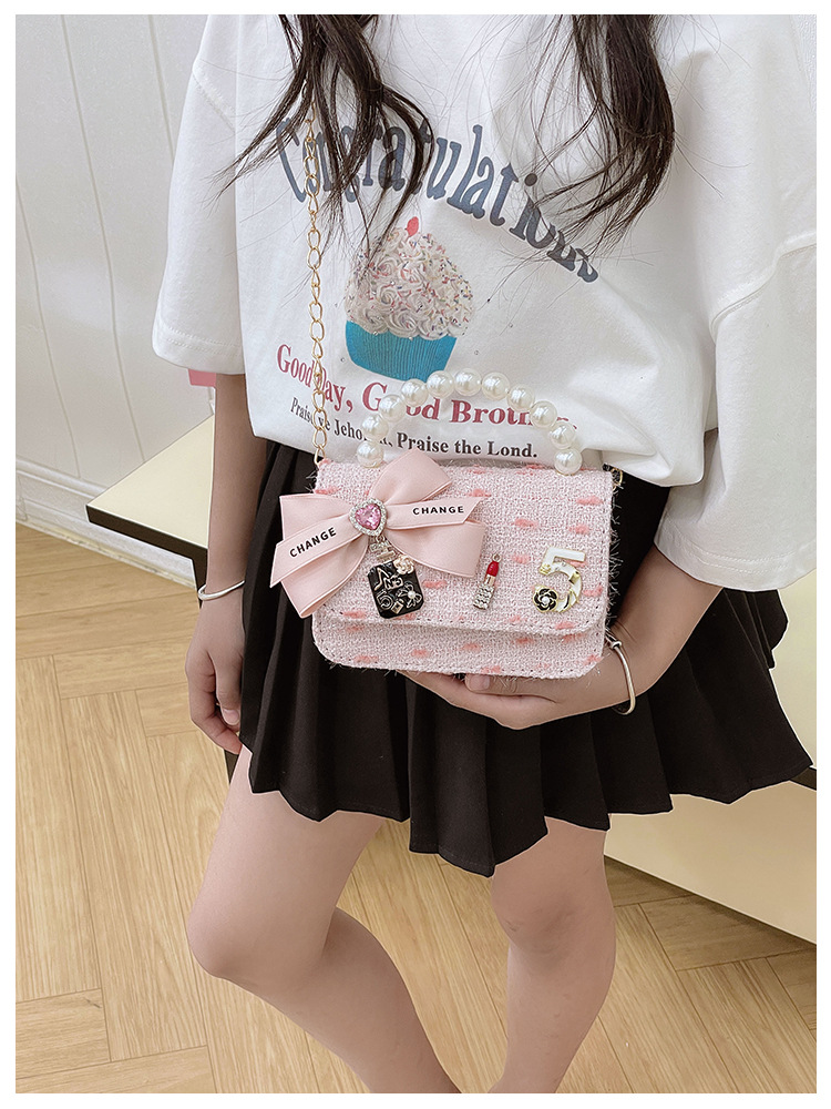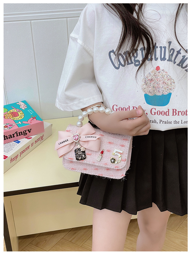 Bolso de cinturón para niños bolso de cambio pequeño viento perla de moda bolso de arco bolso de niña linda