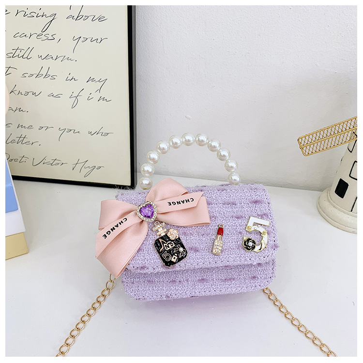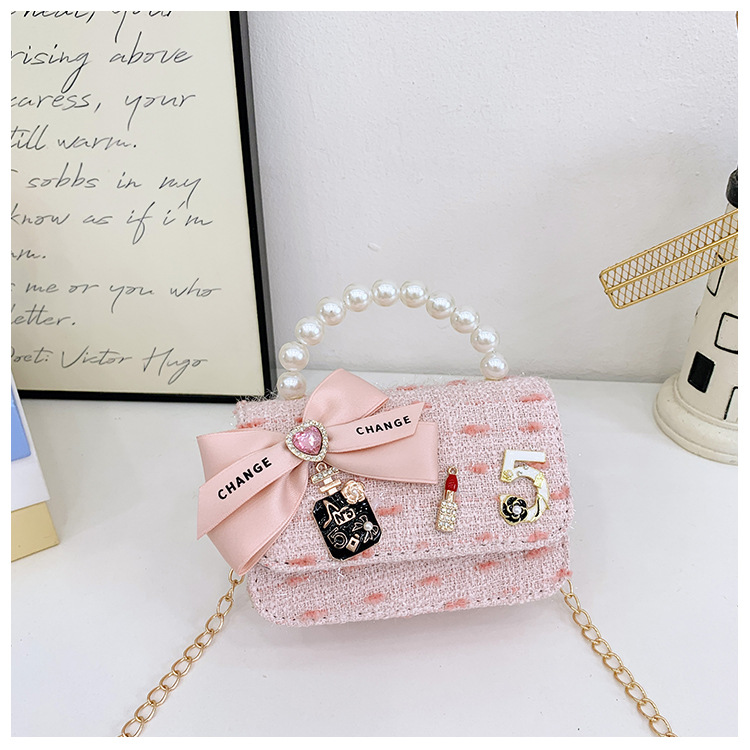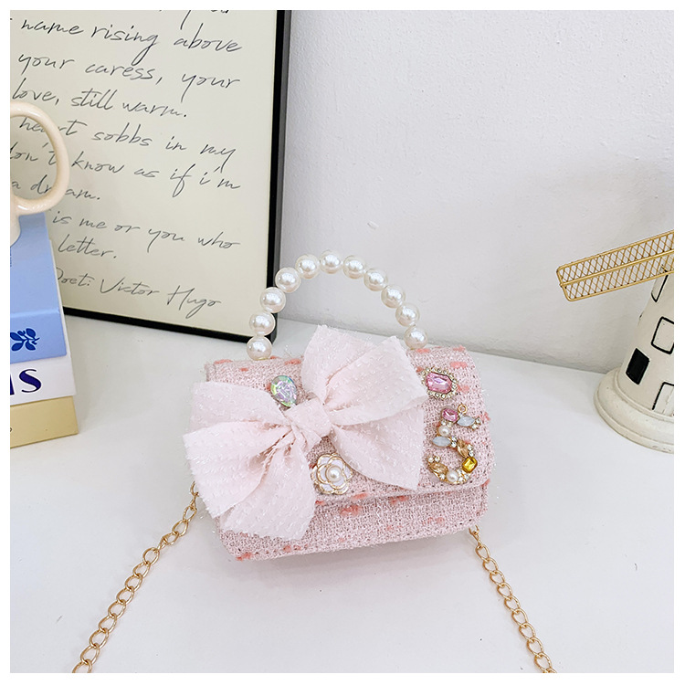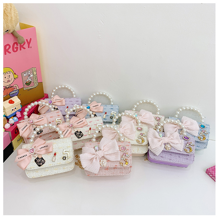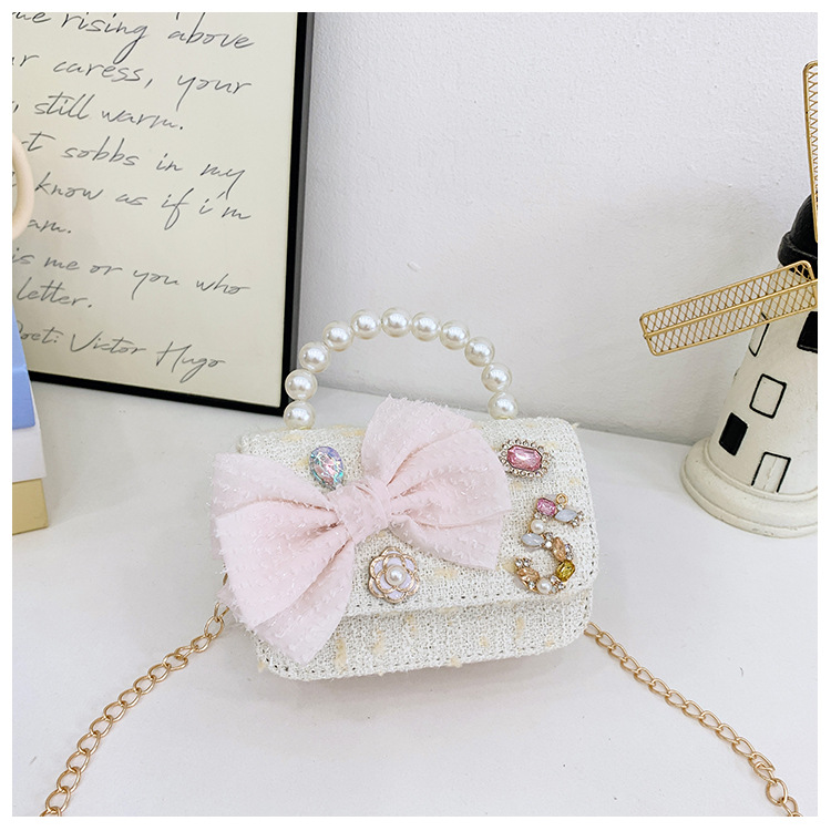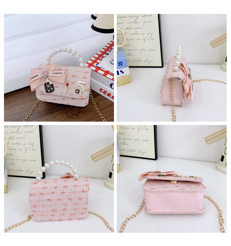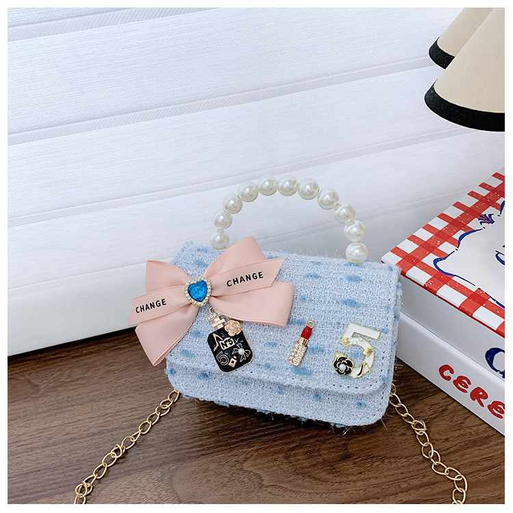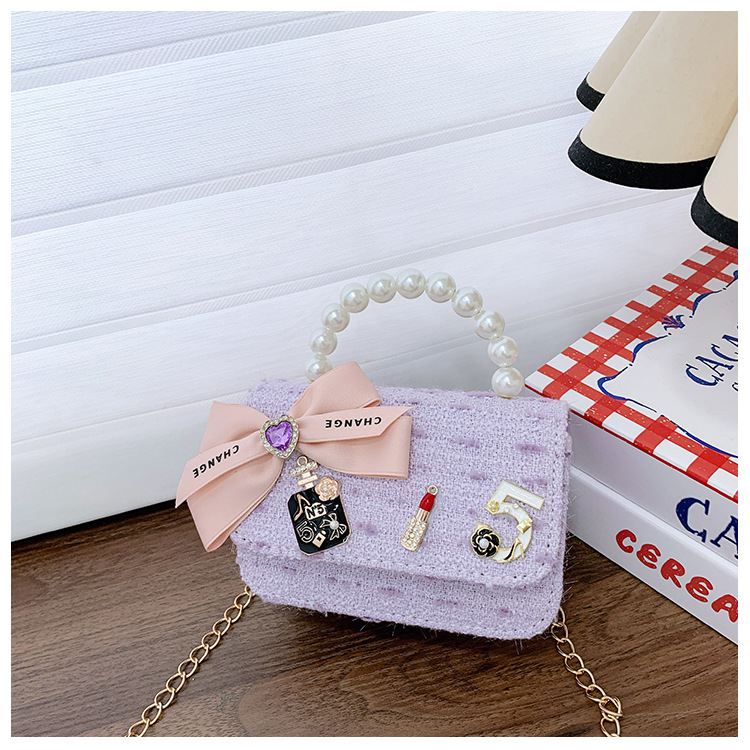 Bolso de cinturón para niños bolso de cambio pequeño viento perla de moda bolso de arco bolso de niña linda