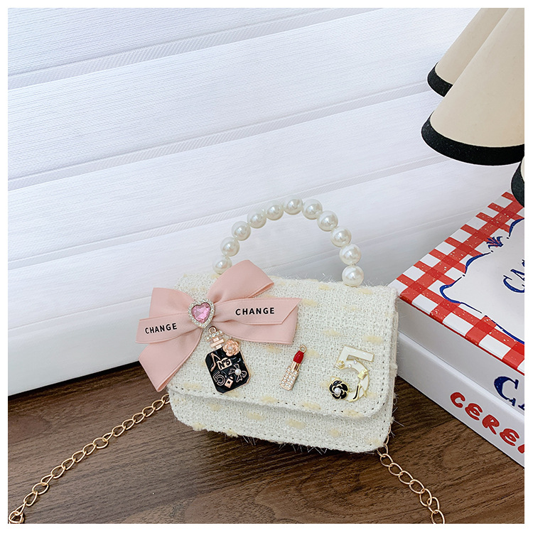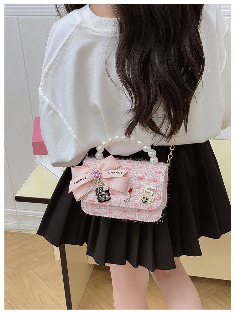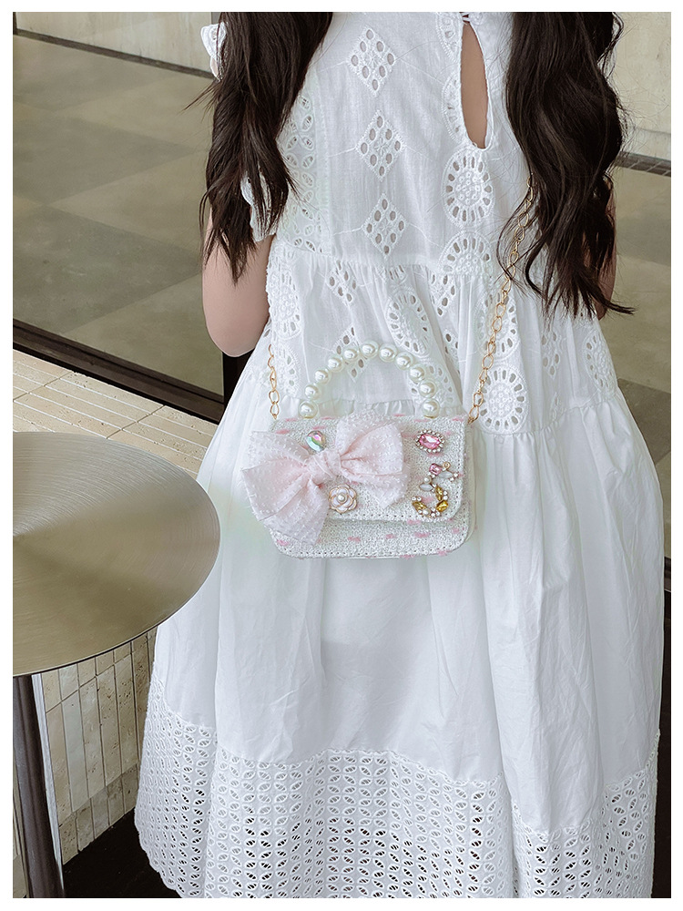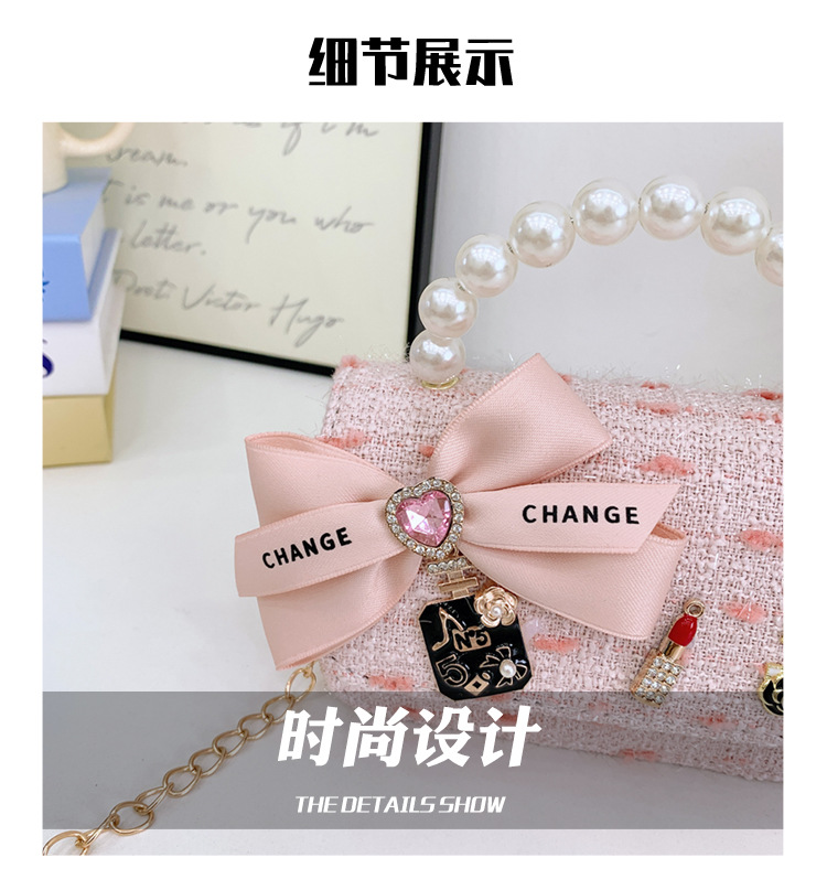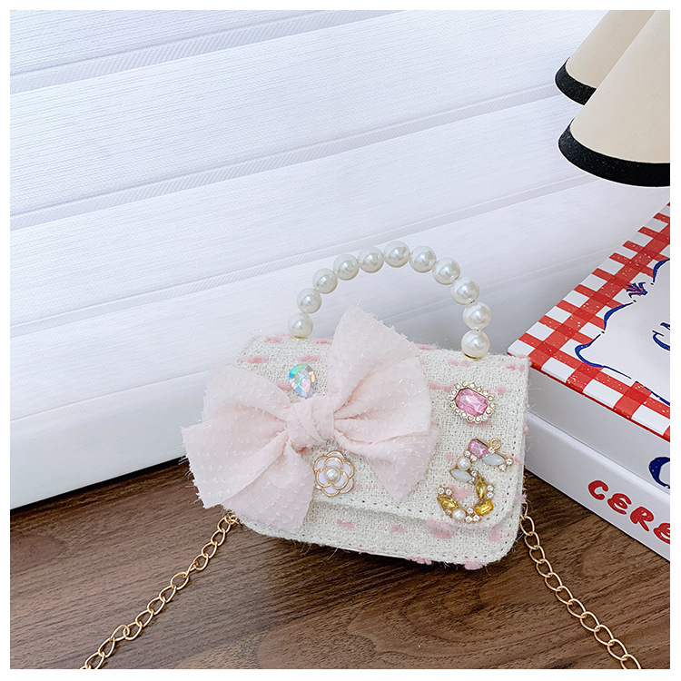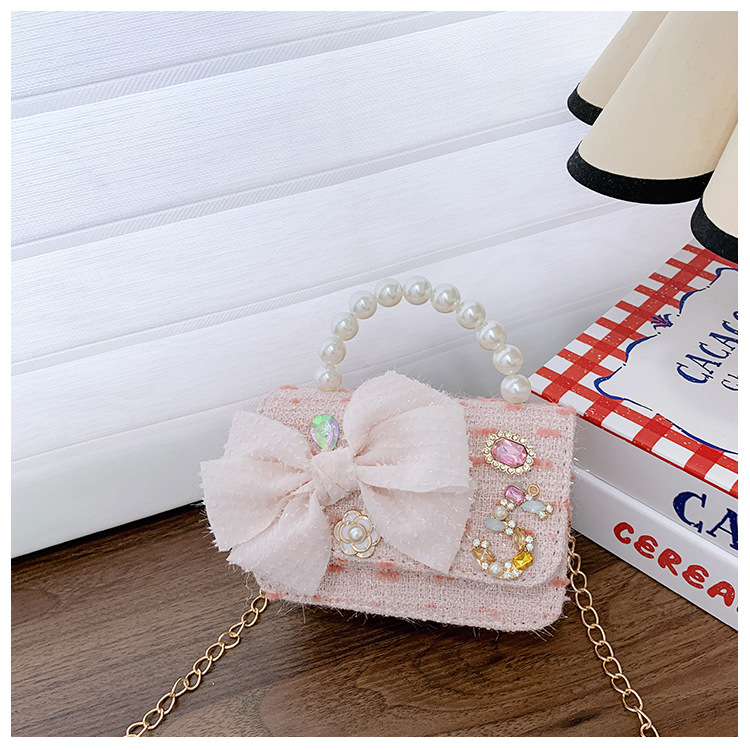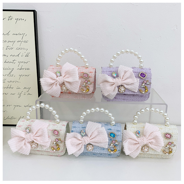 Bolsos para niños bolso de hombro lindo para mujer bolso de mensajero de perlas con lazo de moda princesa bolso de niña de estilo occidental