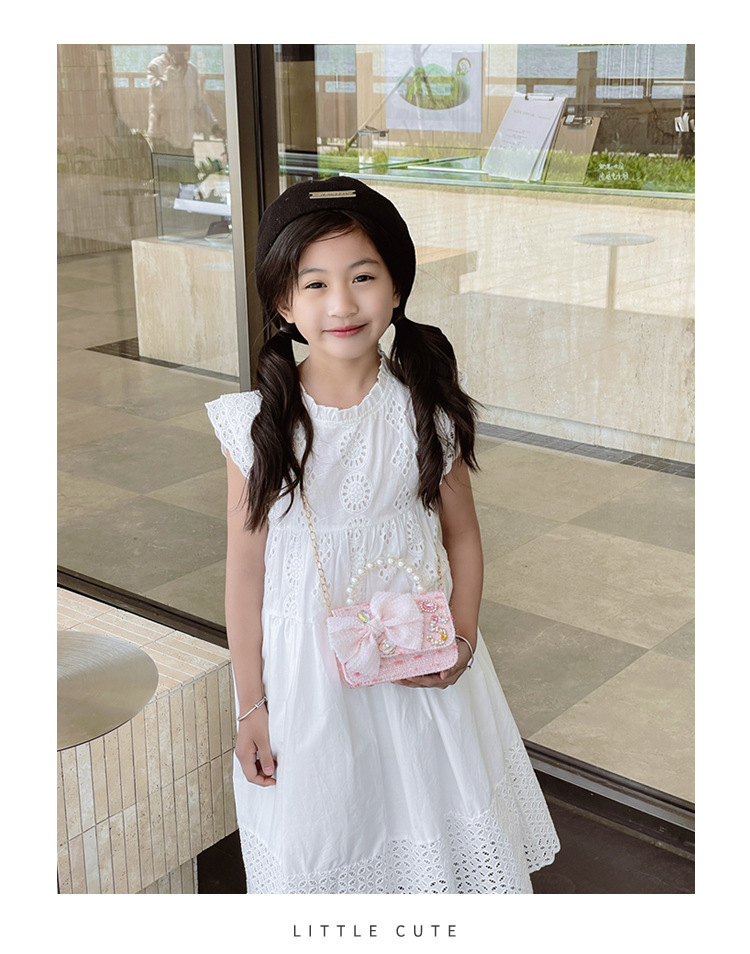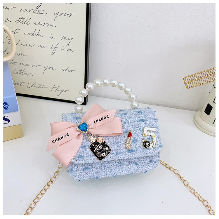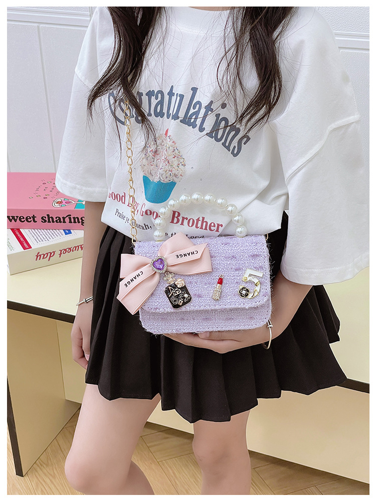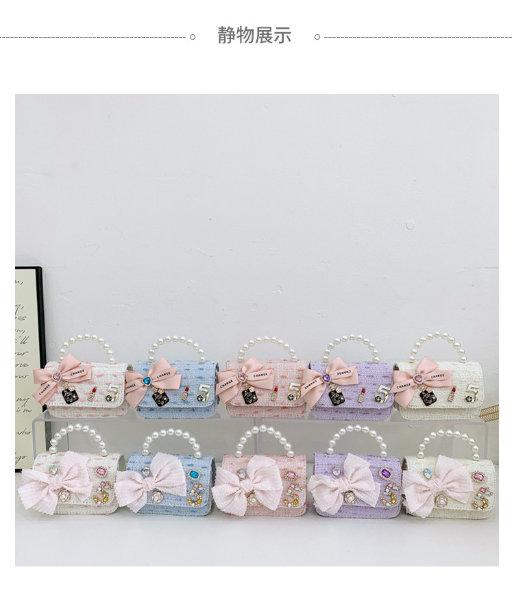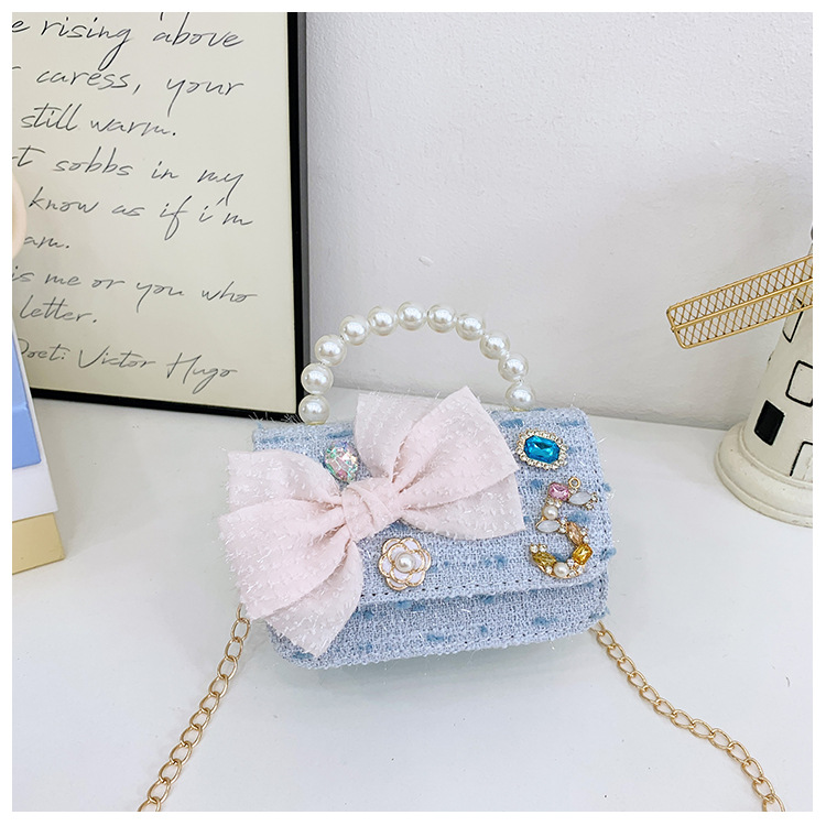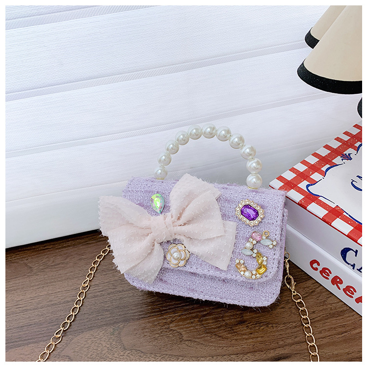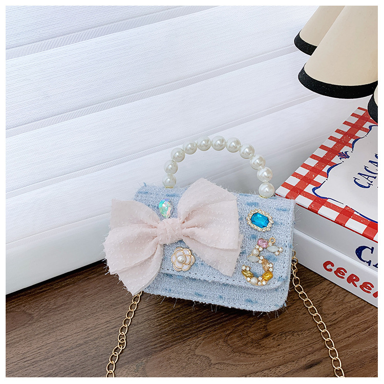 Bolsos para niños bolso de hombro lindo para mujer bolso de mensajero de perlas con lazo de moda princesa bolso de niña de estilo occidental