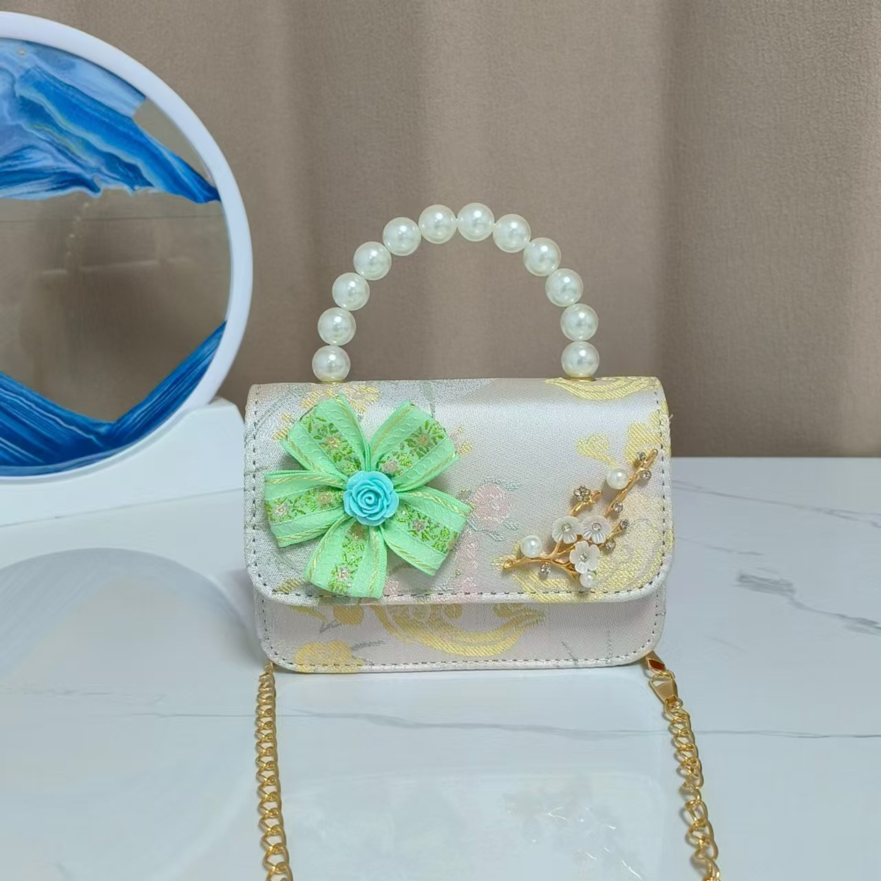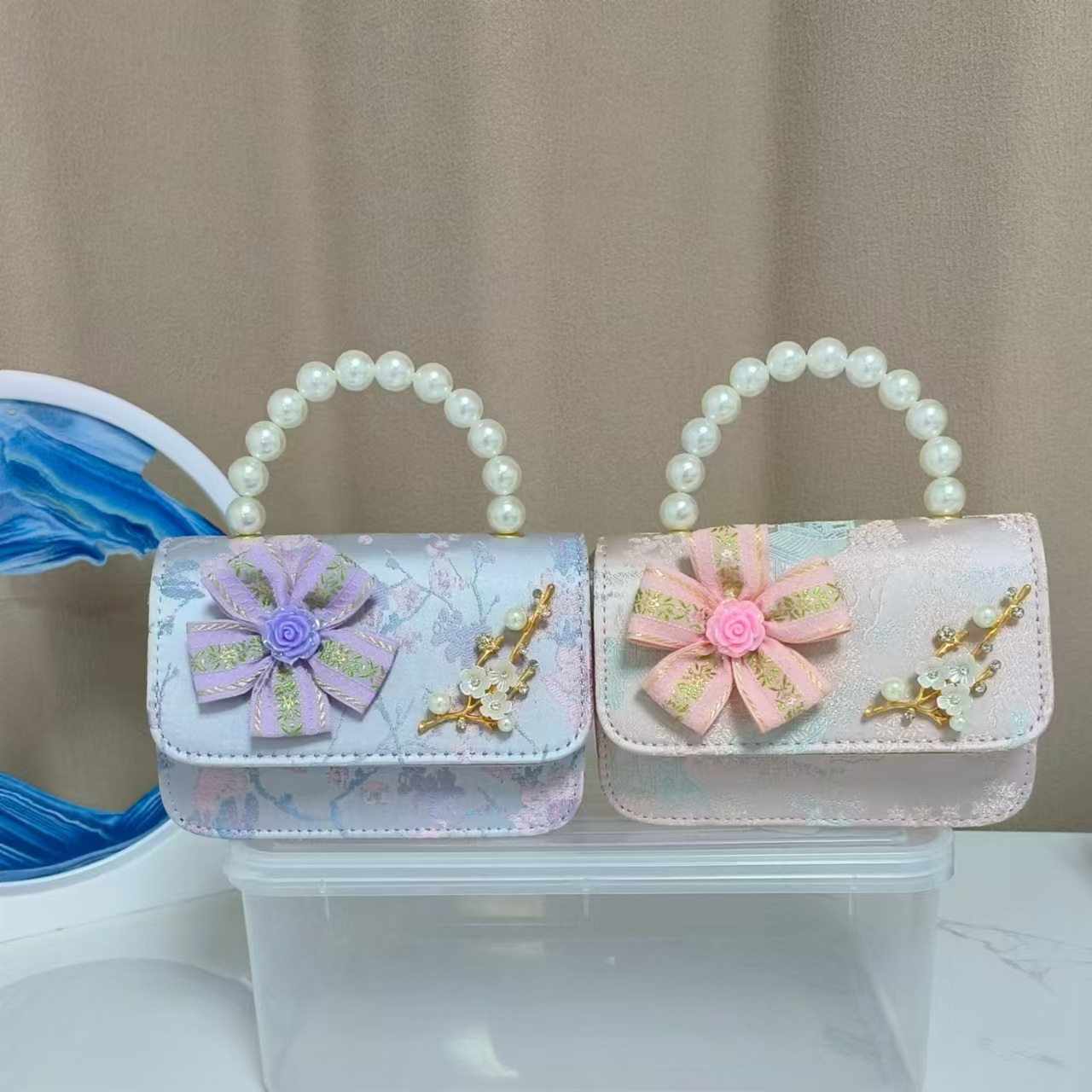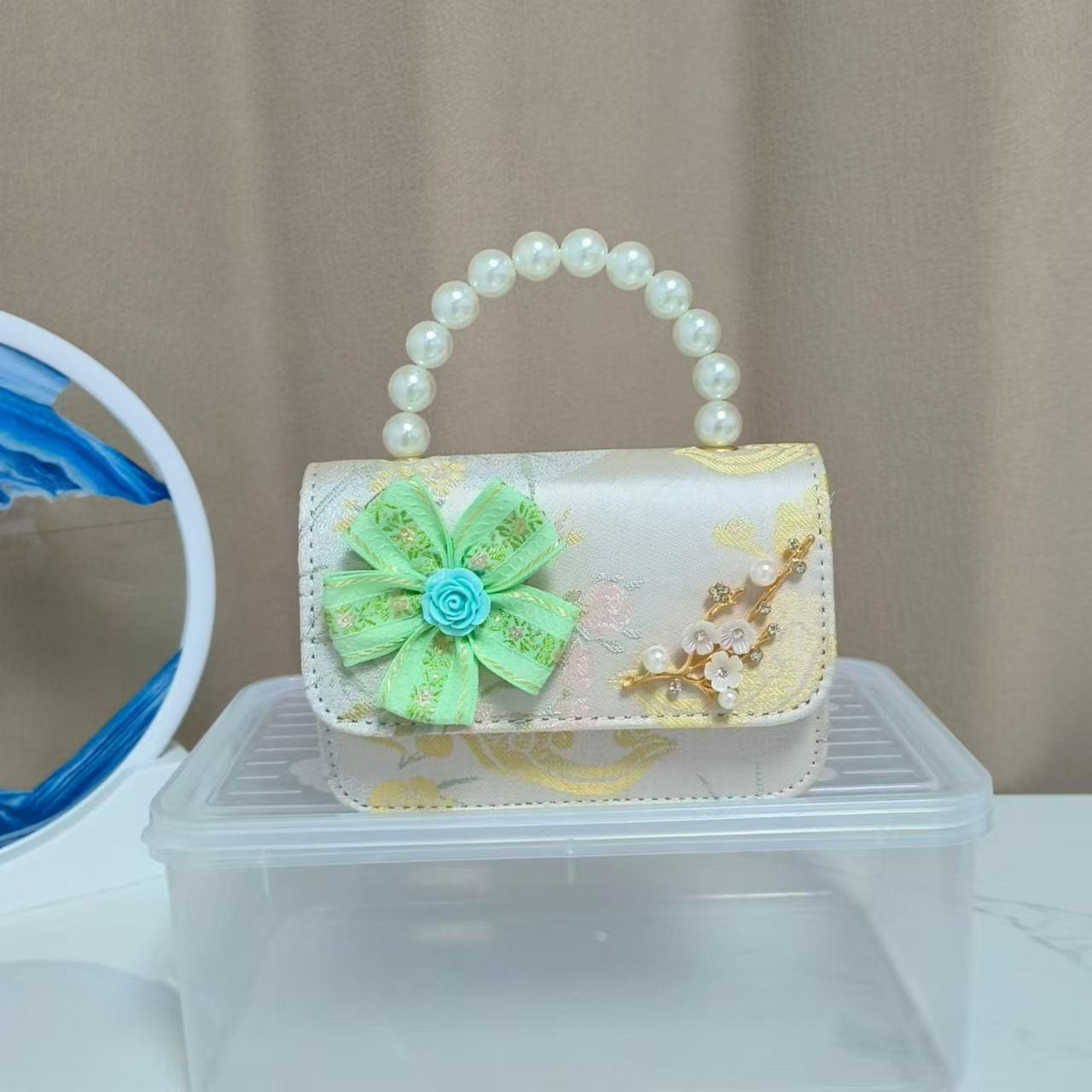 Bolsos infantiles de alto nivel, exquisitos antiguos, bolsos de cambio de niña, bolsos de mano de perlas de princesa, bolsos de almacenamiento