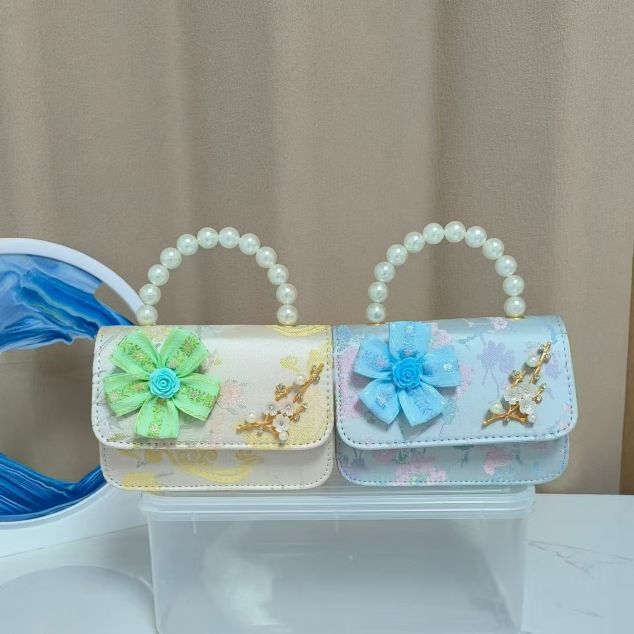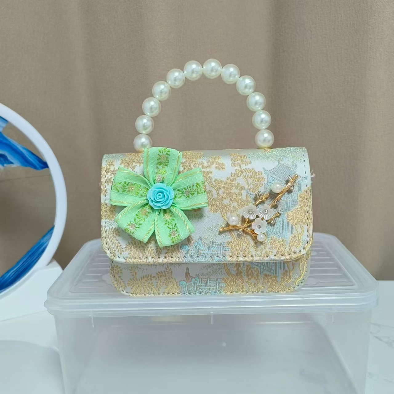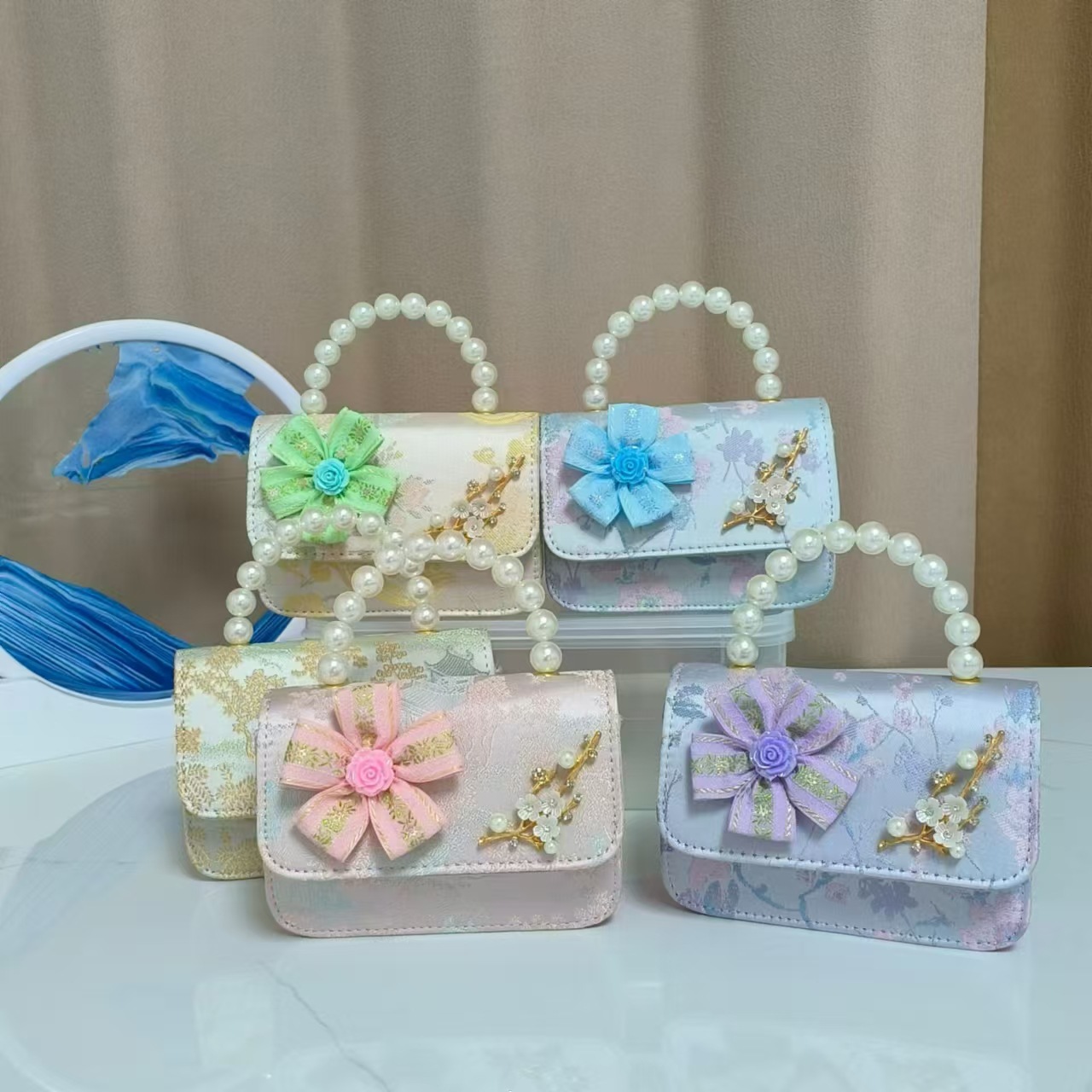 Bolsos infantiles de alto nivel, exquisitos antiguos, bolsos de cambio de niña, bolsos de mano de perlas de princesa, bolsos de almacenamiento