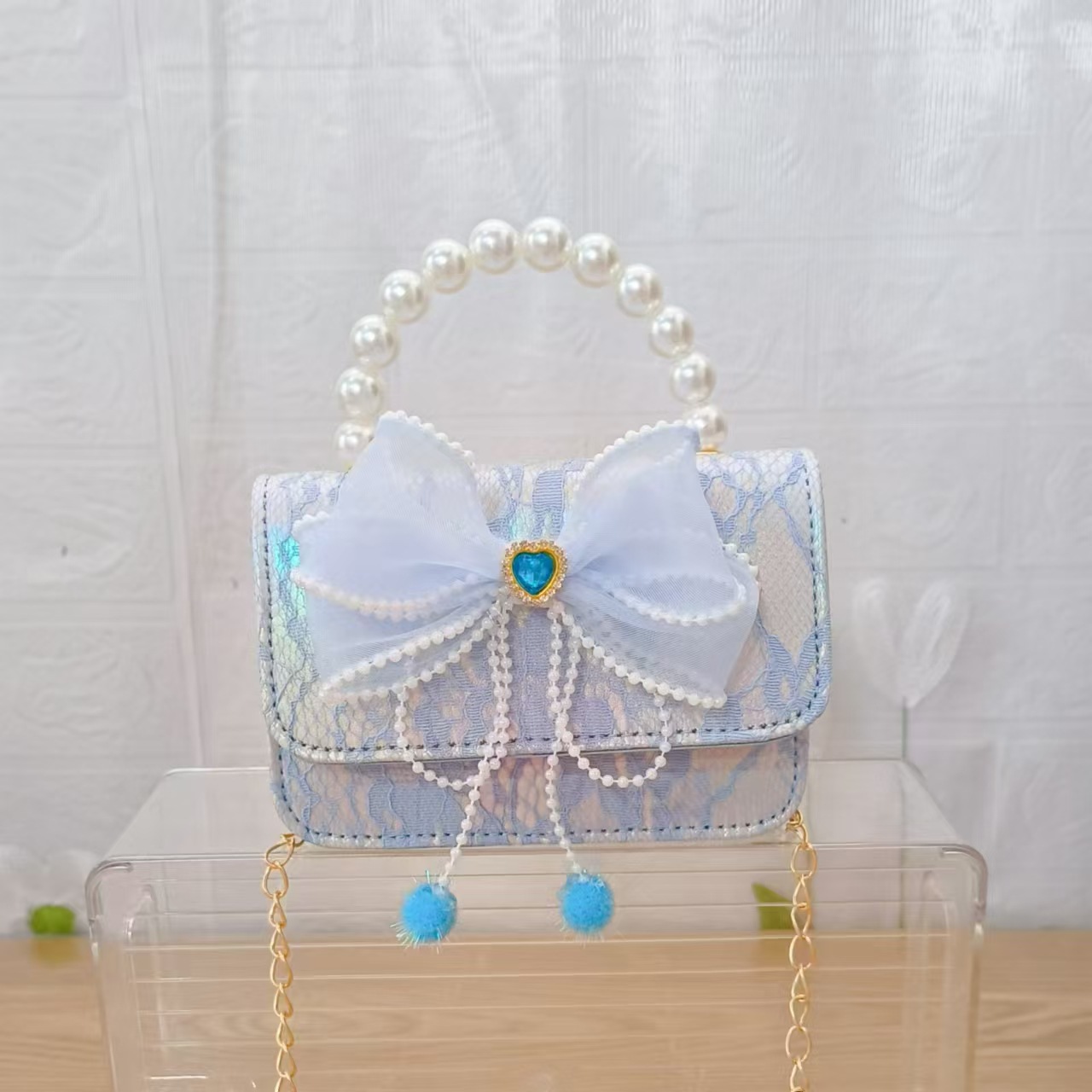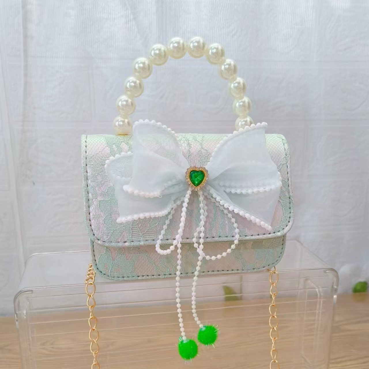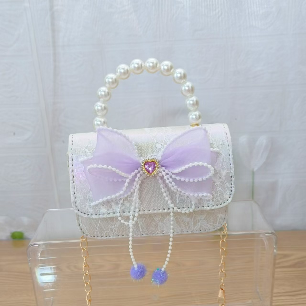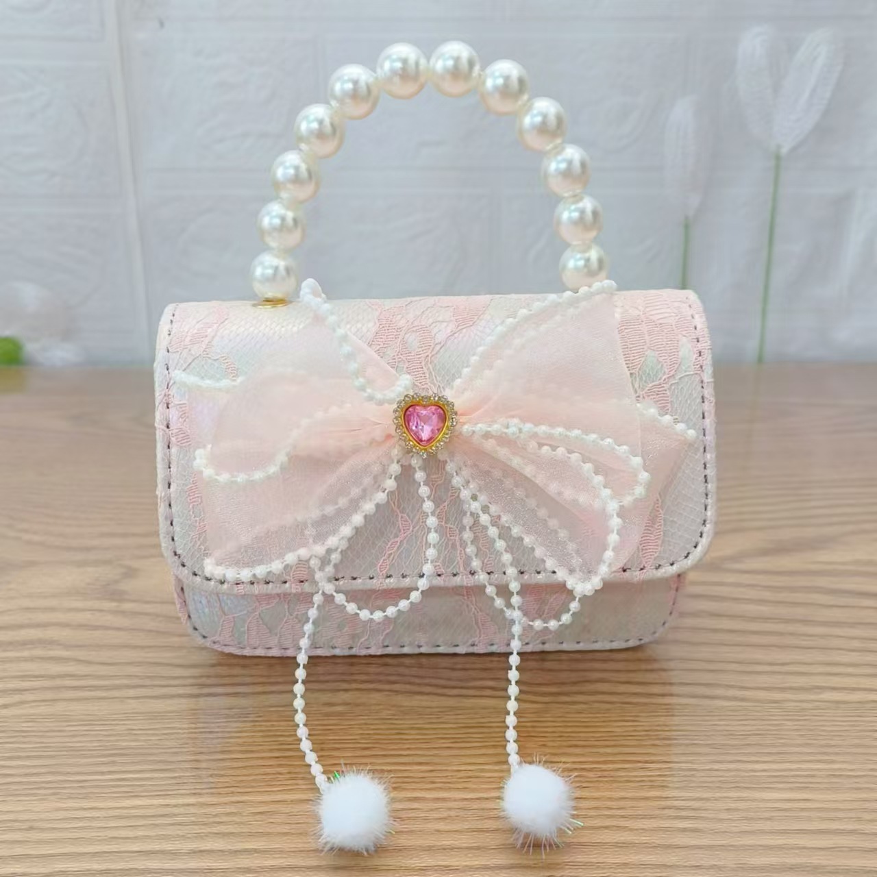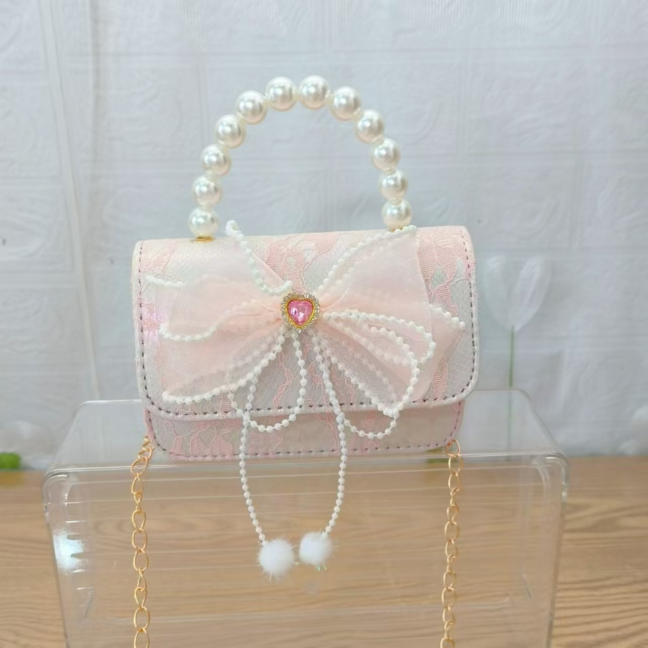 Bolsa de arco princesa bolso de perlas bolso de mano cadena bolso de cinturón pequeño viento bolso de niñas bolso de regalo del día de los niños bolso pequeño