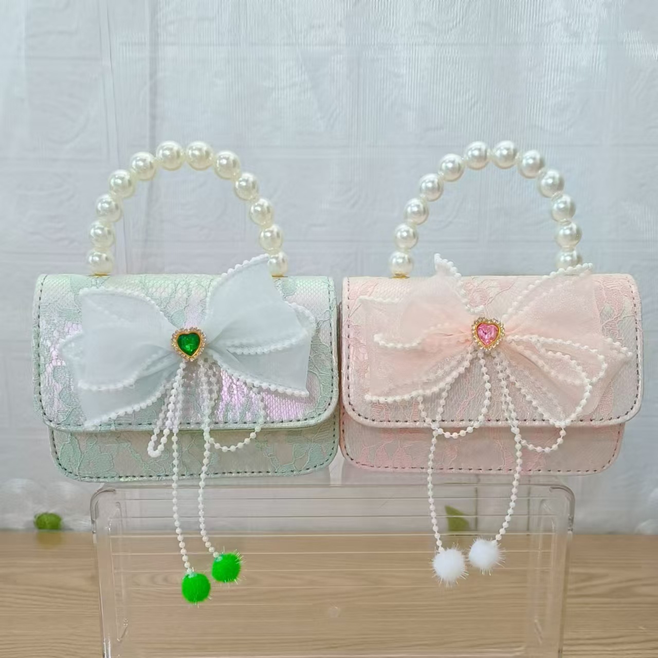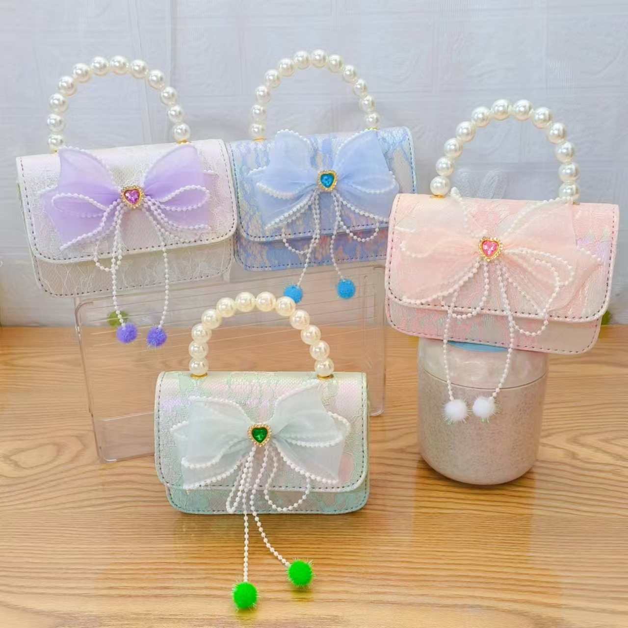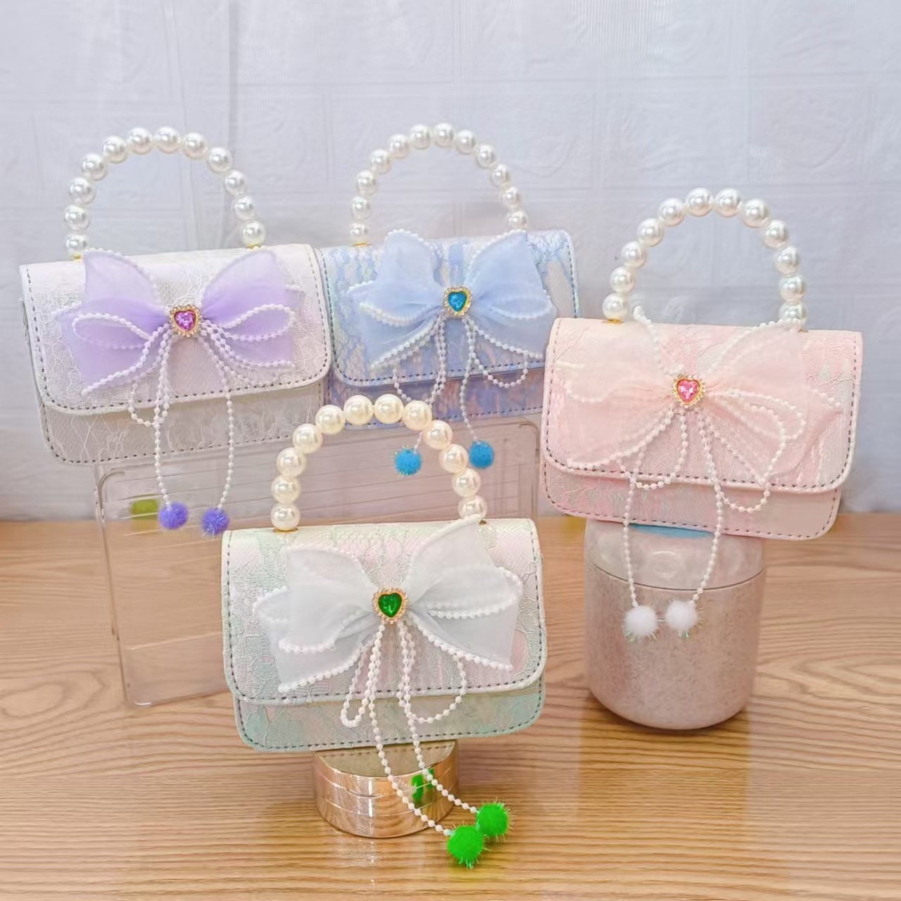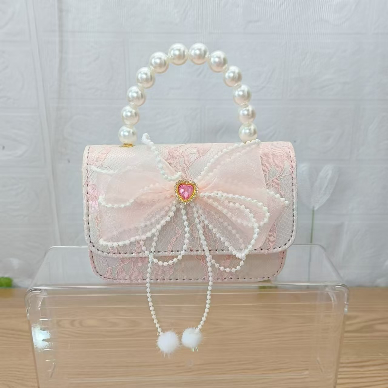 Bolsa de arco princesa bolso de perlas bolso de mano cadena bolso de cinturón pequeño viento bolso de niñas bolso de regalo del día de los niños bolso pequeño