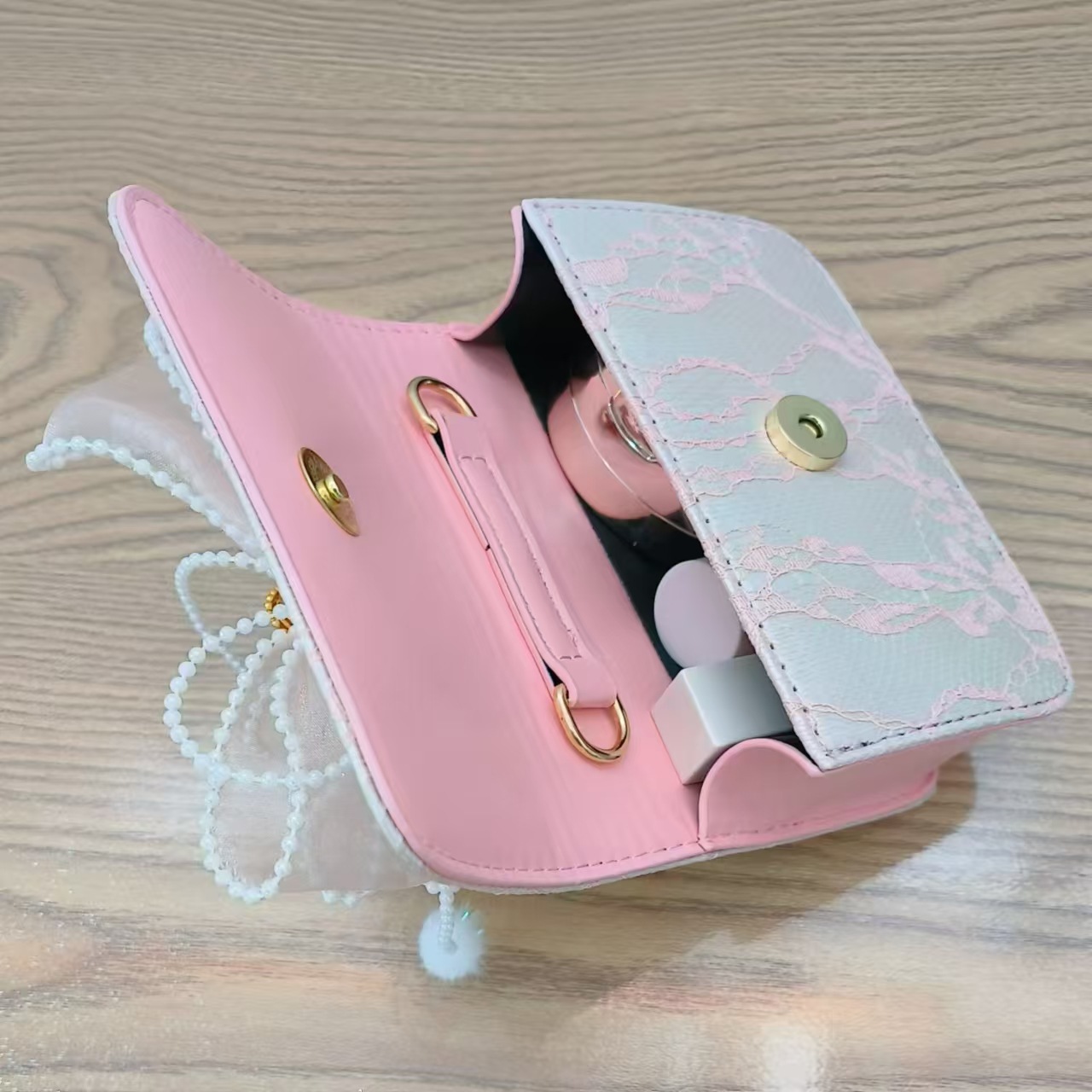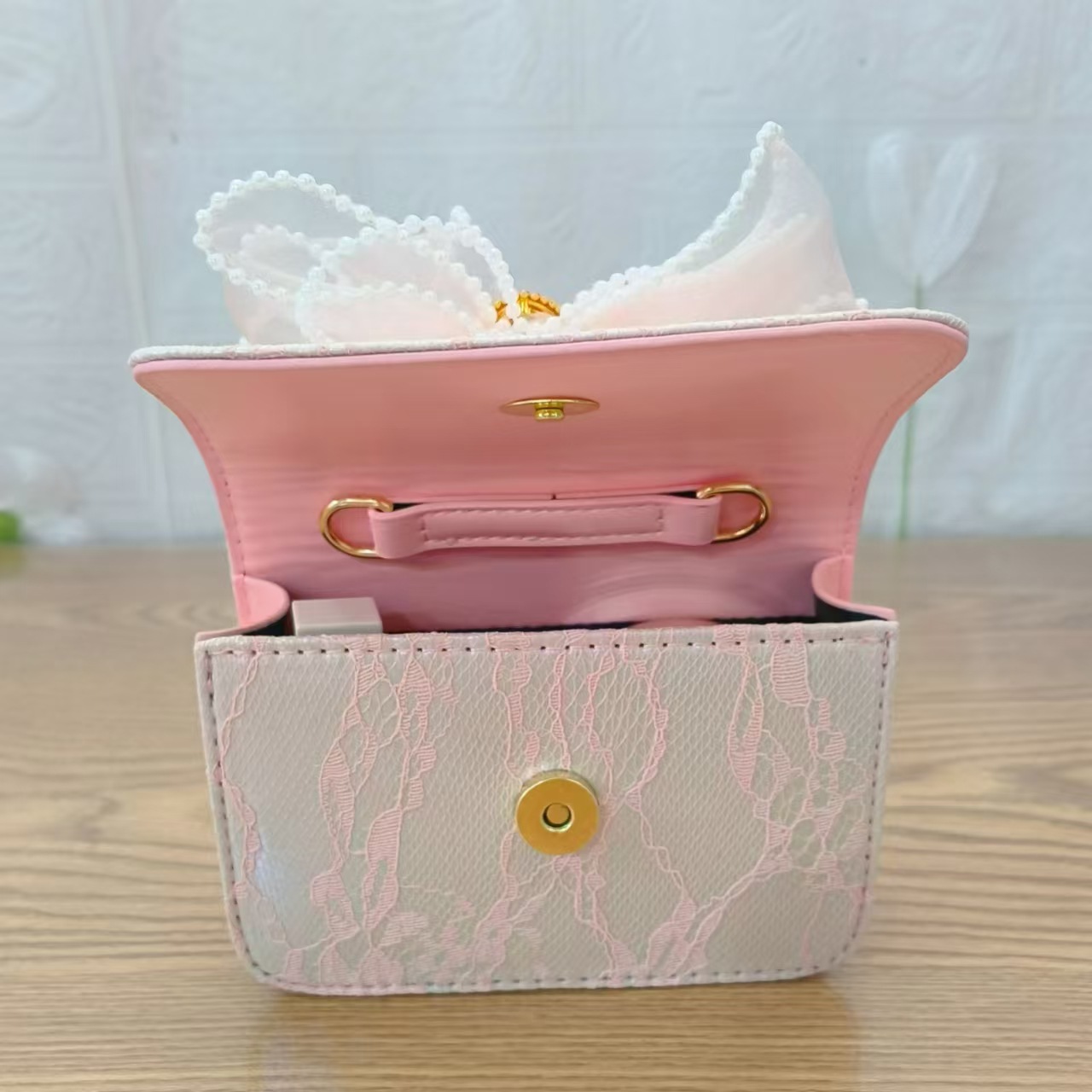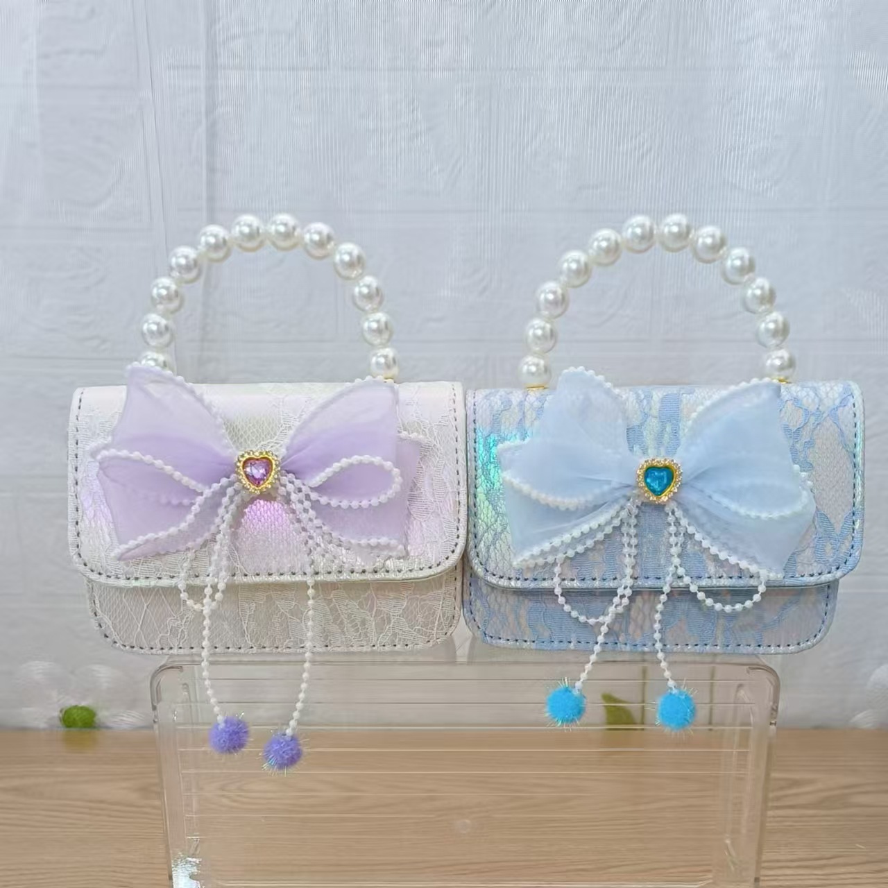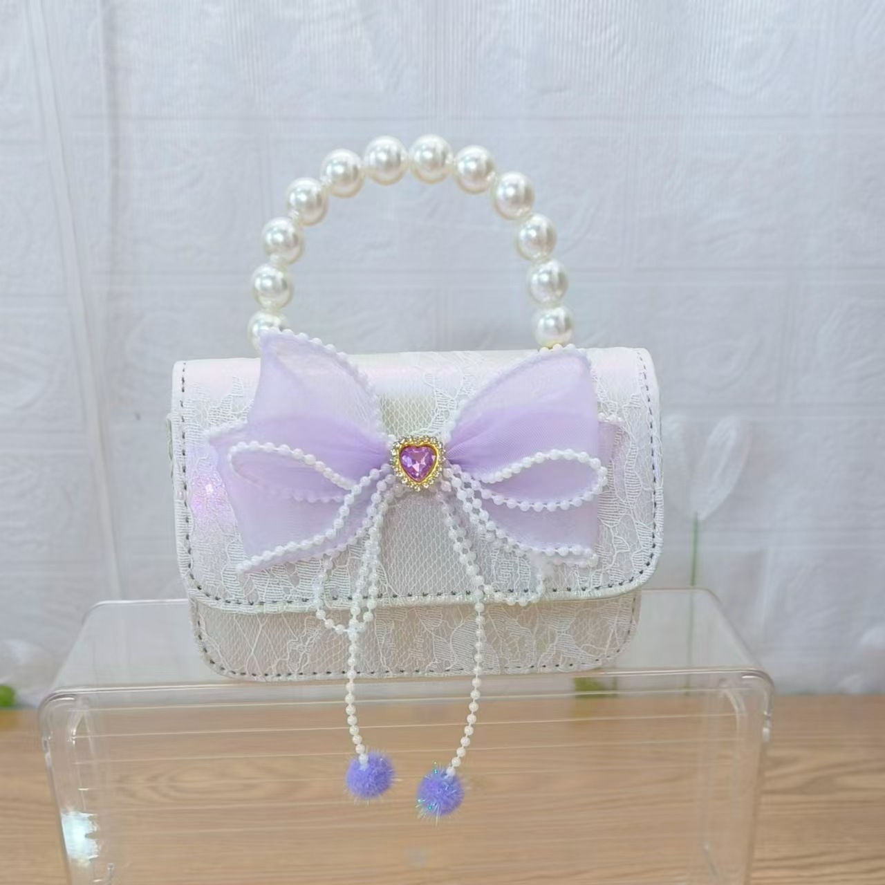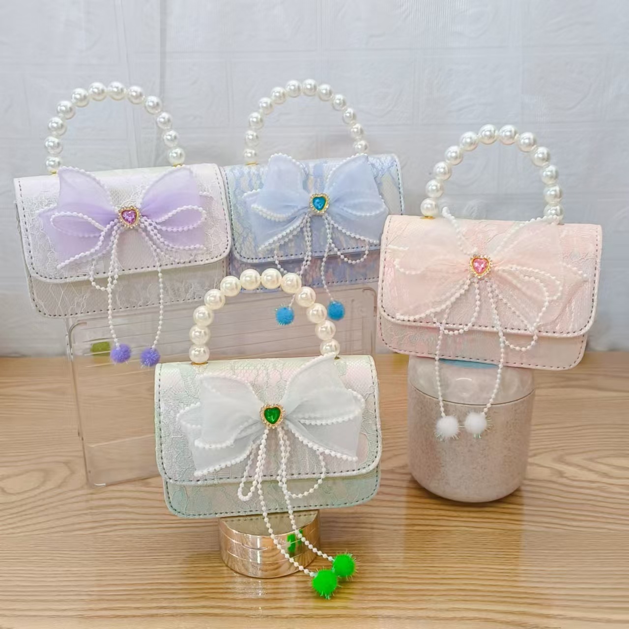 Bolsa de arco princesa bolso de perlas bolso de mano cadena bolso de cinturón pequeño viento bolso de niñas bolso de regalo del día de los niños bolso pequeño