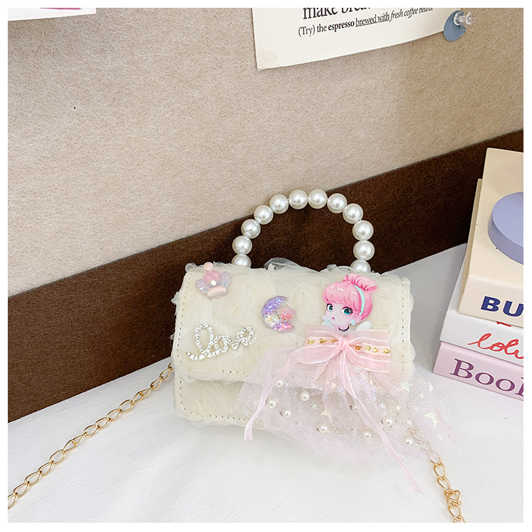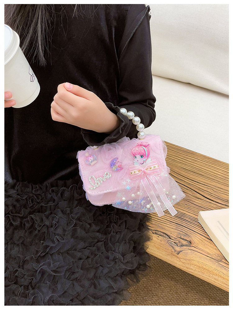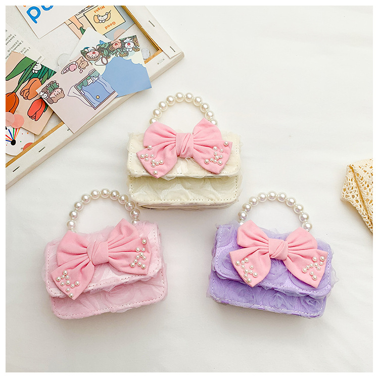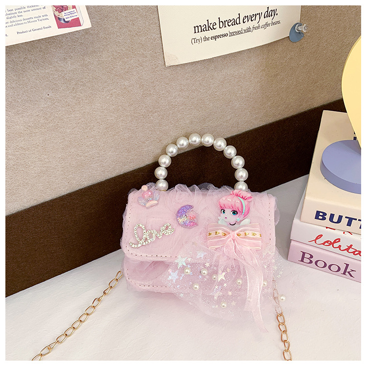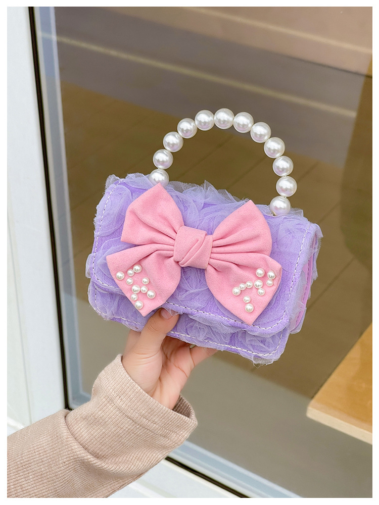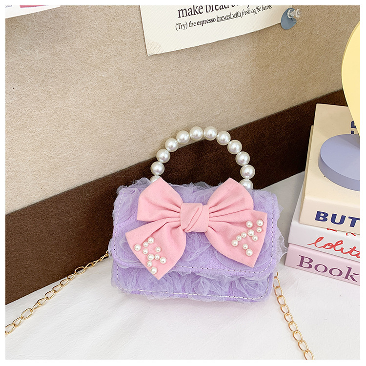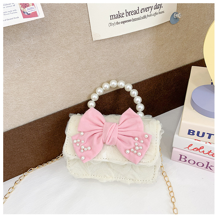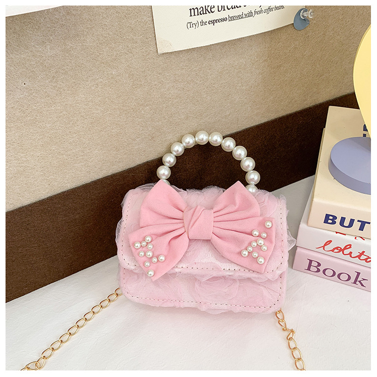 Dulce princesa bolso de hombro de perlas portátiles 2025 mini bolso de cadena de arco para niños