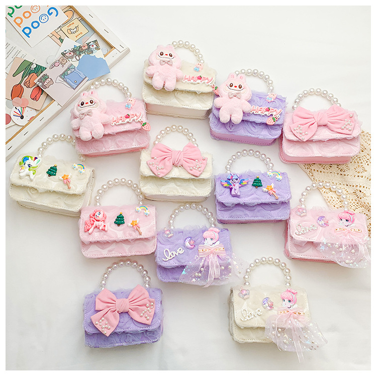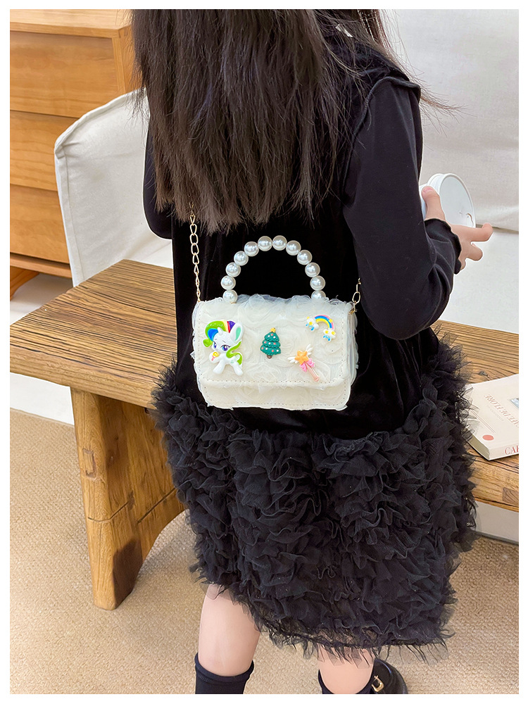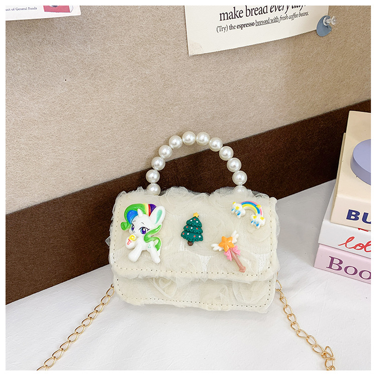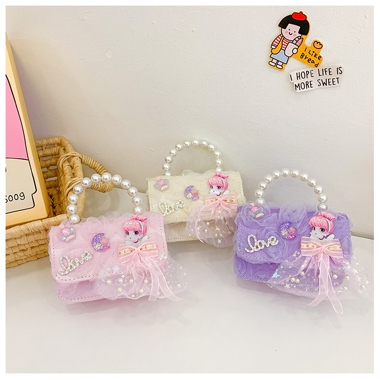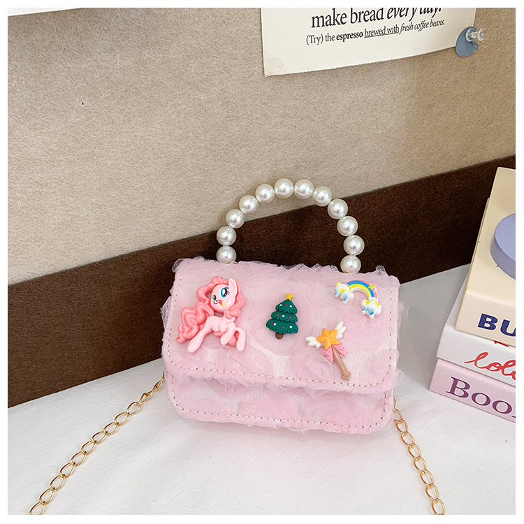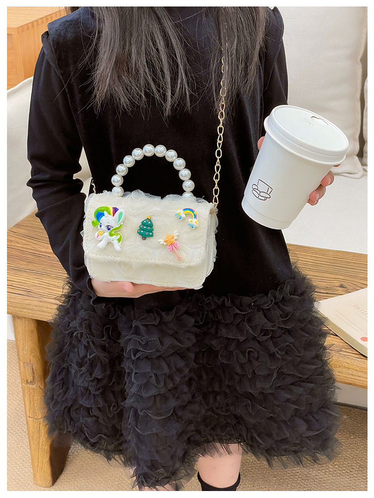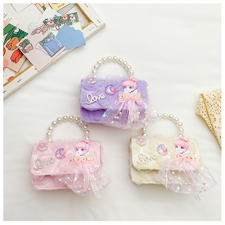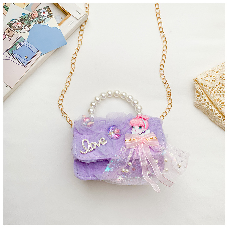 Dulce princesa bolso de hombro de perlas portátiles 2025 mini bolso de cadena de arco para niños