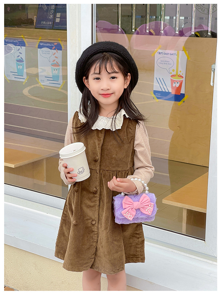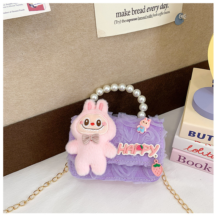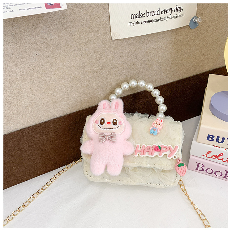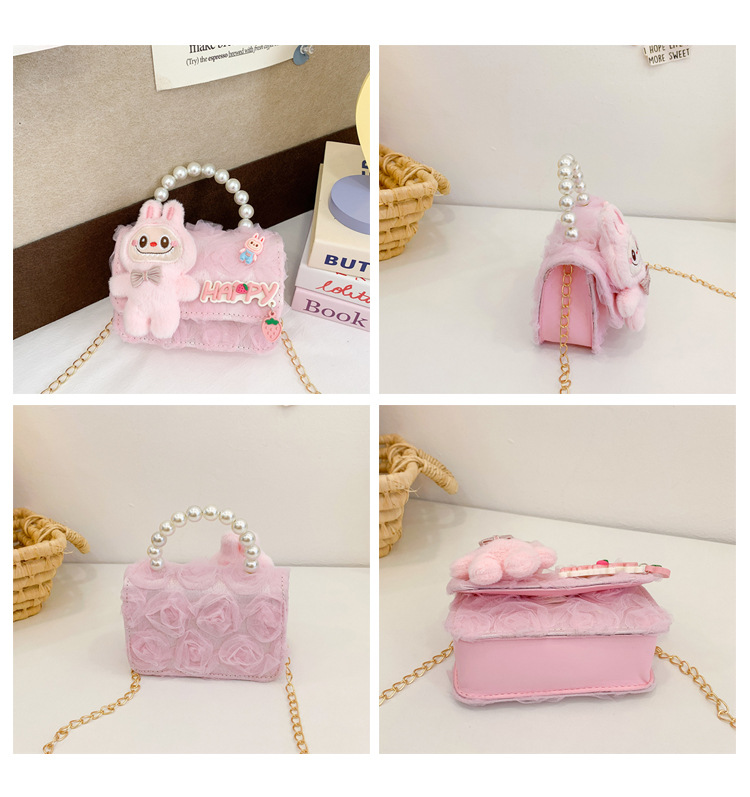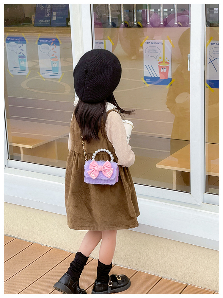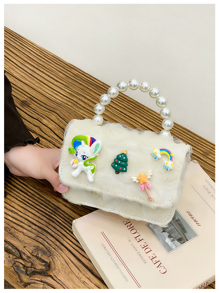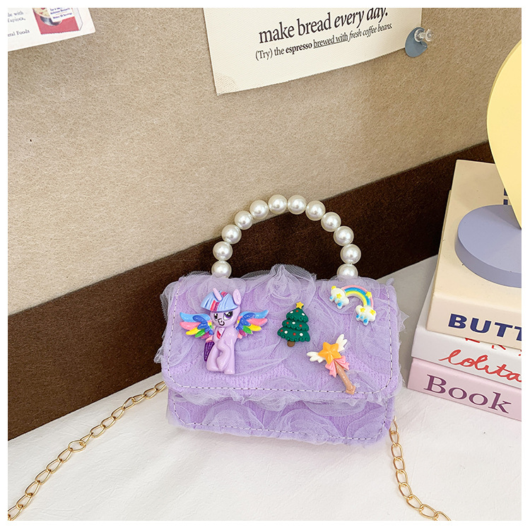 Dulce princesa bolso de hombro de perlas portátiles 2025 mini bolso de cadena de arco para niños