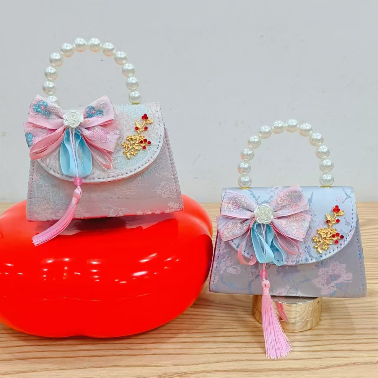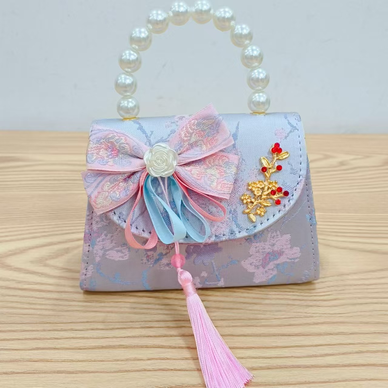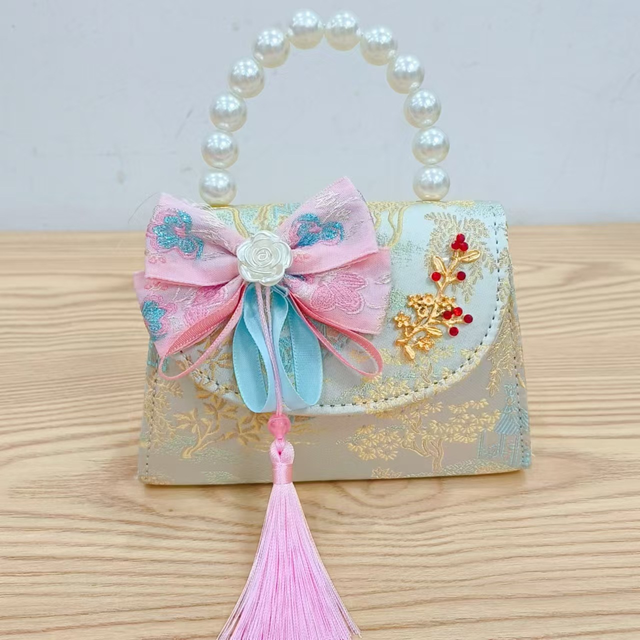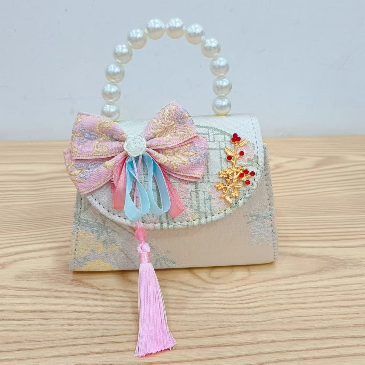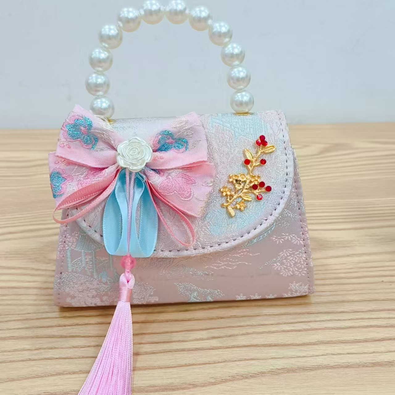 Niños pequeños bolsos de hombro de viento de fragancia de alta calidad exquisita niña antigua bolso de cambio princesa perla bolso de mano