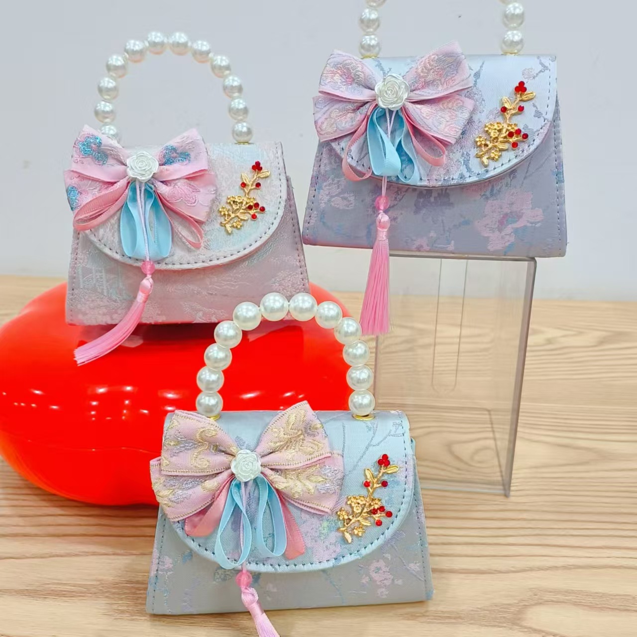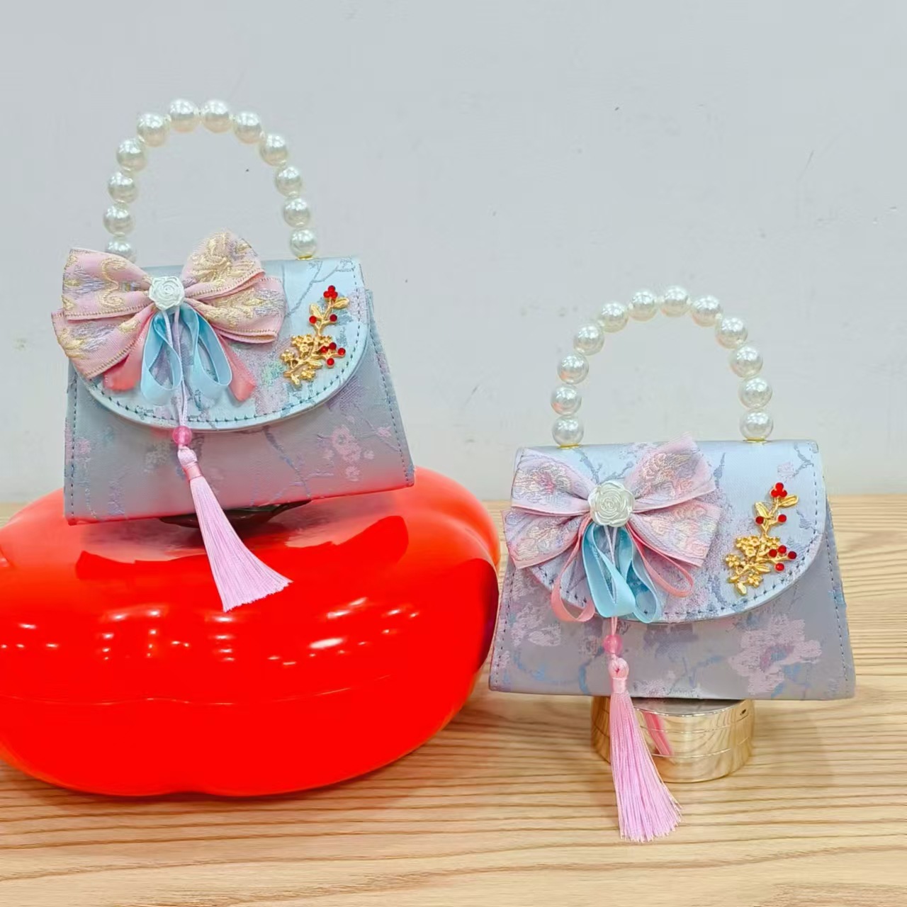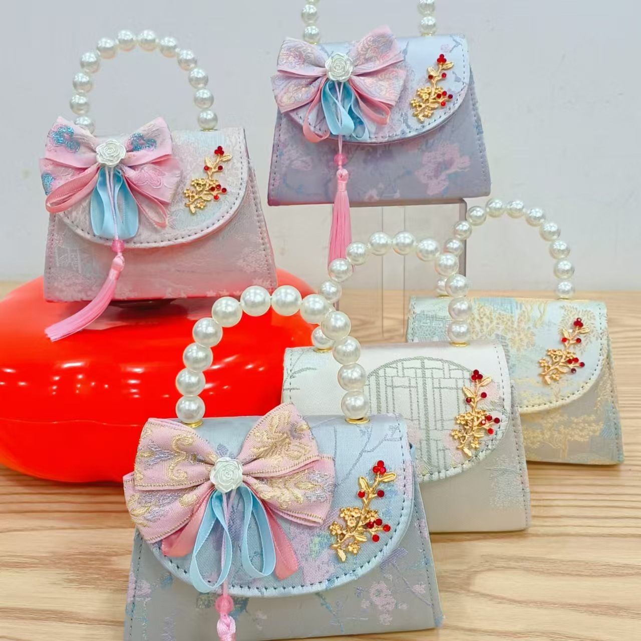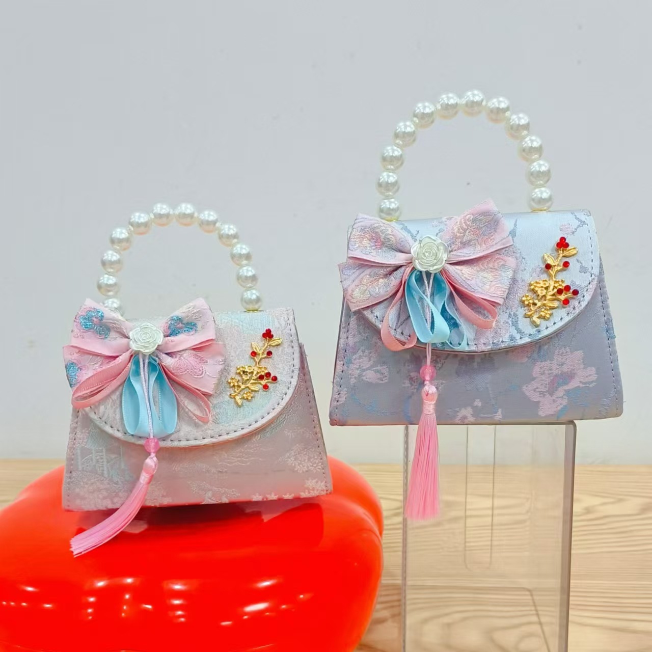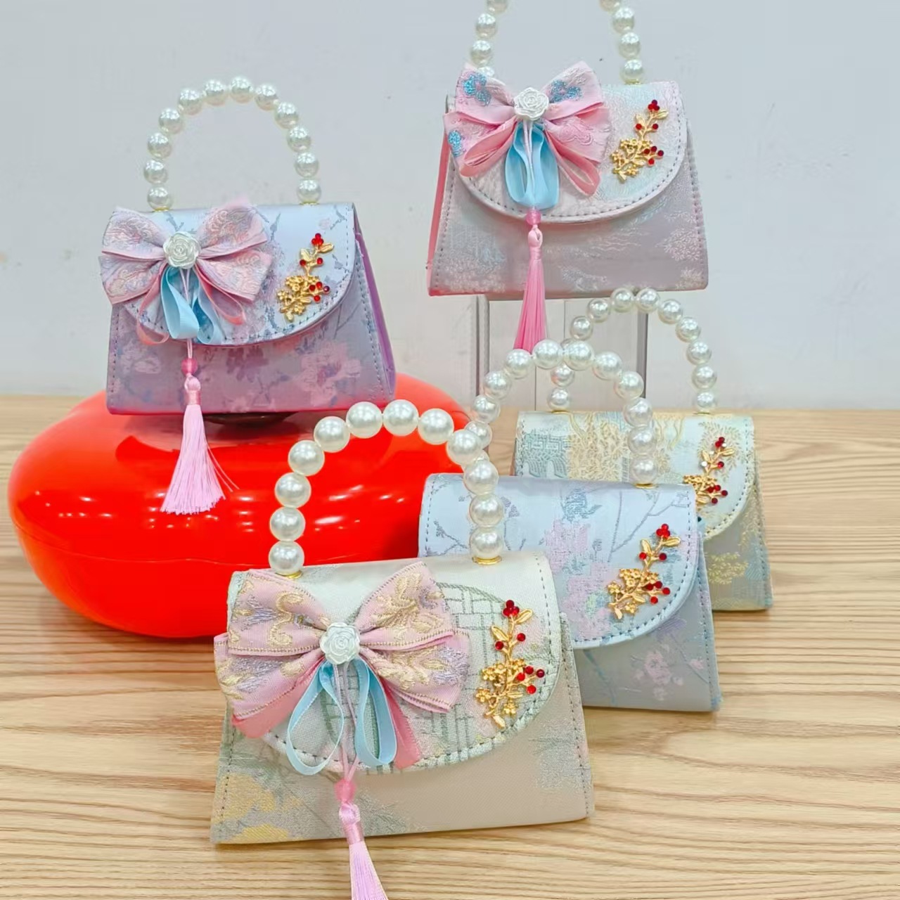 Niños pequeños bolsos de hombro de viento de fragancia de alta calidad exquisita niña antigua bolso de cambio princesa perla bolso de mano