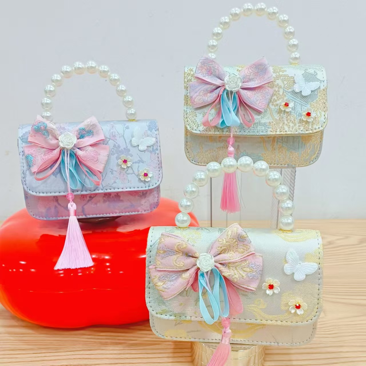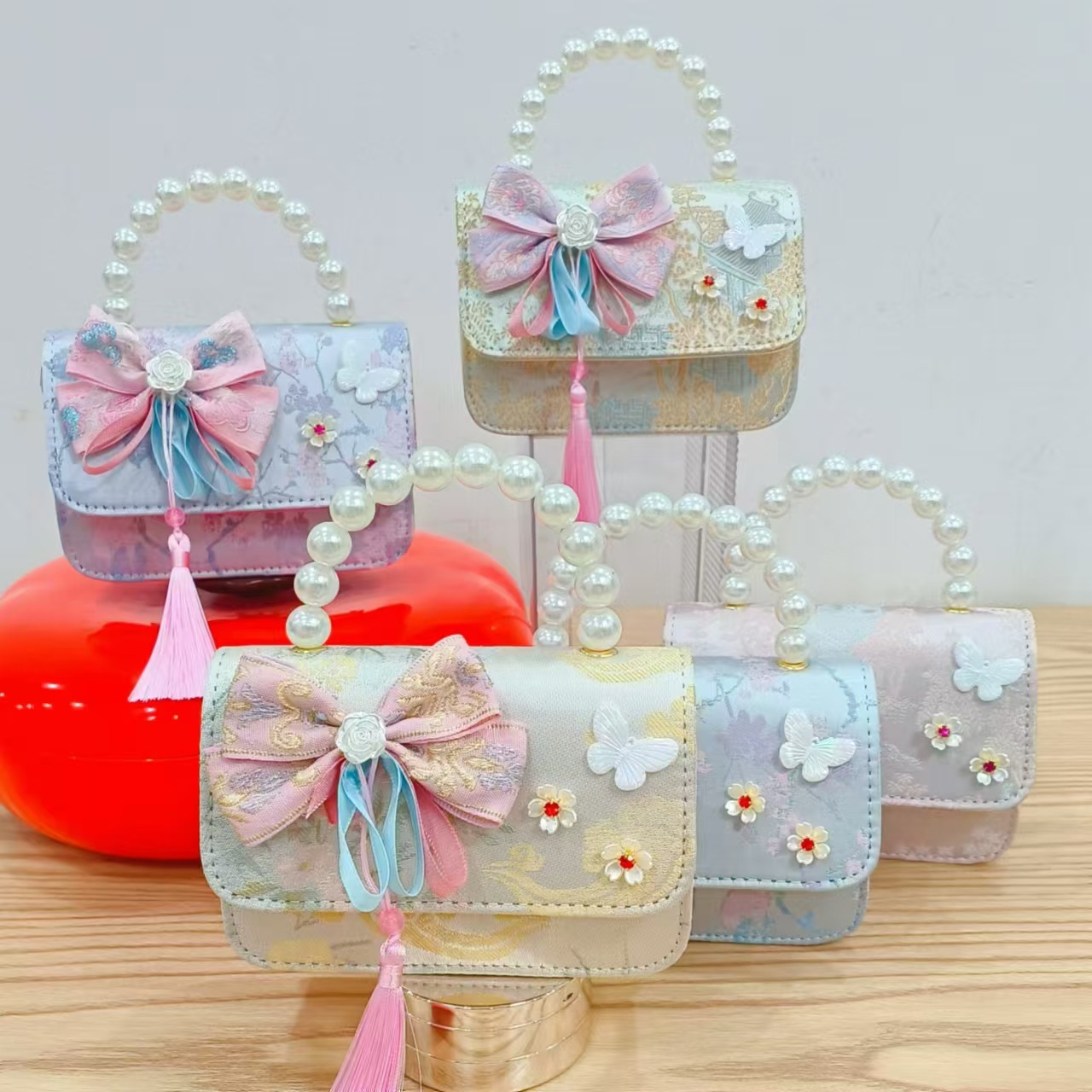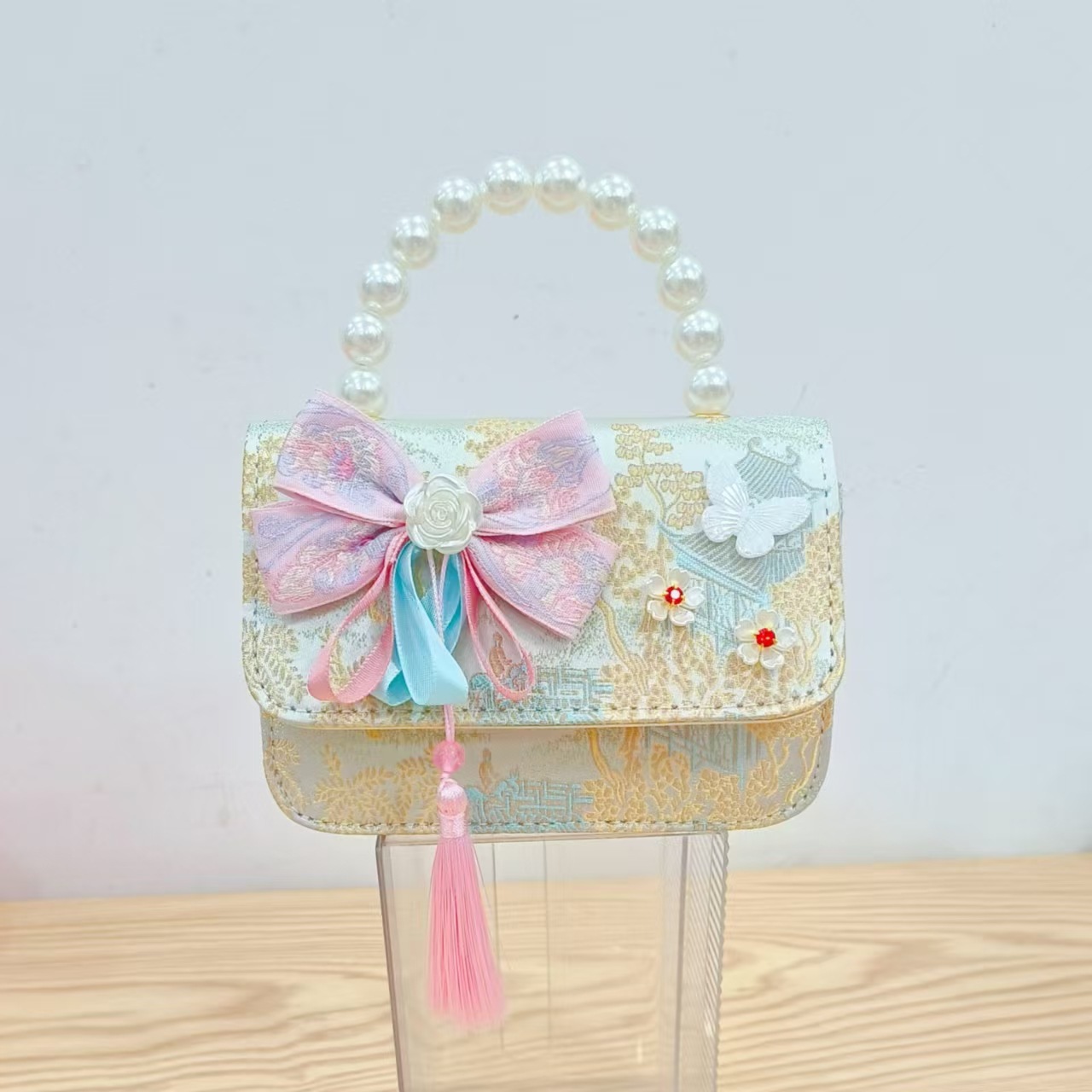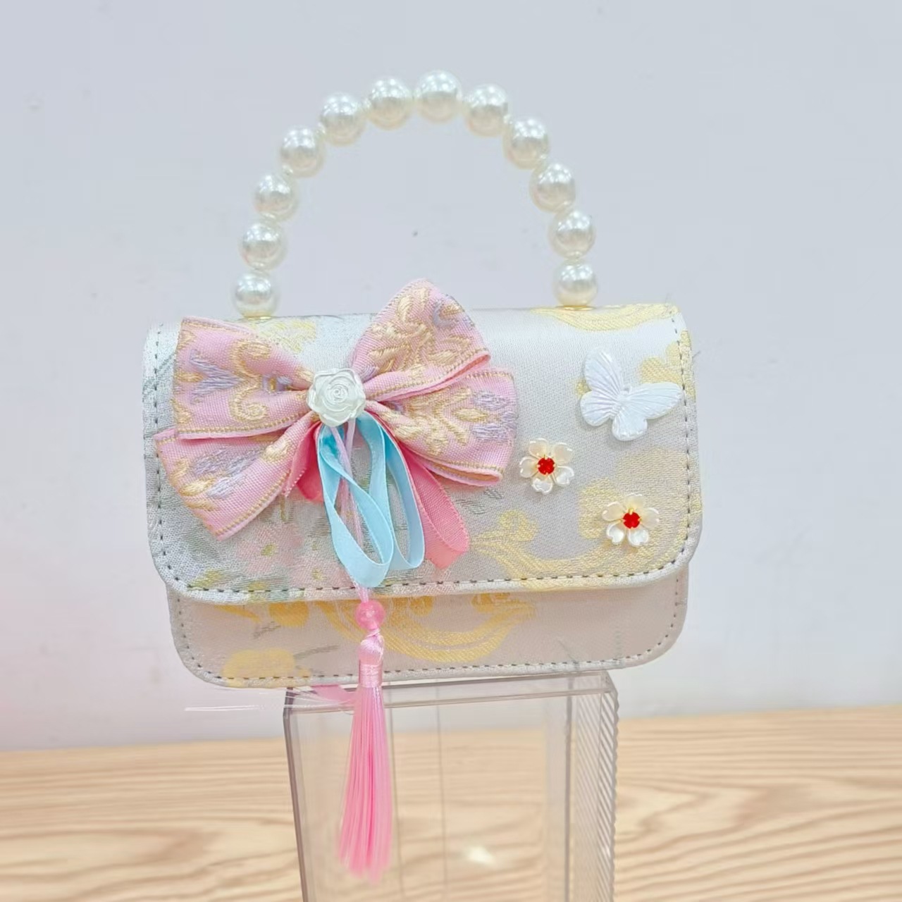 Guofeng princesa bolso de perlas, bolso de cambio de chicas, bolso de regalo para niños, bolso de accesorios de ropa china