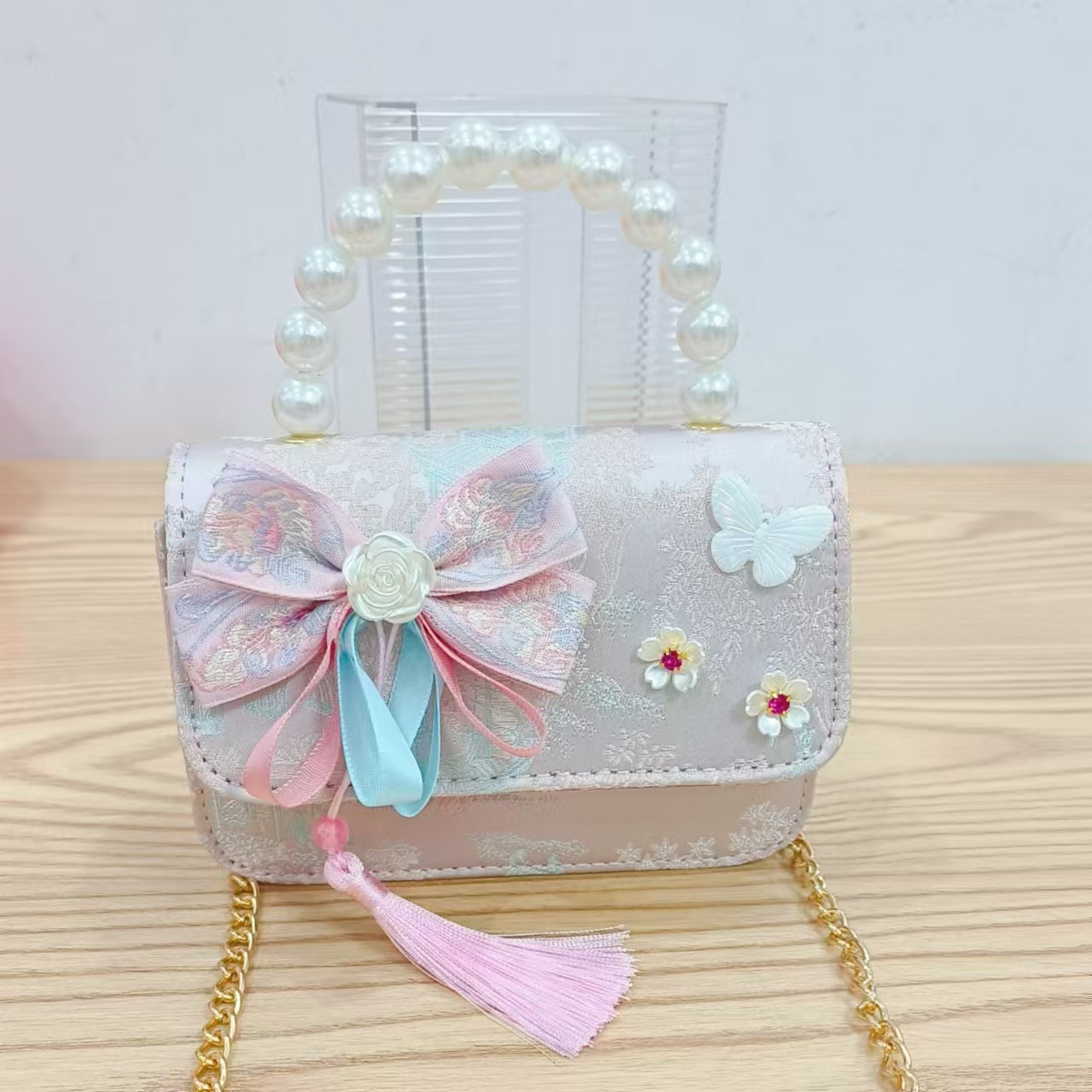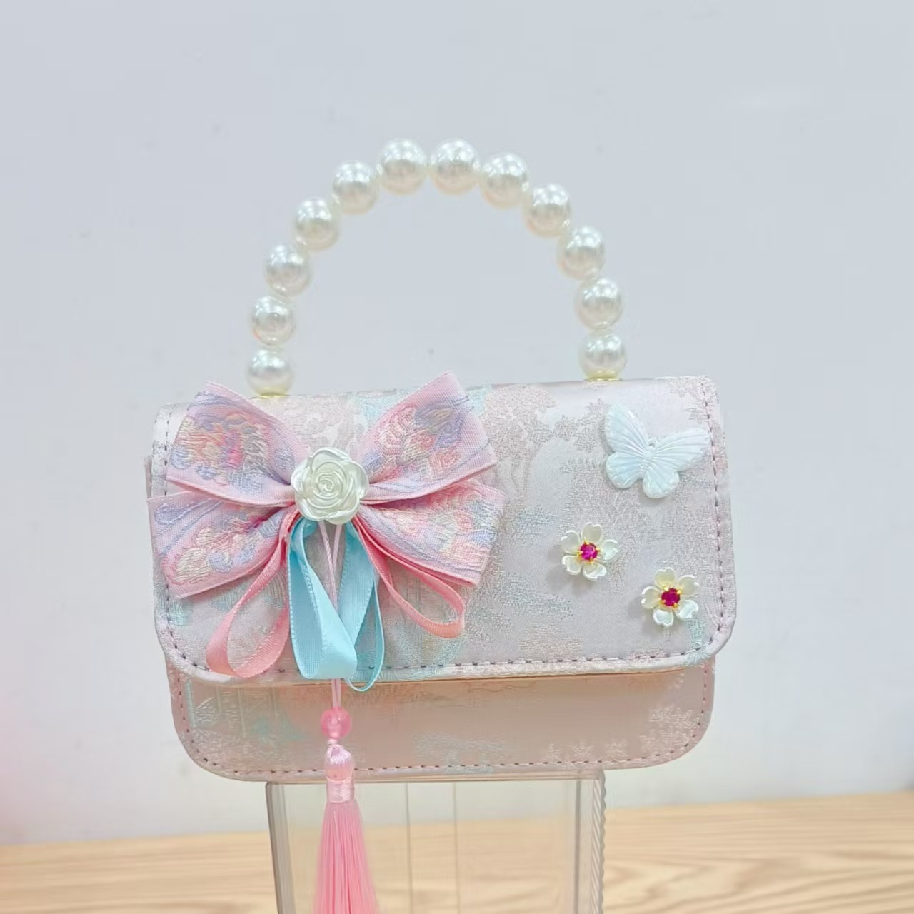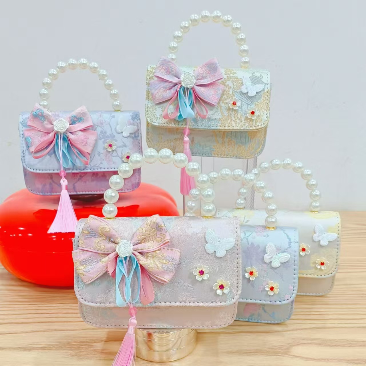 Guofeng princesa bolso de perlas, bolso de cambio de chicas, bolso de regalo para niños, bolso de accesorios de ropa china