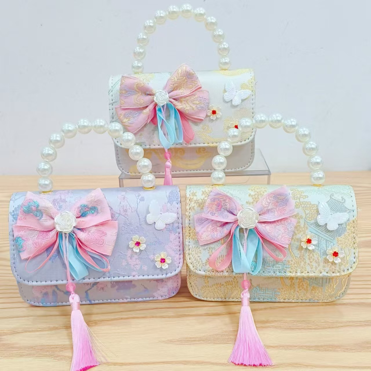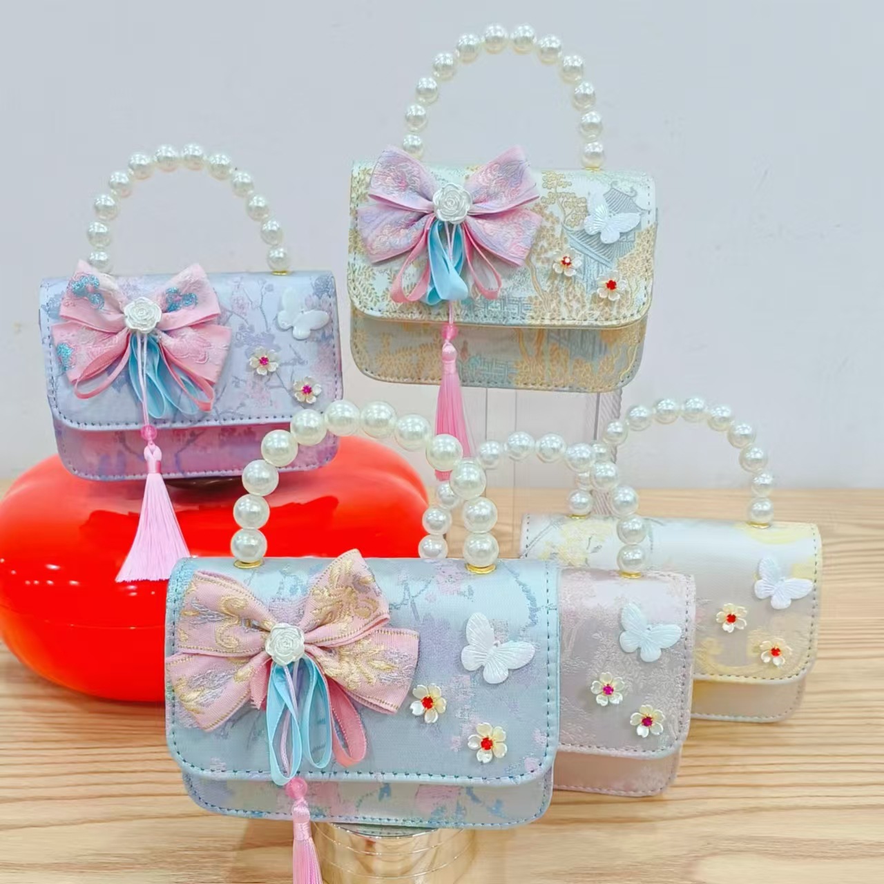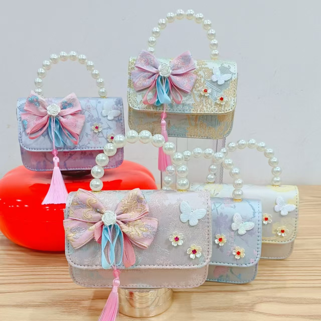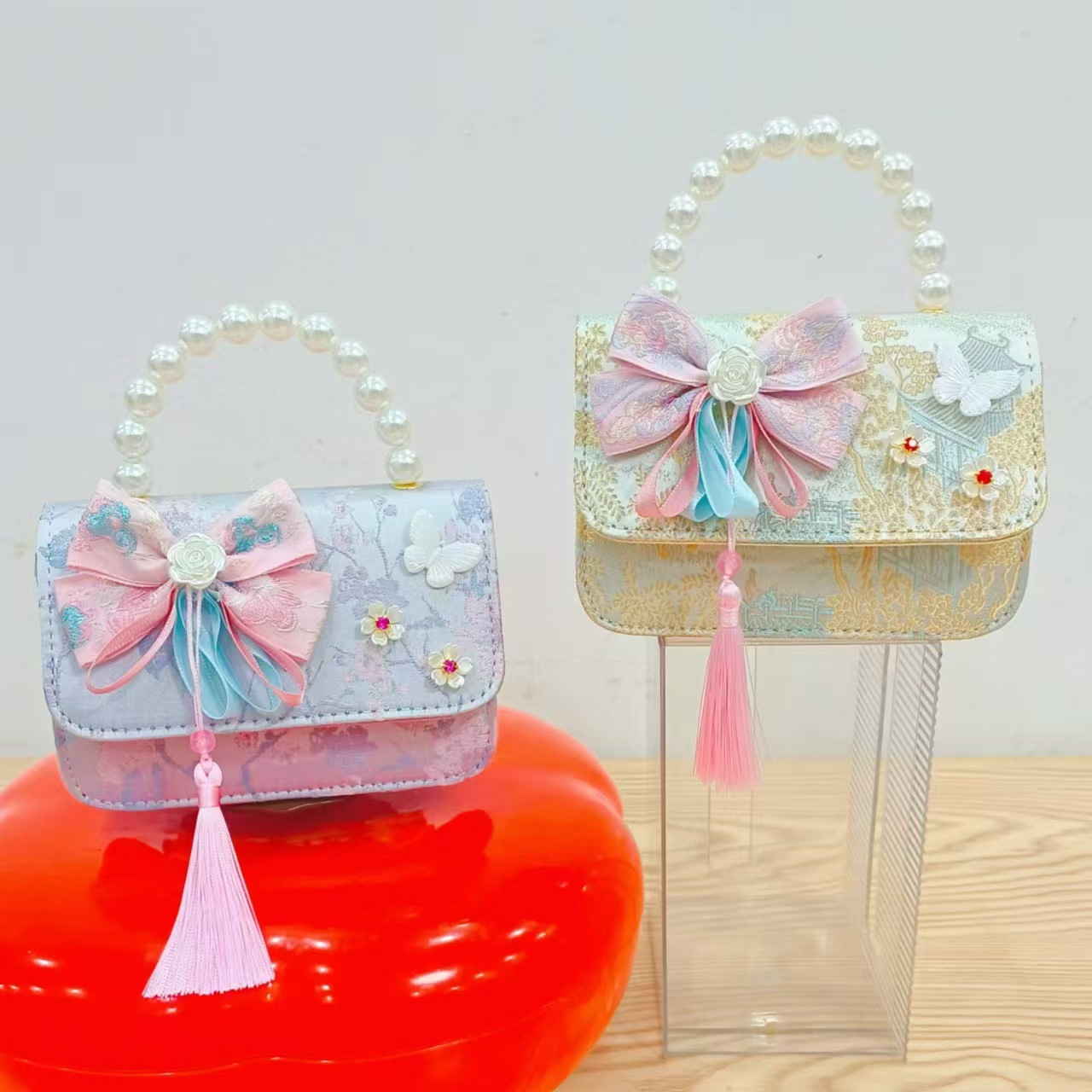 Guofeng princesa bolso de perlas, bolso de cambio de chicas, bolso de regalo para niños, bolso de accesorios de ropa china