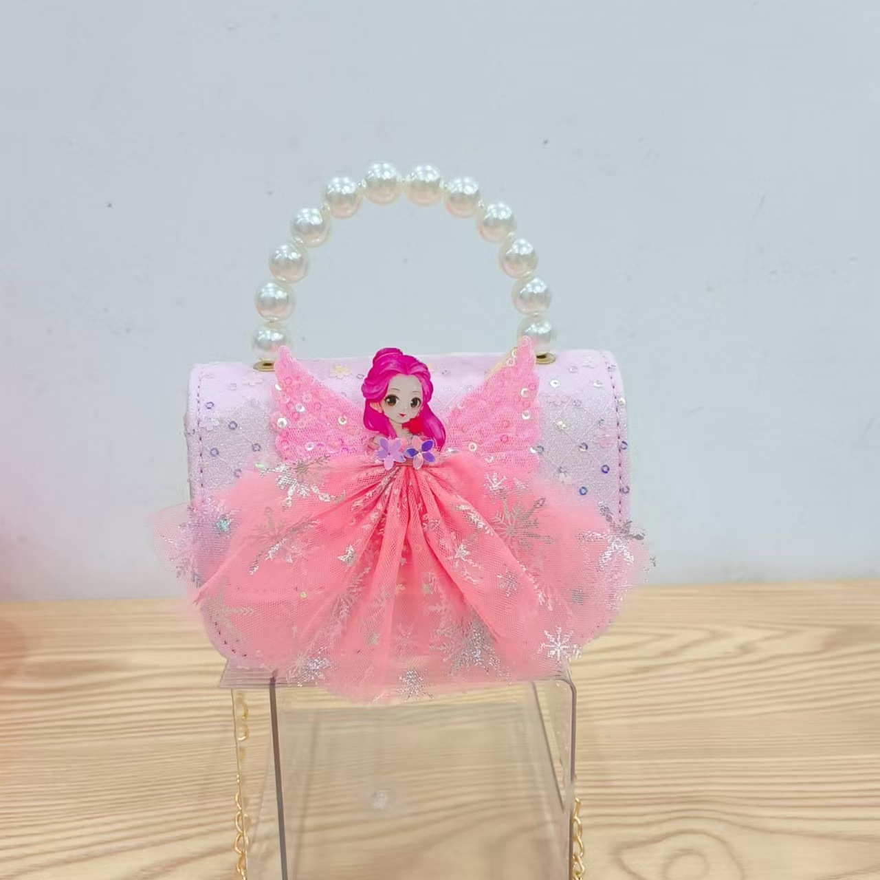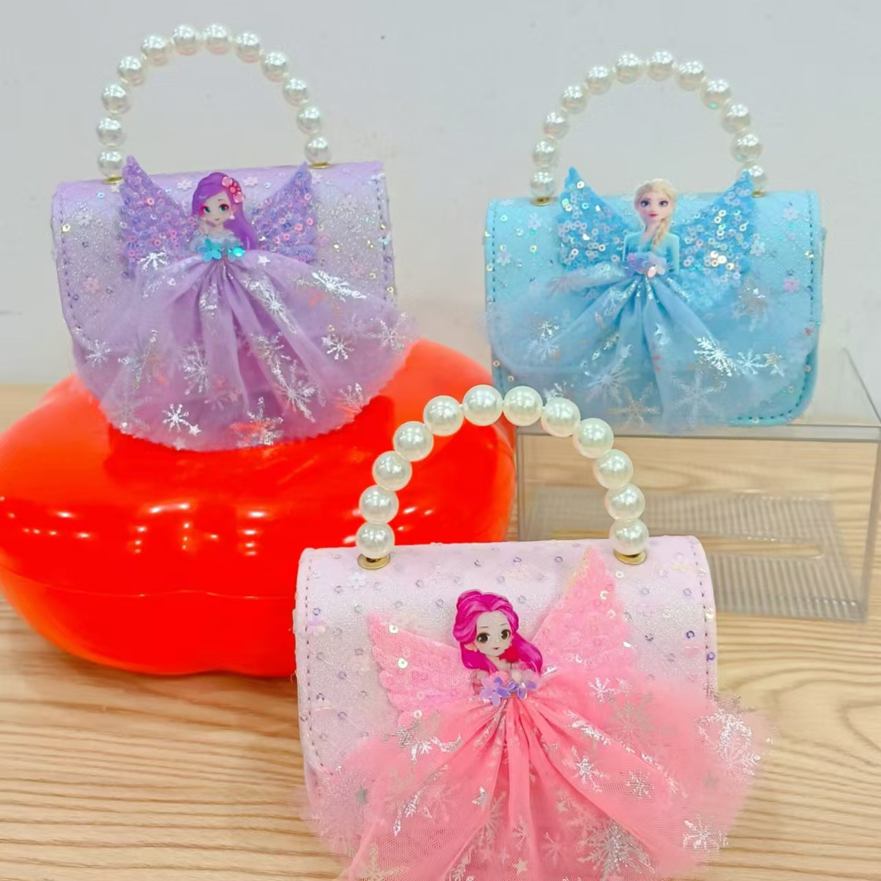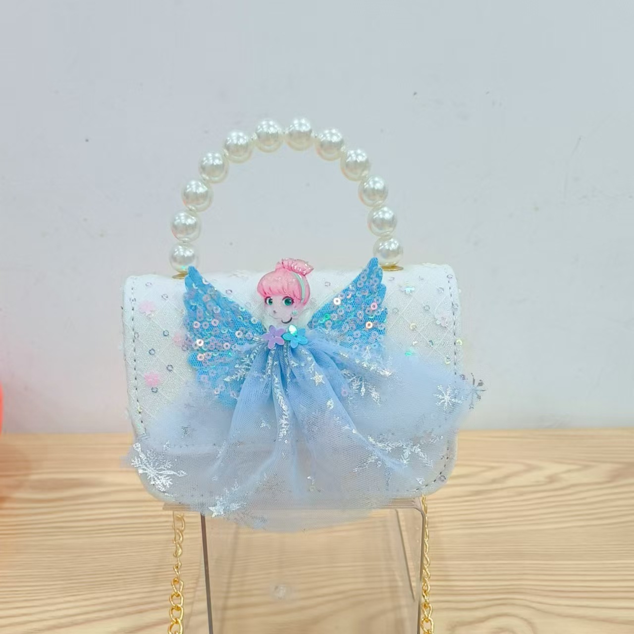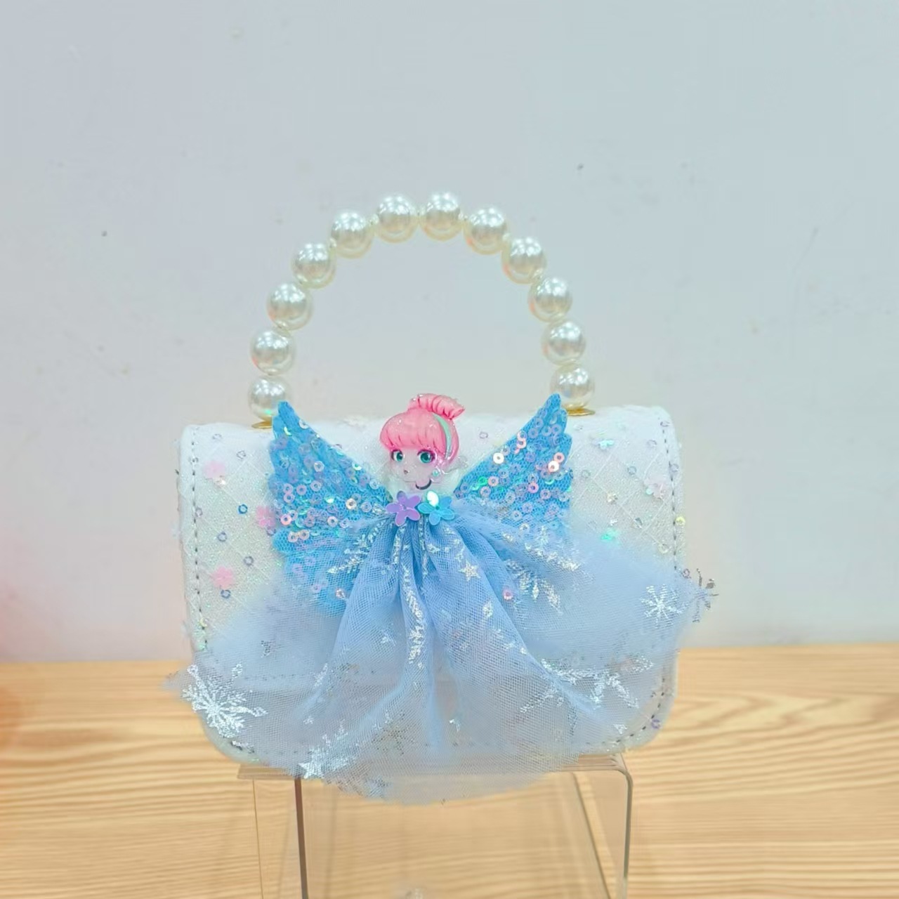 2024 nuevo estilo malla arco bolso para niños pequeño fragancia moda perla monedero princesa diagonal bolso
