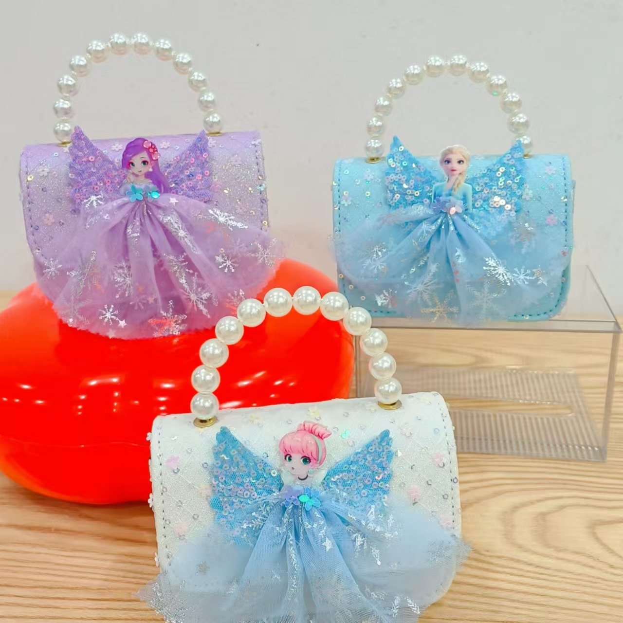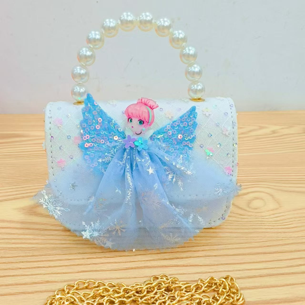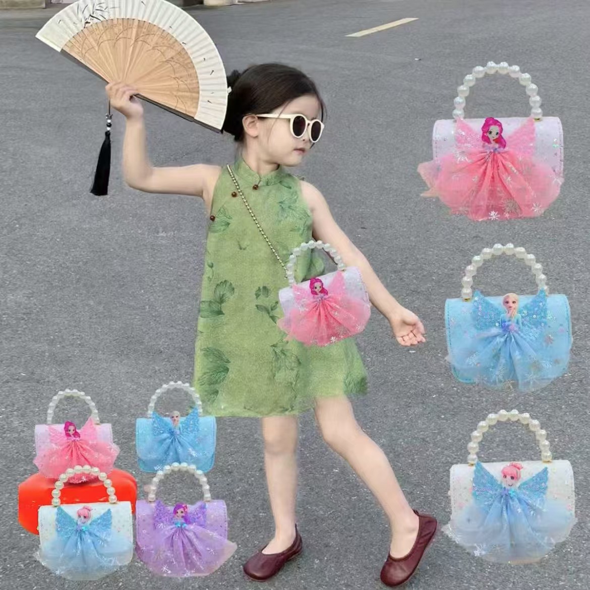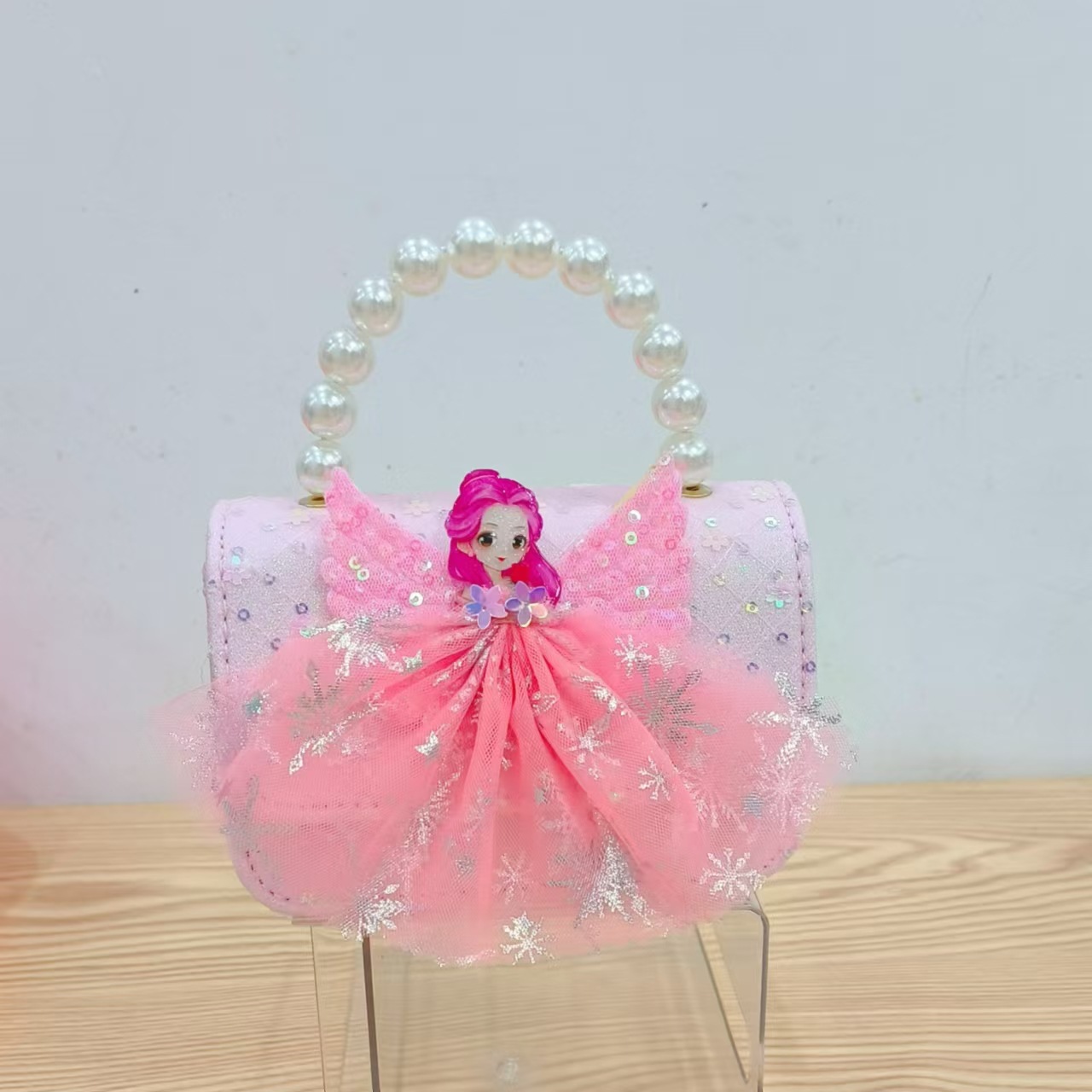 2024 nuevo estilo malla arco bolso para niños pequeño fragancia moda perla monedero princesa diagonal bolso