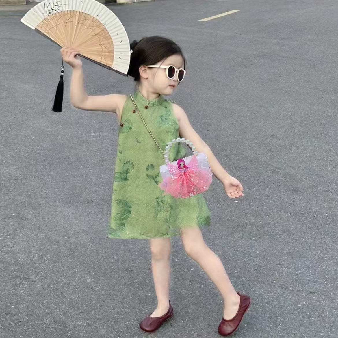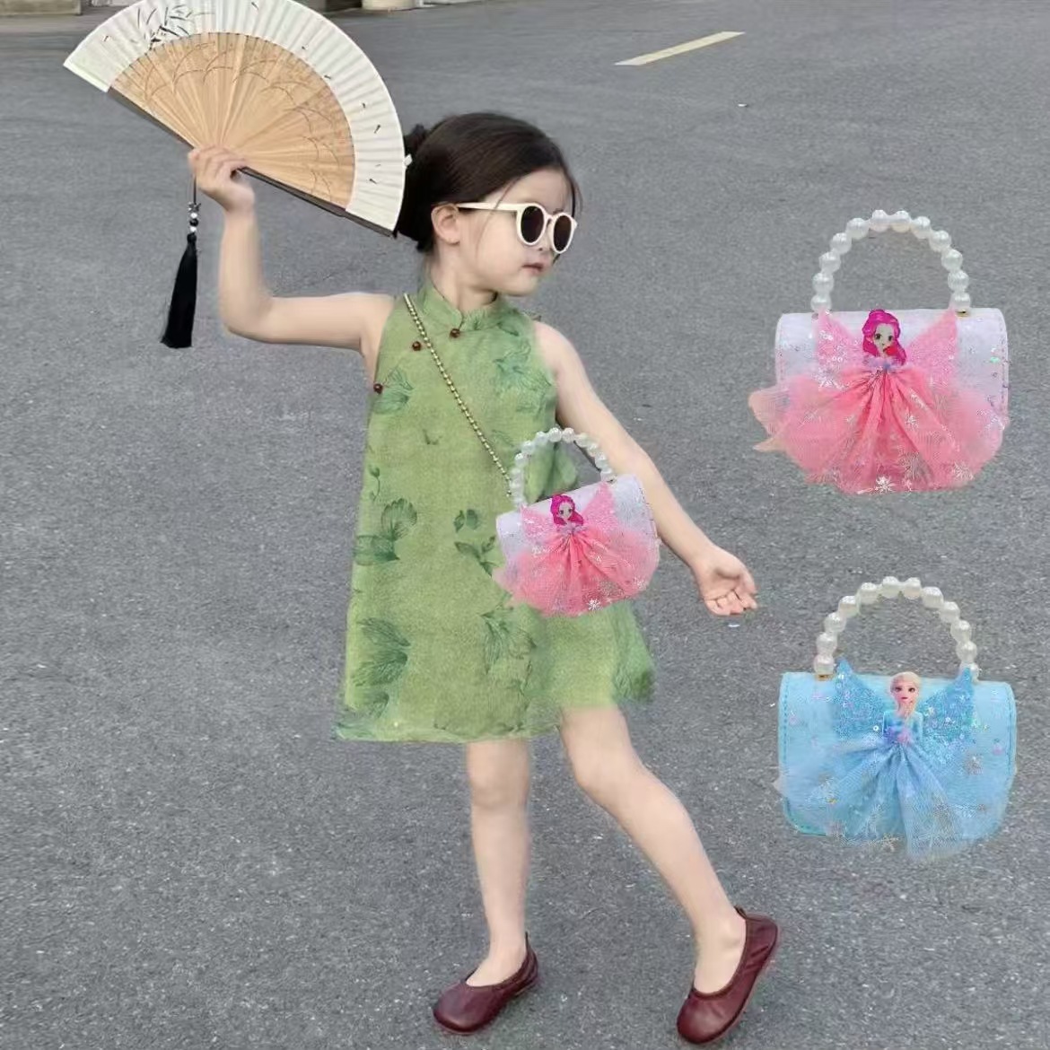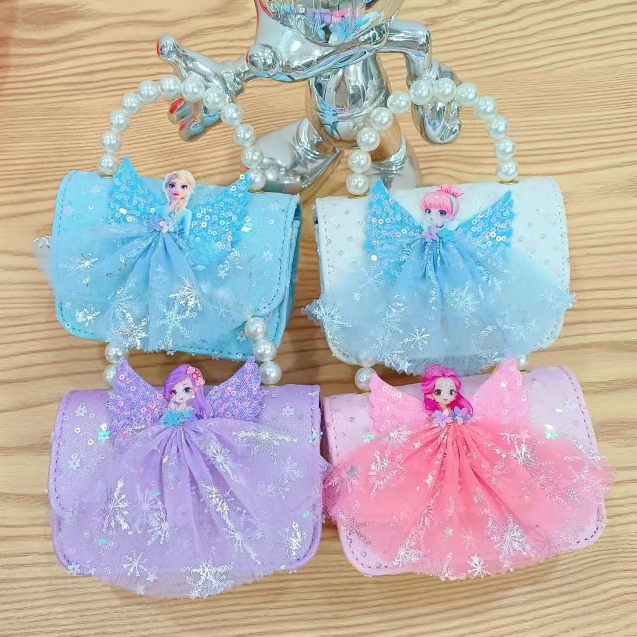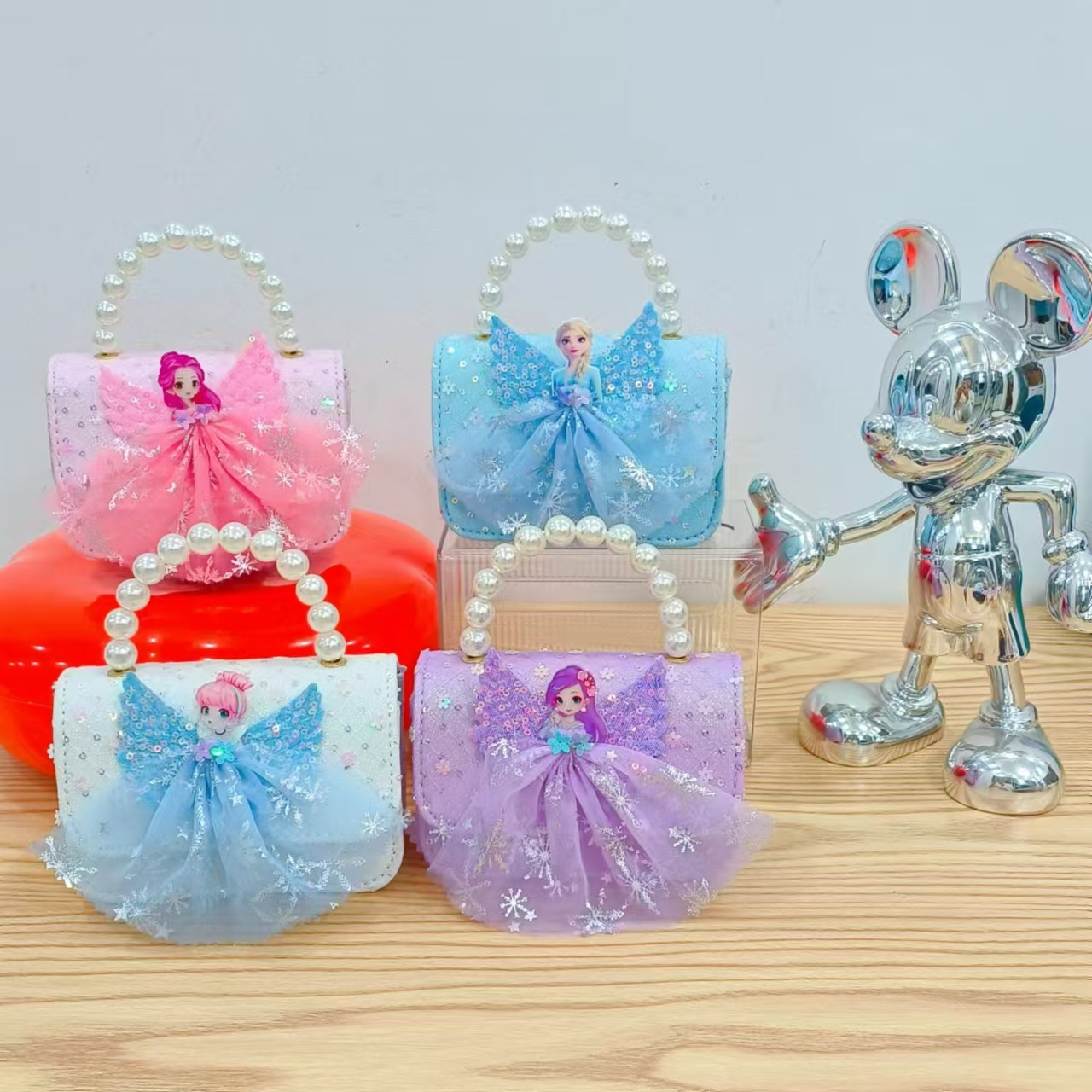 2024 nuevo estilo malla arco bolso para niños pequeño fragancia moda perla monedero princesa diagonal bolso