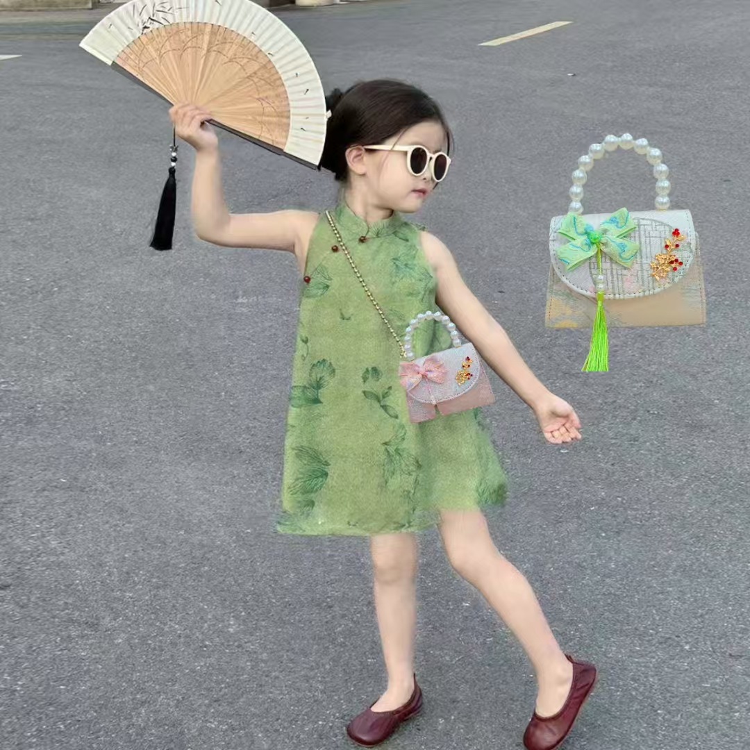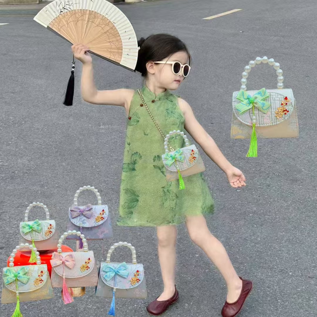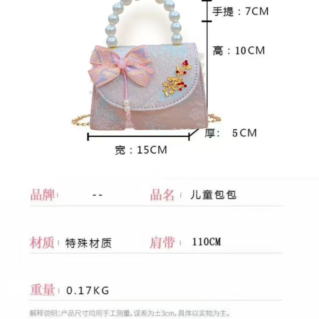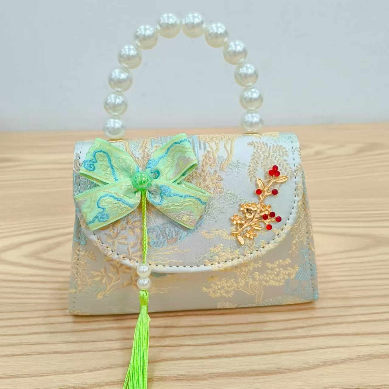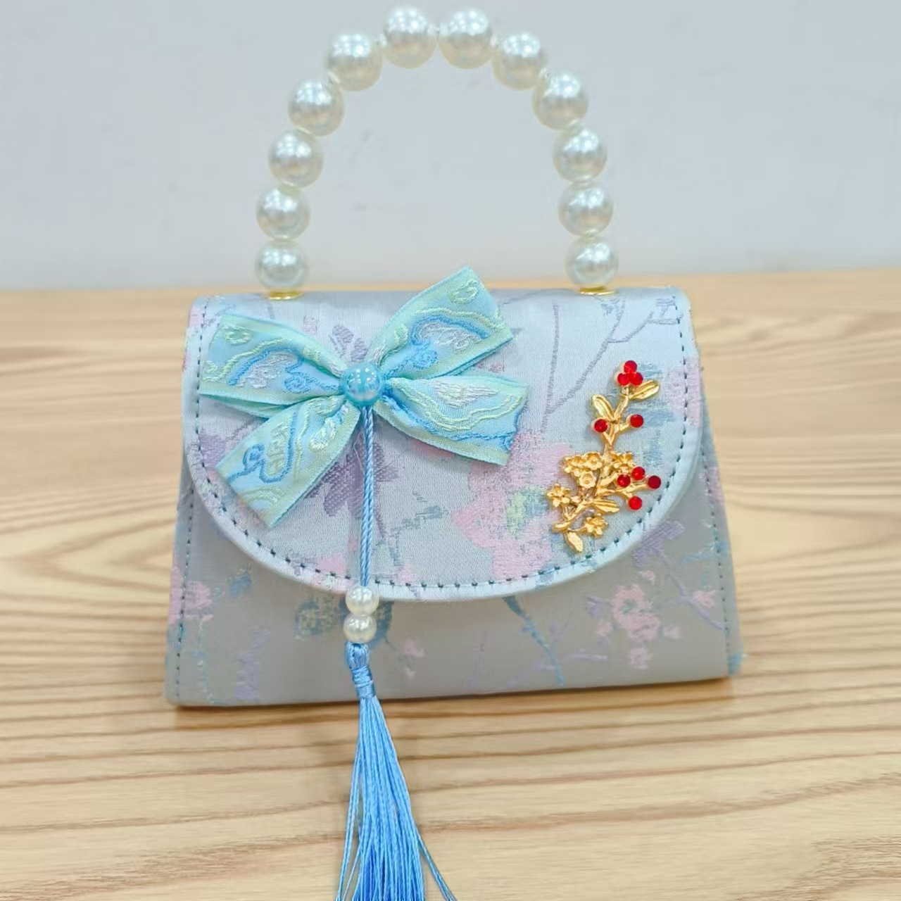 Bolsas de niños arco de estilo chino borda de niña pequeña princesa perla bolsa de cambio de mano al por mayor