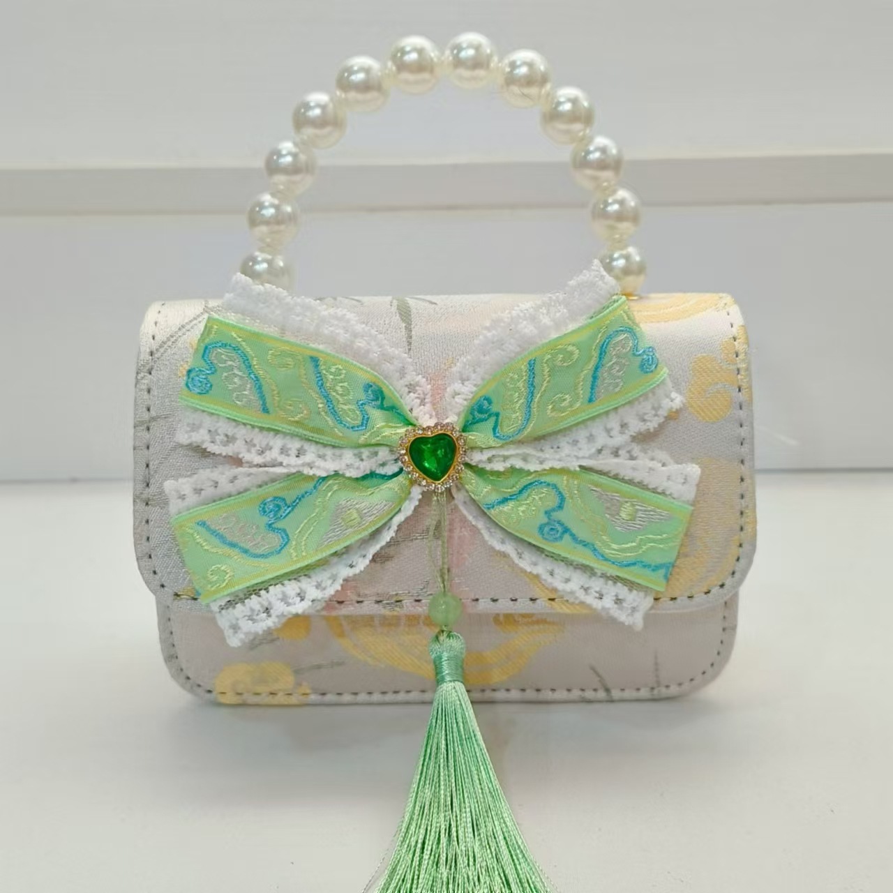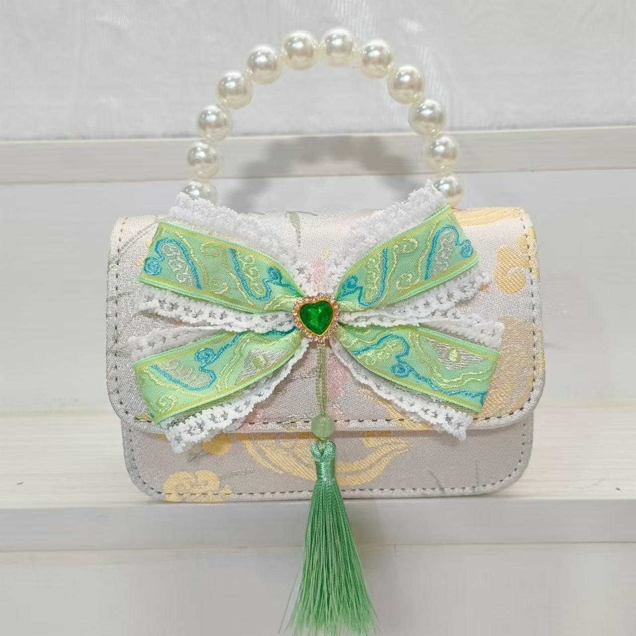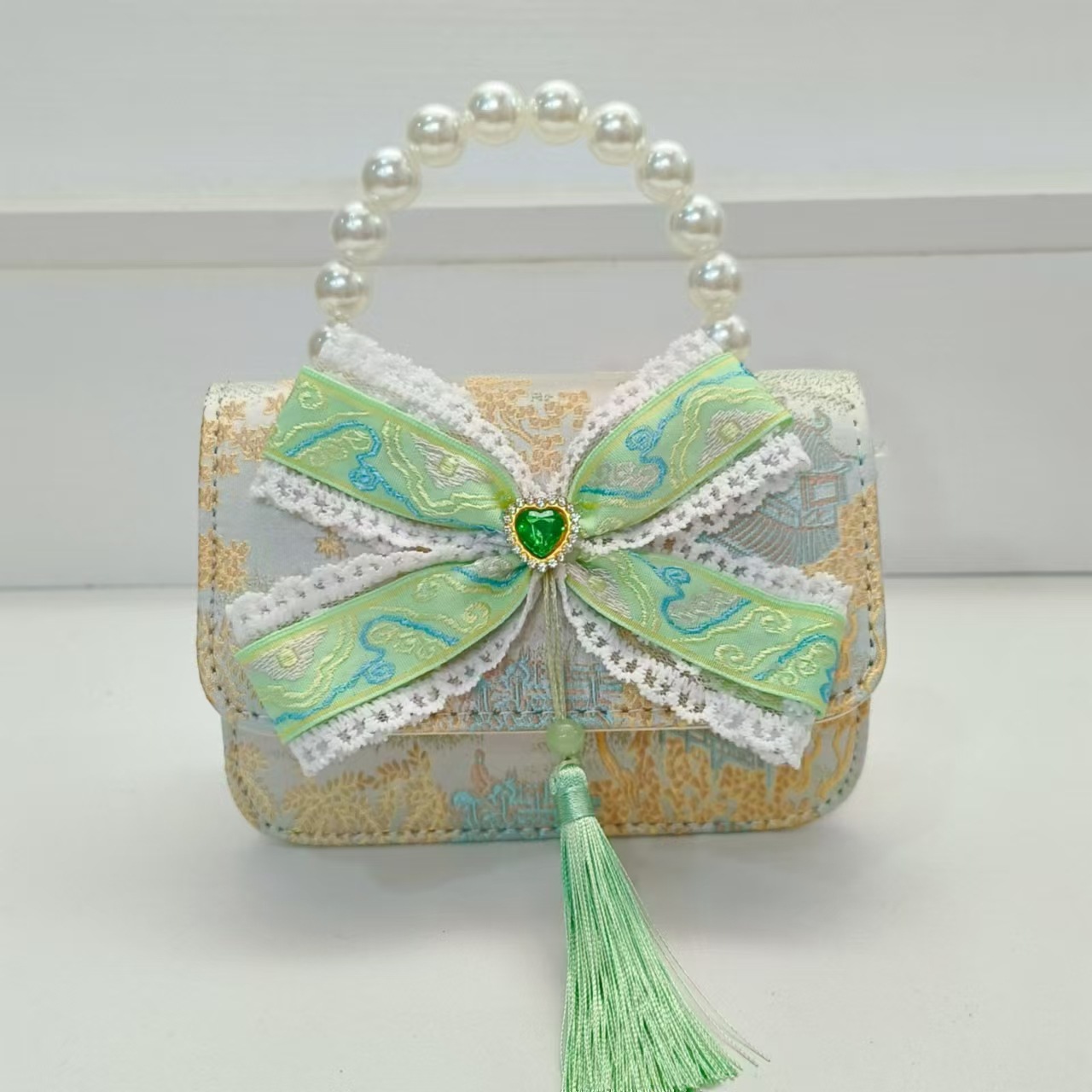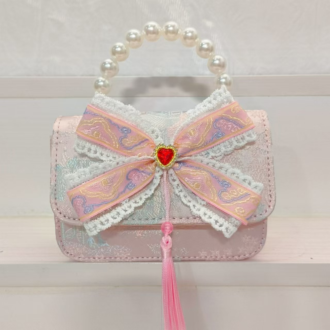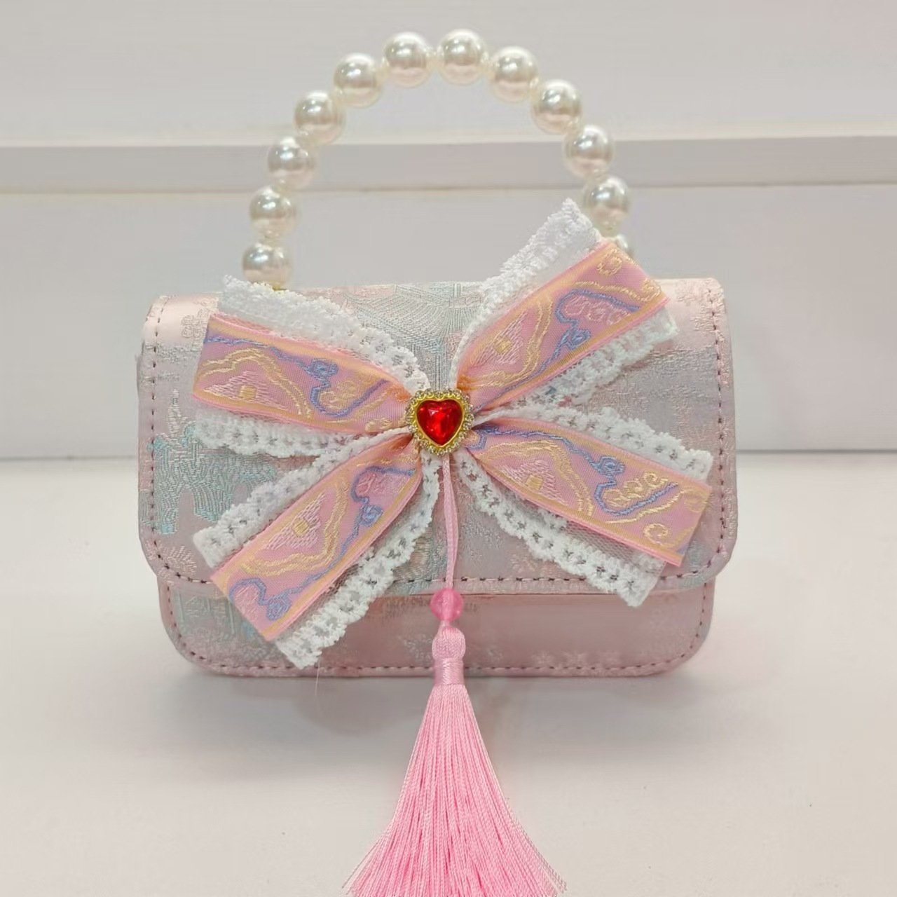 Guofeng arco princesa bolso de perla bolso de hombro bolso de cambio bolso pequeño bolso cuadrado bolso accesorios de ropa de niñas