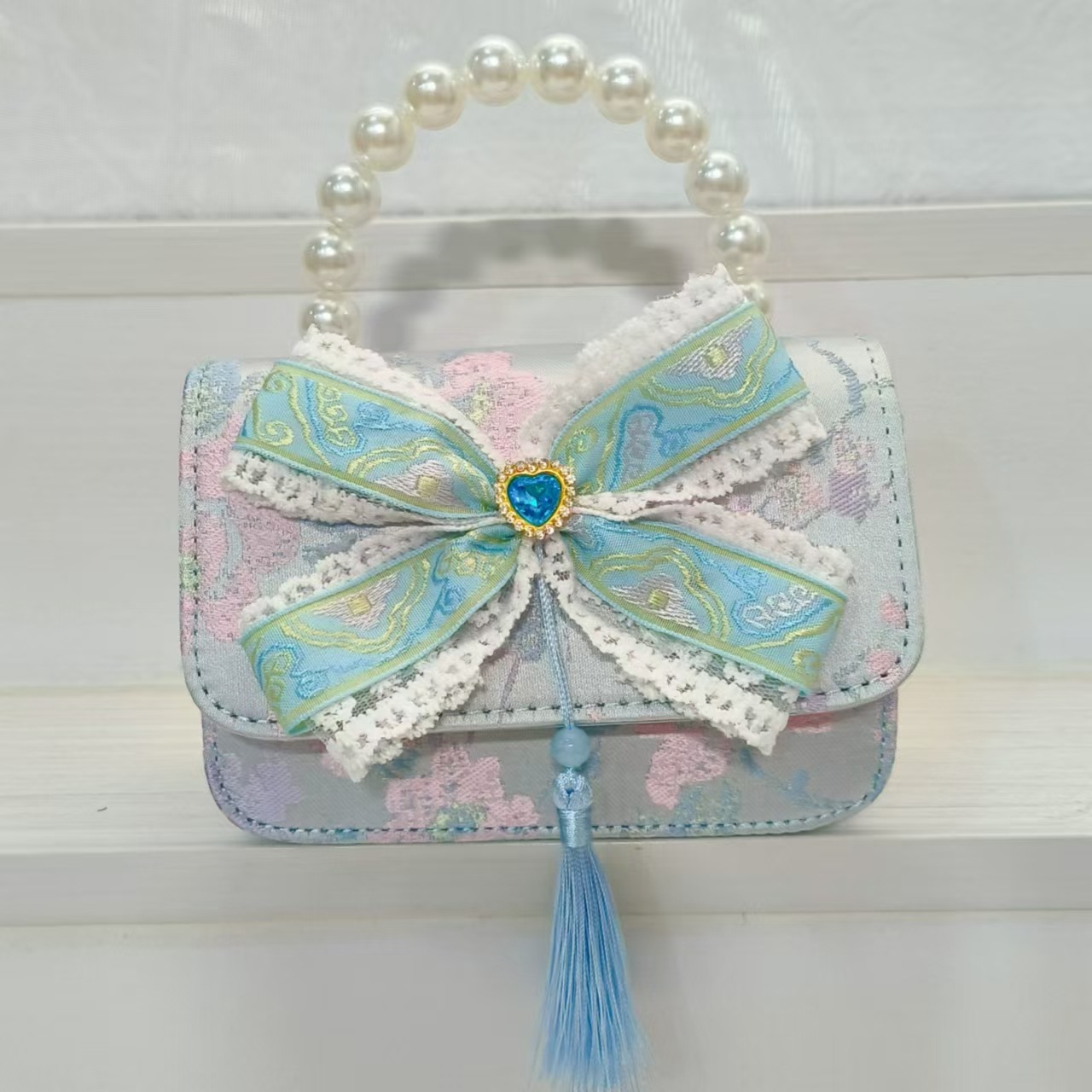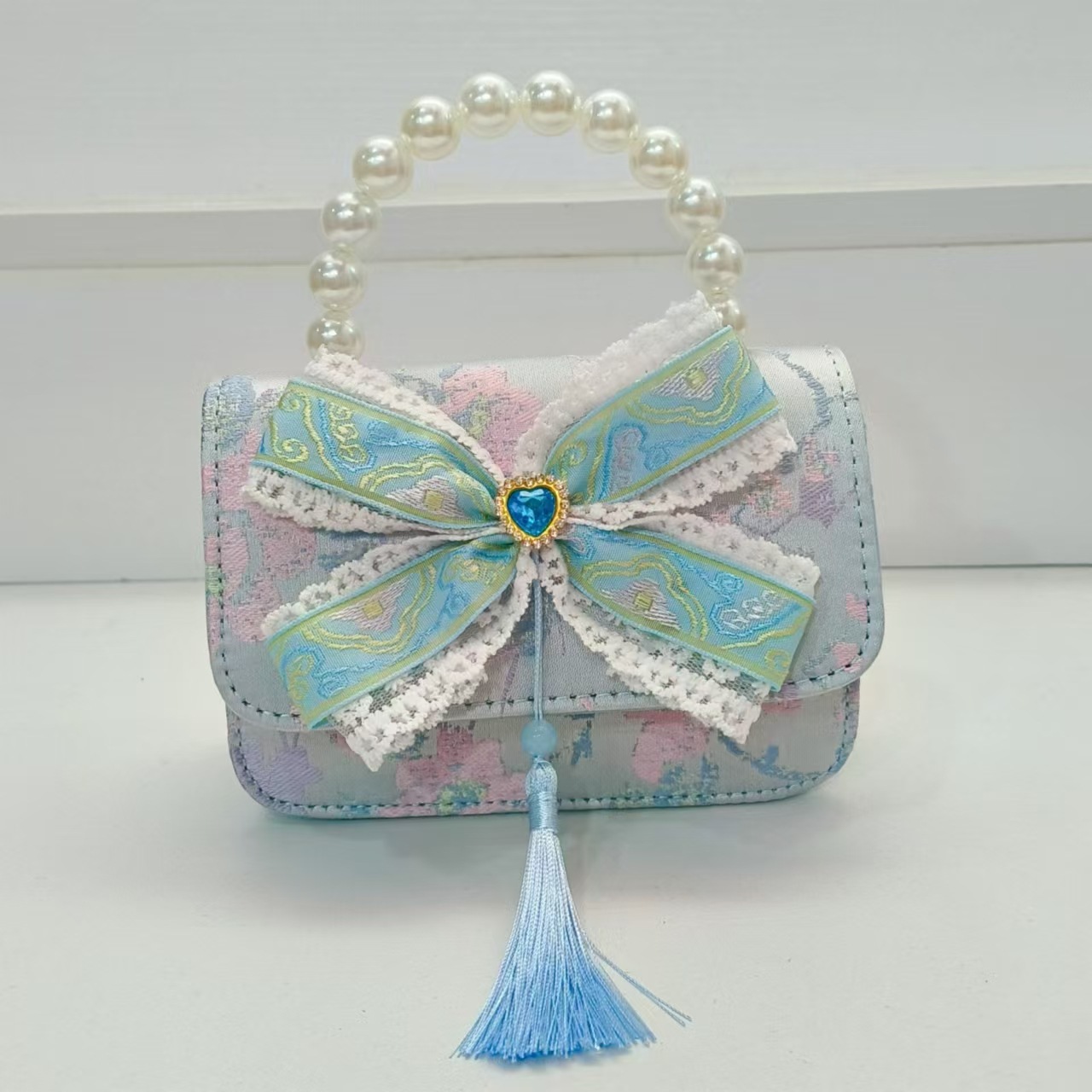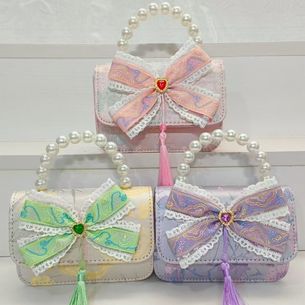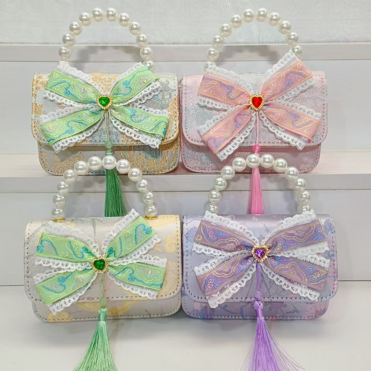 Guofeng arco princesa bolso de perla bolso de hombro bolso de cambio bolso pequeño bolso cuadrado bolso accesorios de ropa de niñas