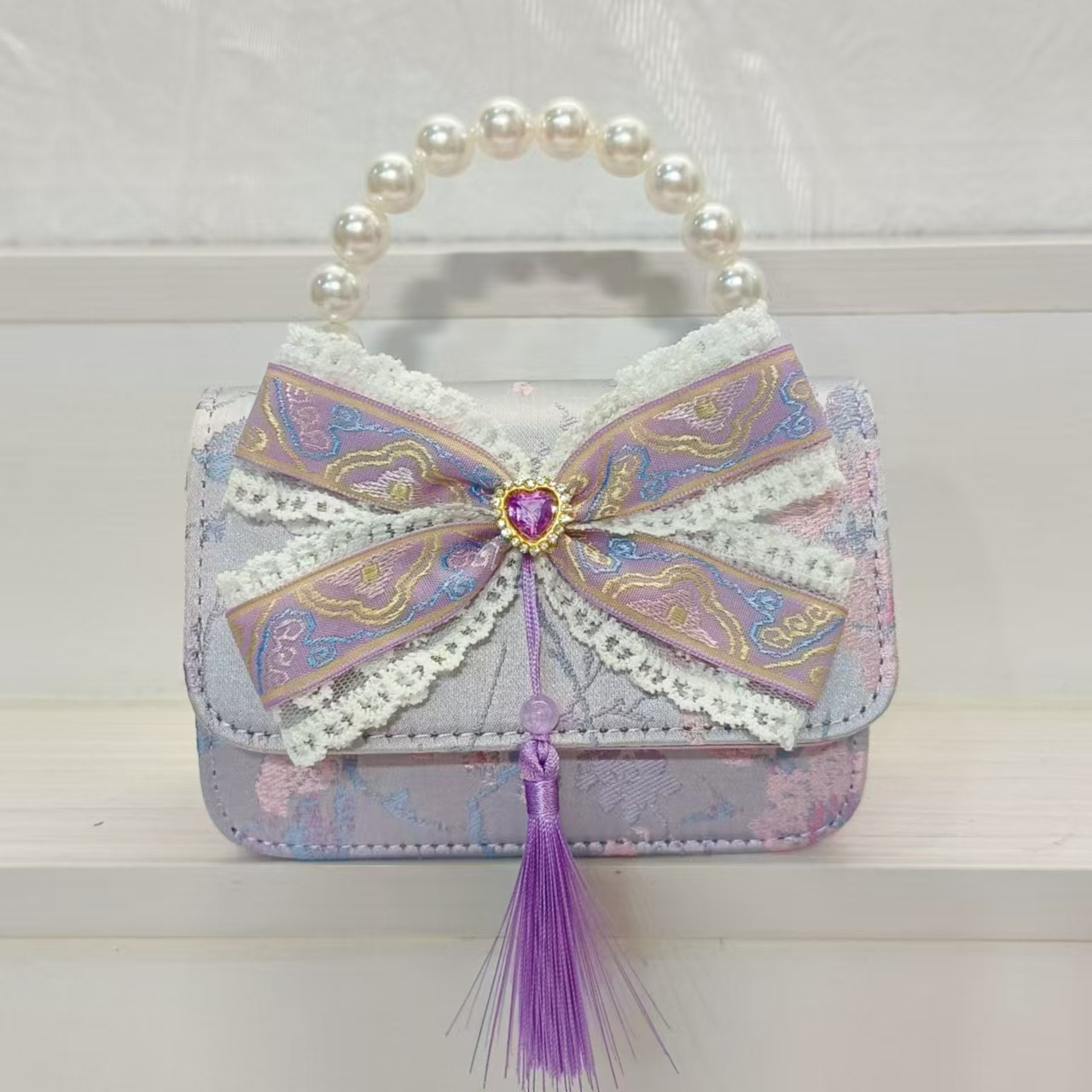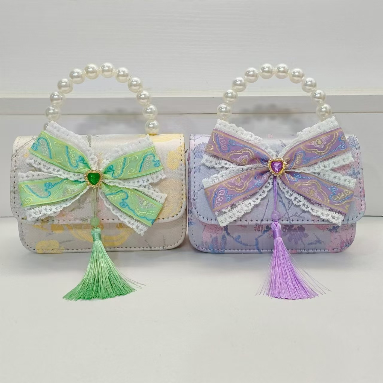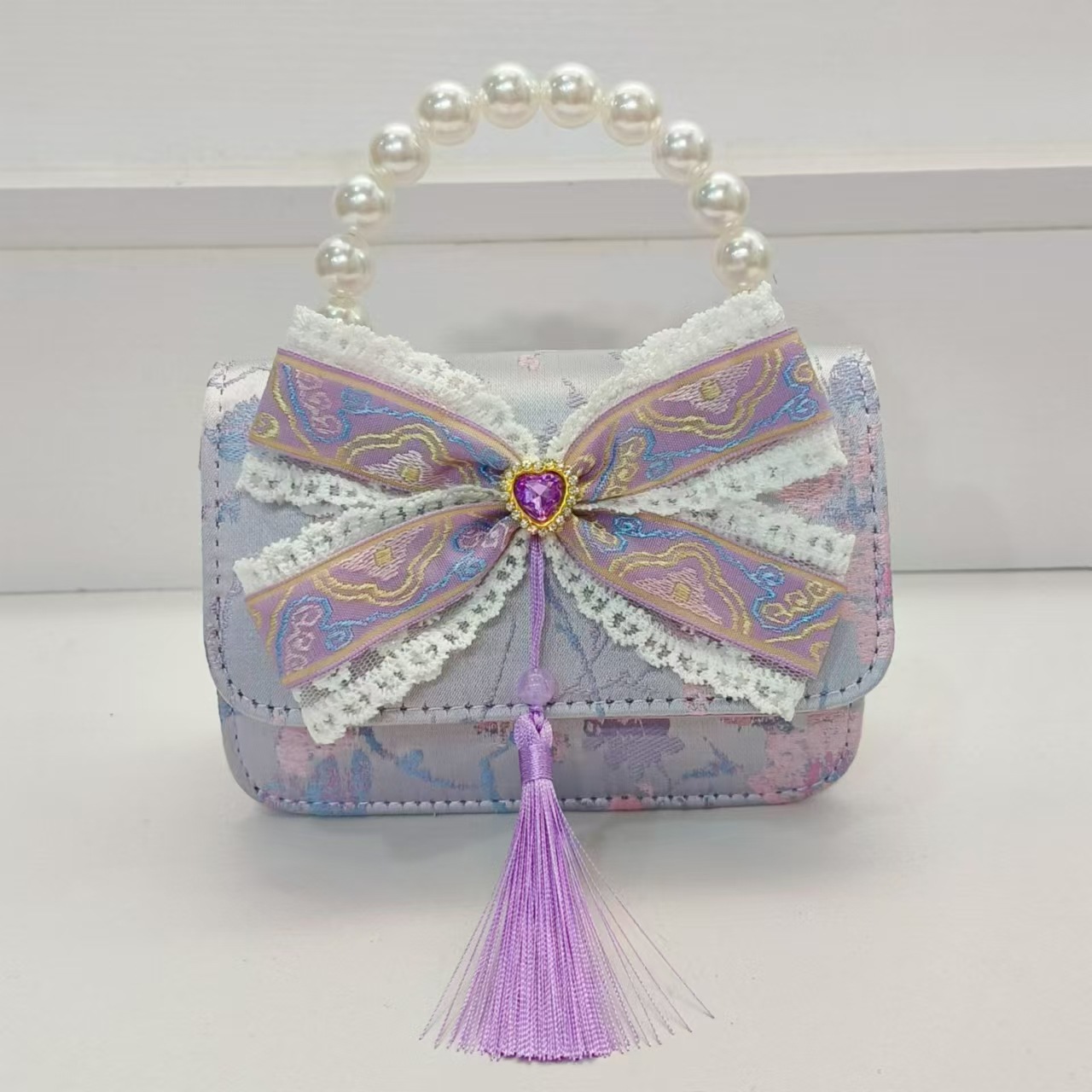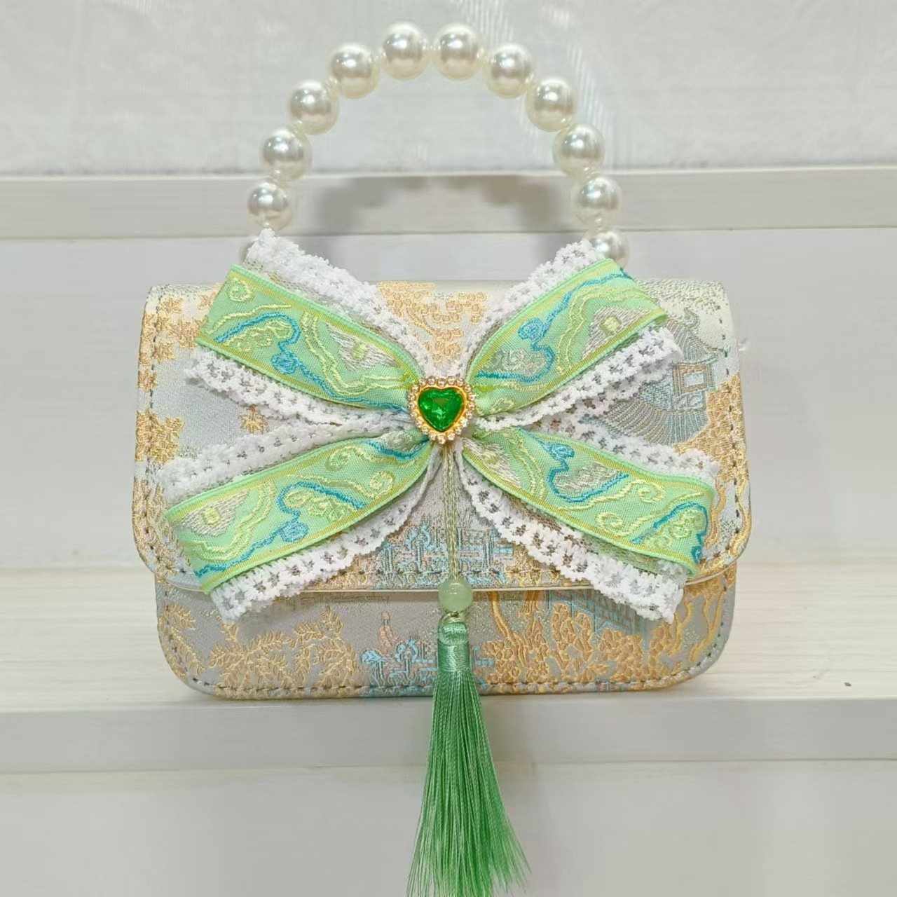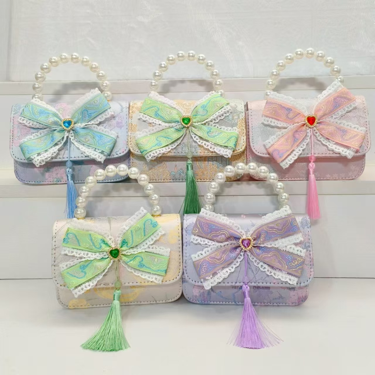 Guofeng arco princesa bolso de perla bolso de hombro bolso de cambio bolso pequeño bolso cuadrado bolso accesorios de ropa de niñas