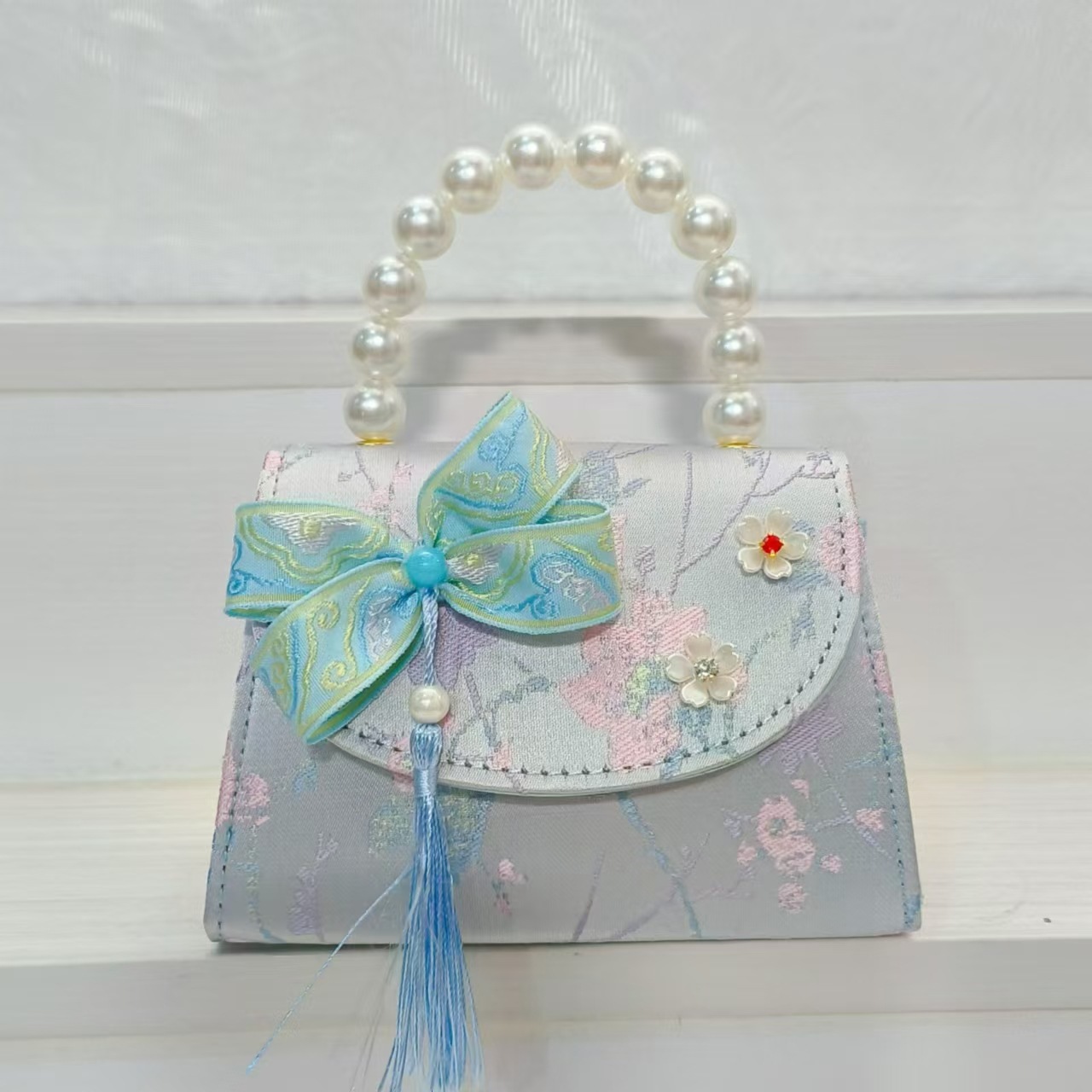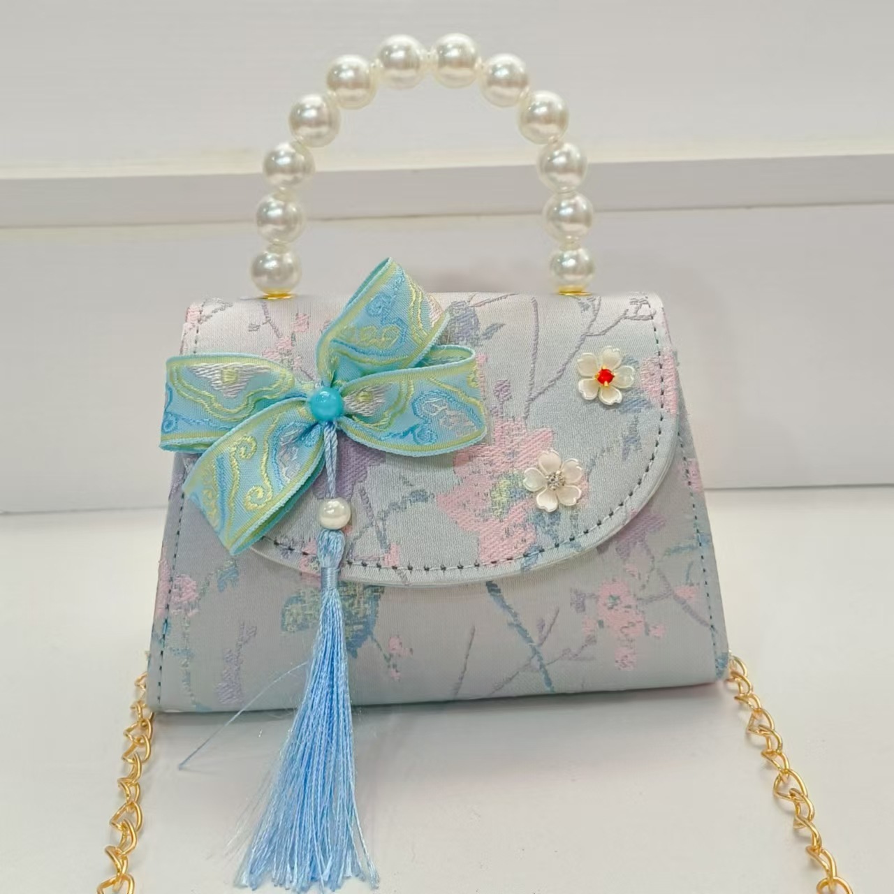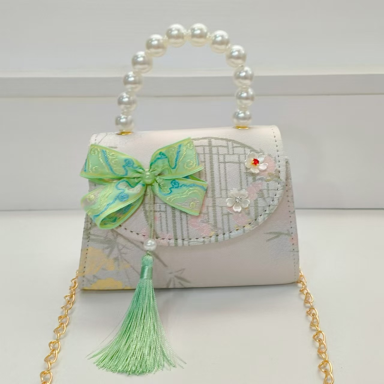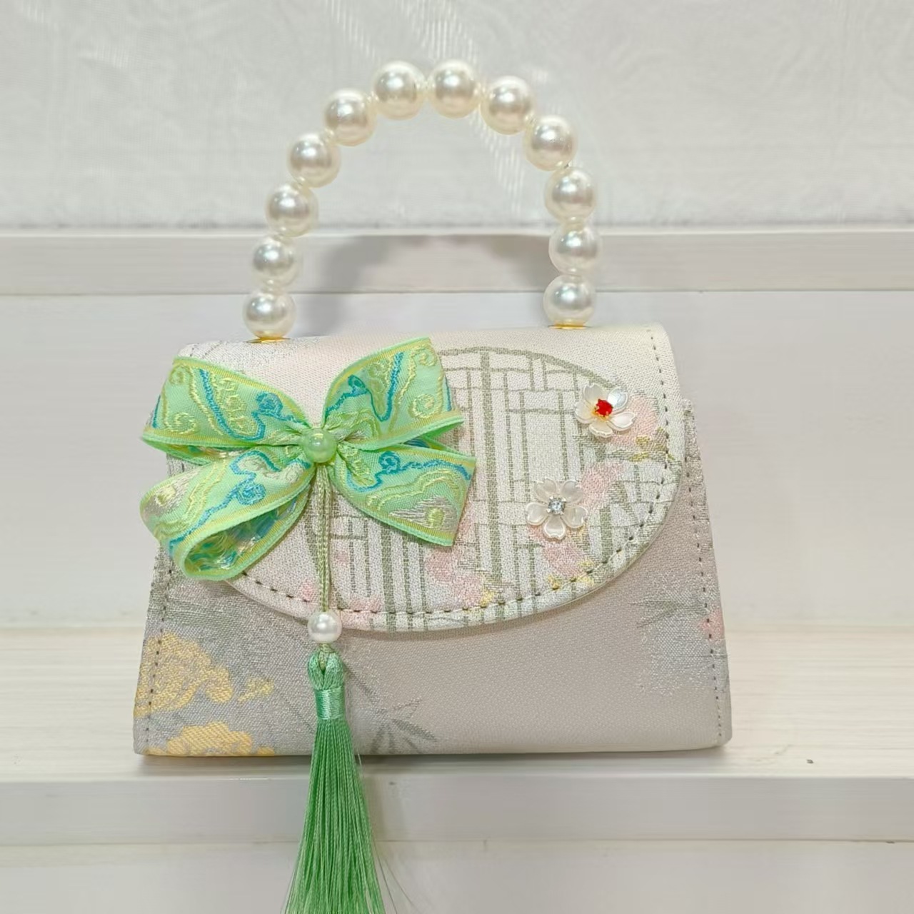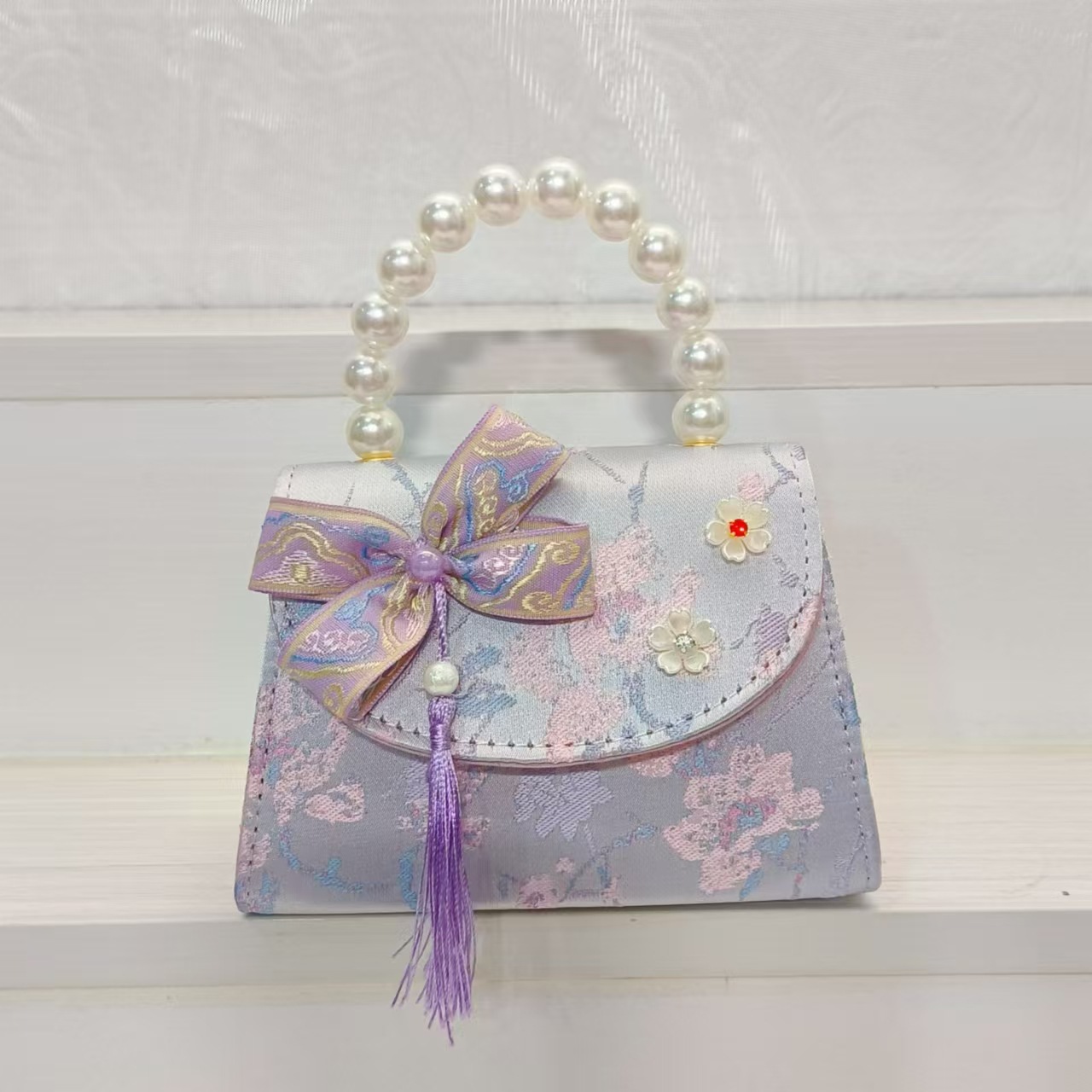Bolsas de niños arco de estilo chino borda de niña pequeña princesa perla bolsa de cambio de mano al por mayor