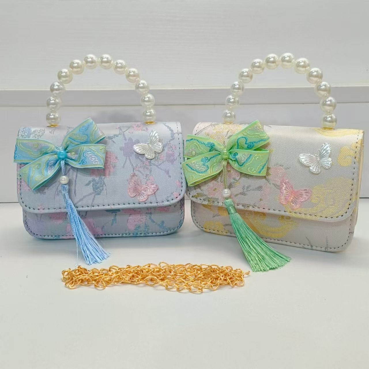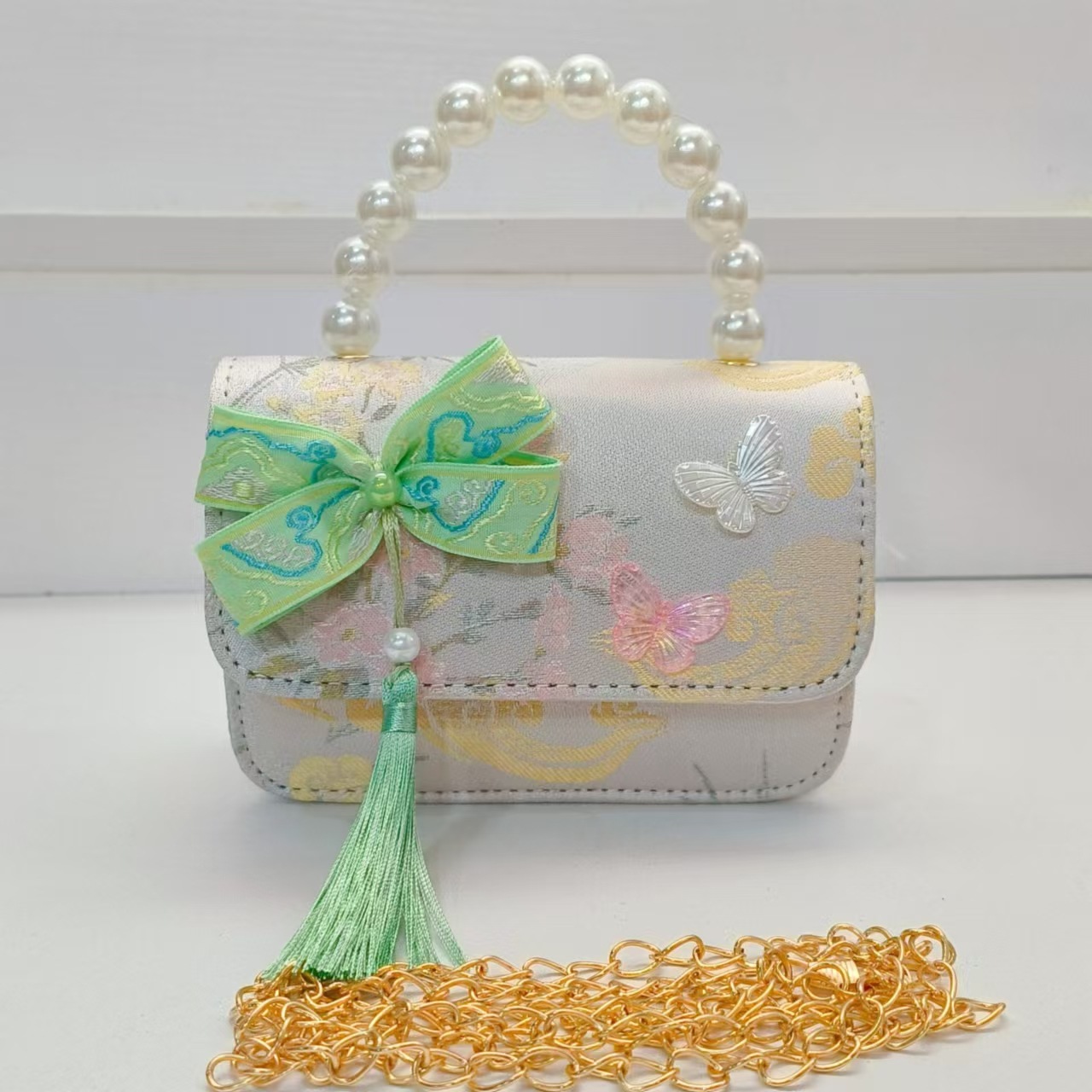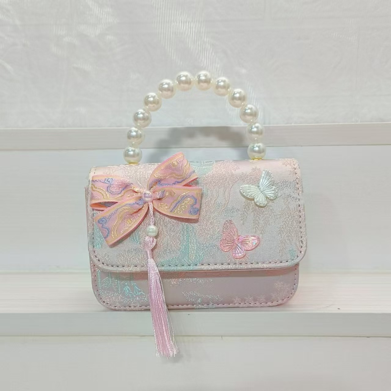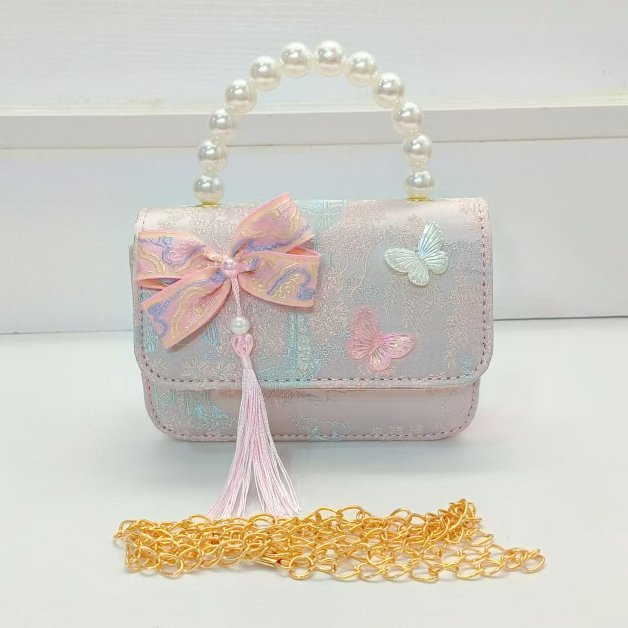 Bolsa de arco de estilo nacional de la princesa bolso de perla bolso de cadena bolso cuadrado bolso accesorios de ropa china para niños regalos de vacaciones de niñas