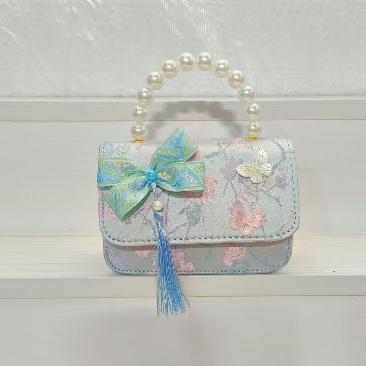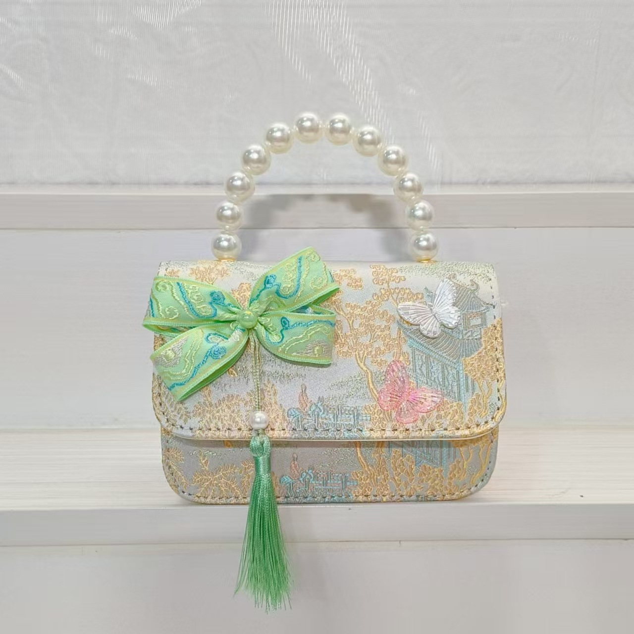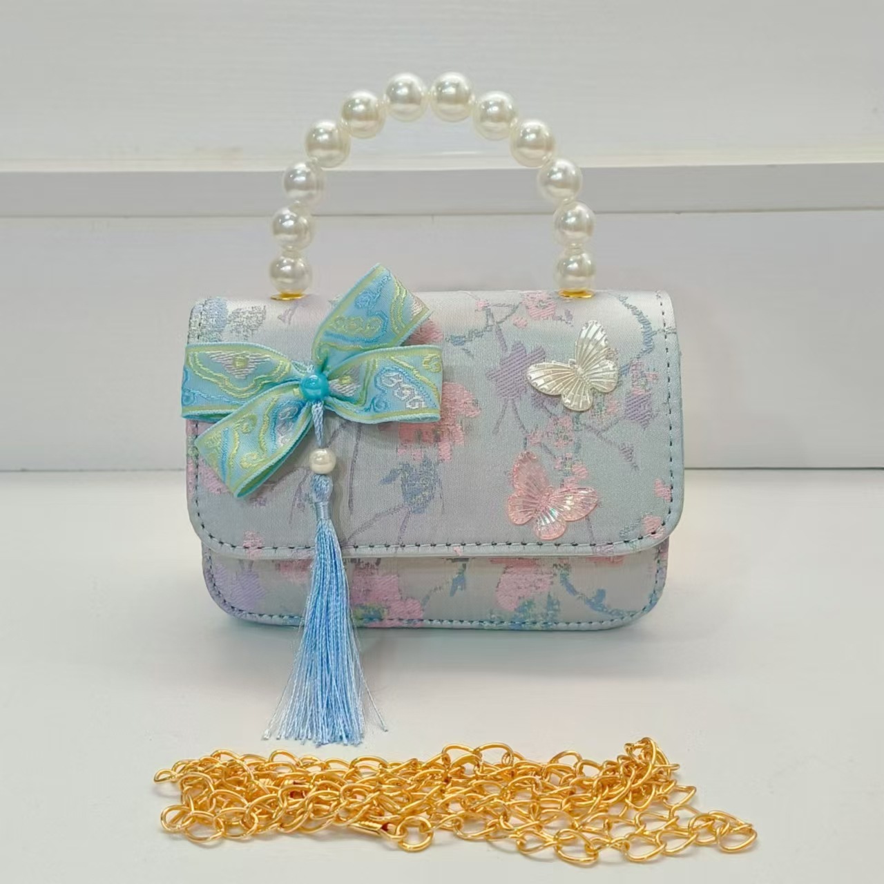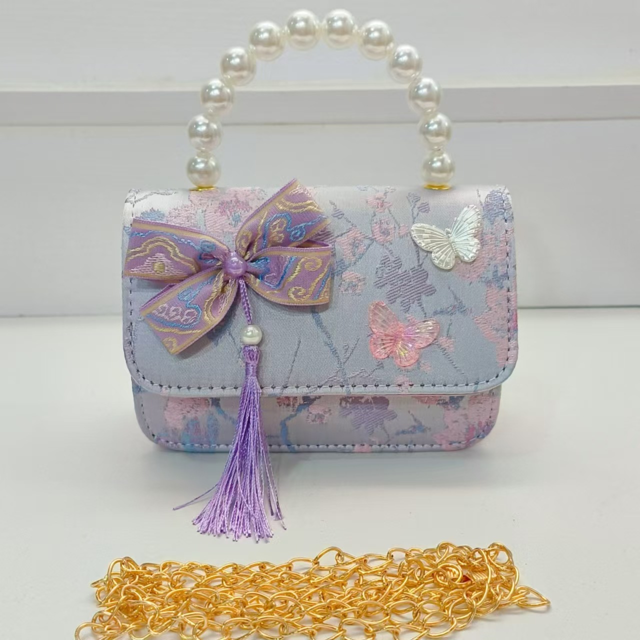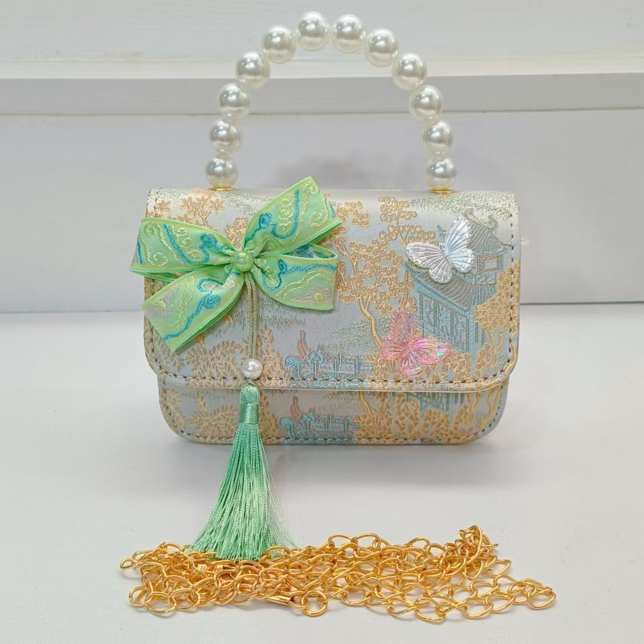 Bolsa de arco de estilo nacional de la princesa bolso de perla bolso de cadena bolso cuadrado bolso accesorios de ropa china para niños regalos de vacaciones de niñas