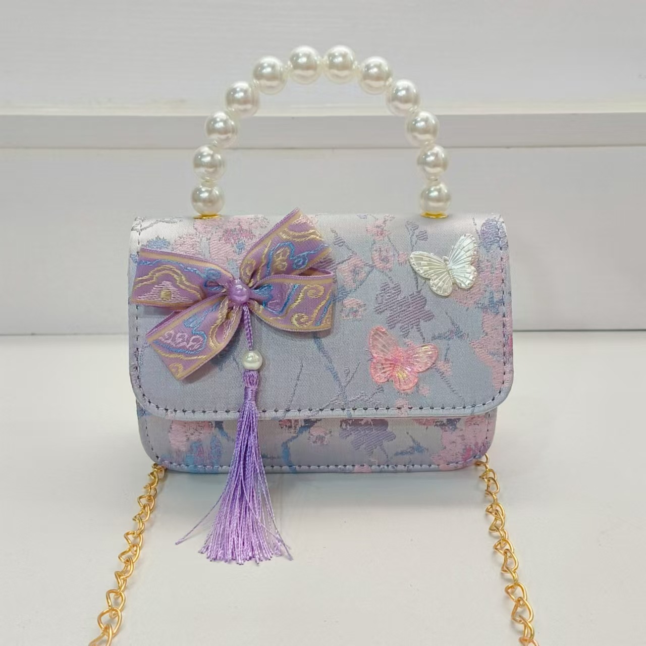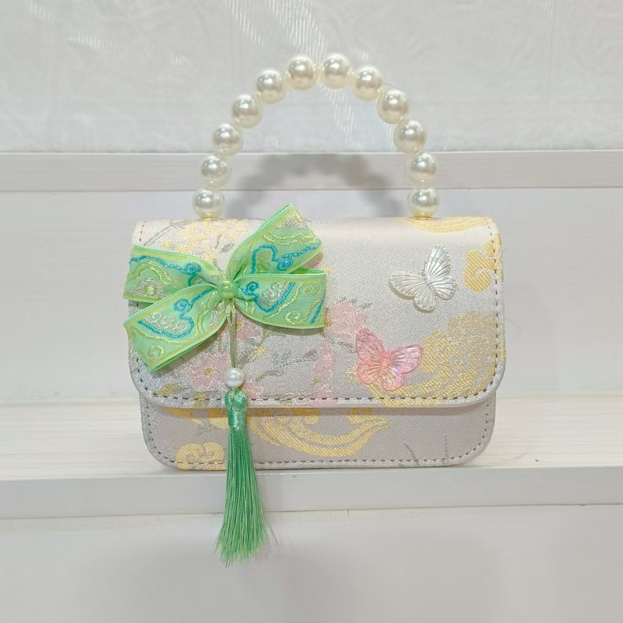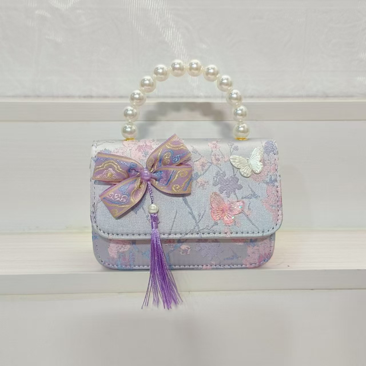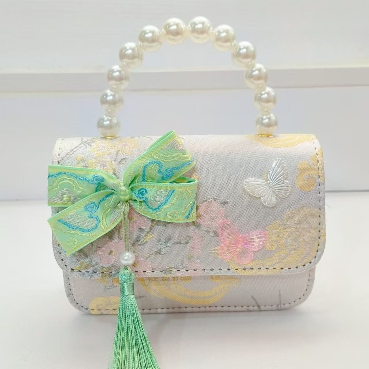 Bolsa de arco de estilo nacional de la princesa bolso de perla bolso de cadena bolso cuadrado bolso accesorios de ropa china para niños regalos de vacaciones de niñas