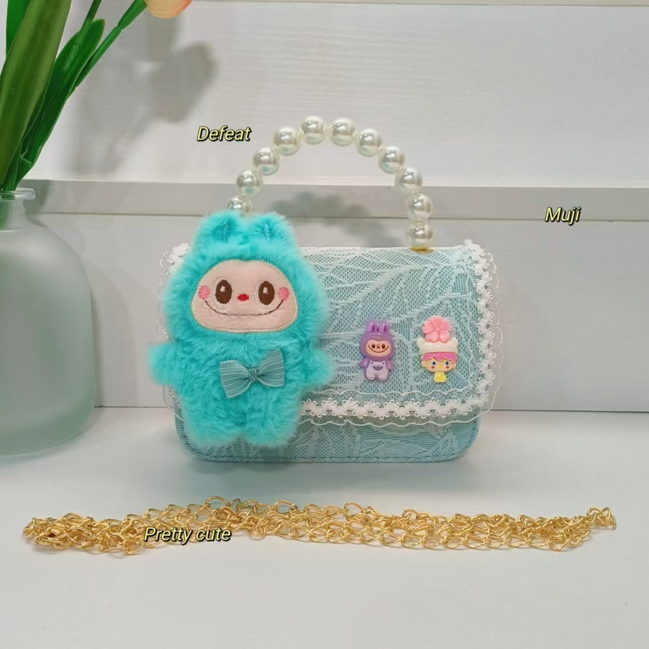 Bolso de perla de viento pequeño bolso de cambio bolso de accesorios bolso de cadena bolso de niños bolso de dibujos animados bolso de princesa