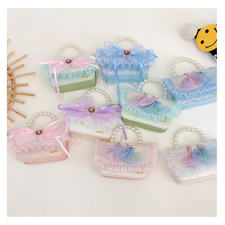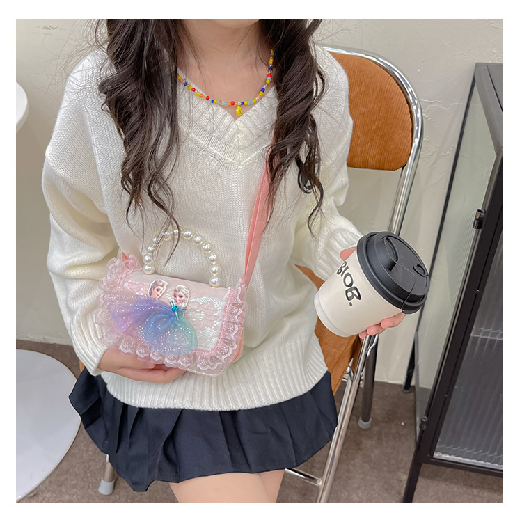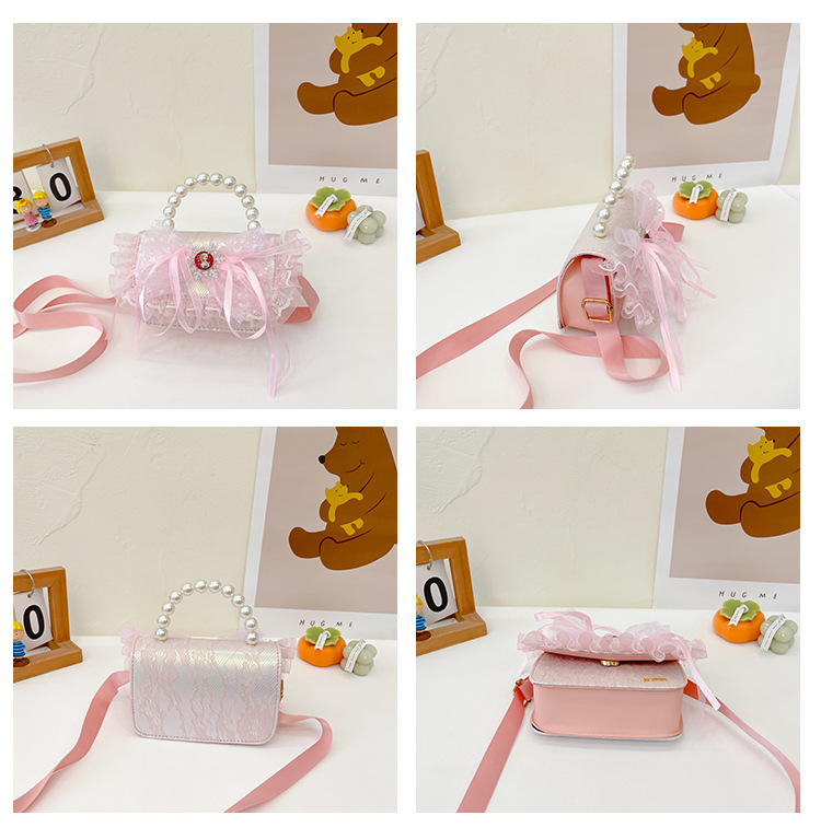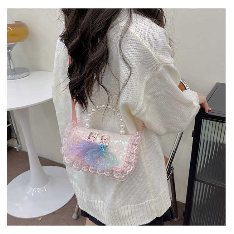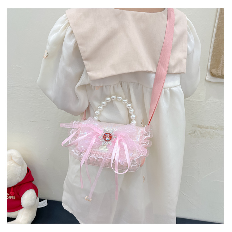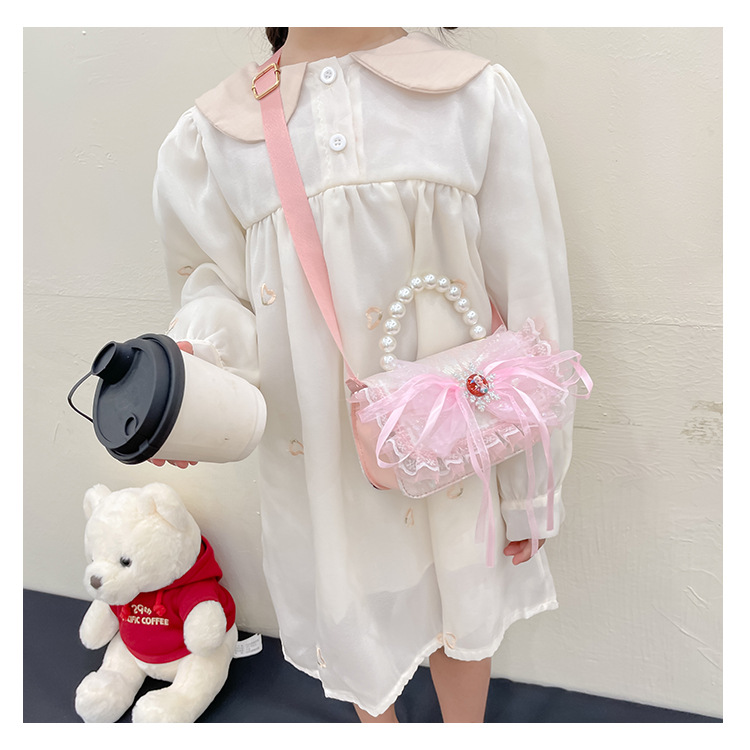 Bolsas para niños nuevas niñas bolsas de hombro lindas princesas bolsas de hombro de perlas de encaje bolsas de hombro al por mayor