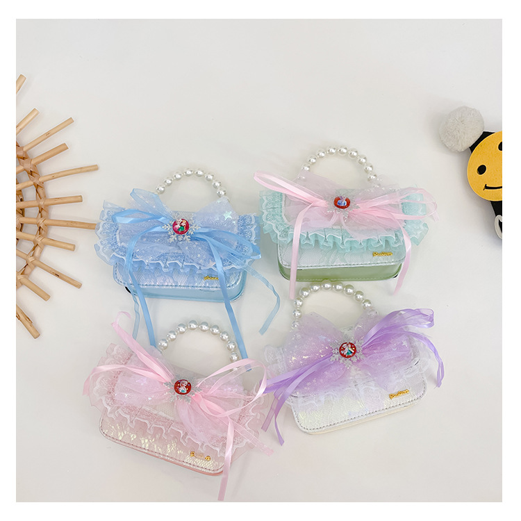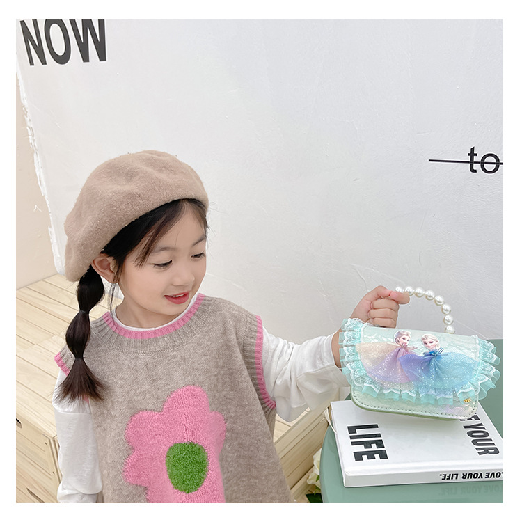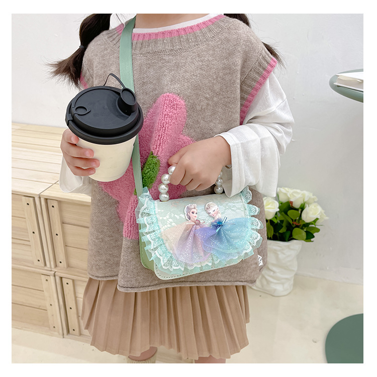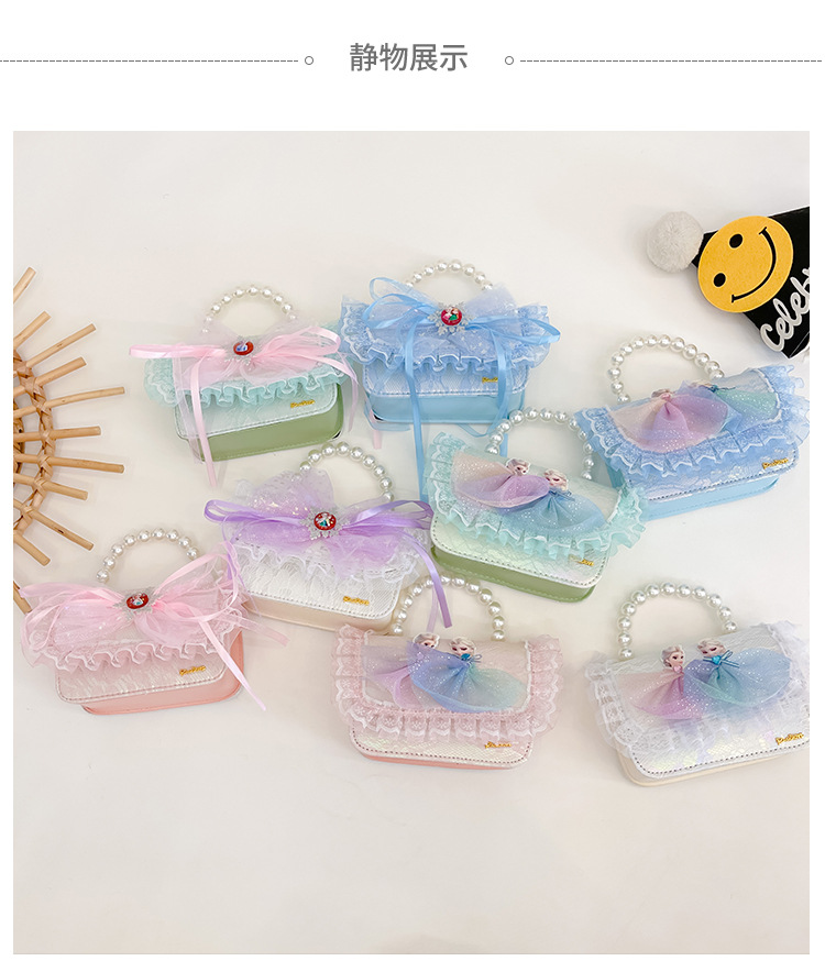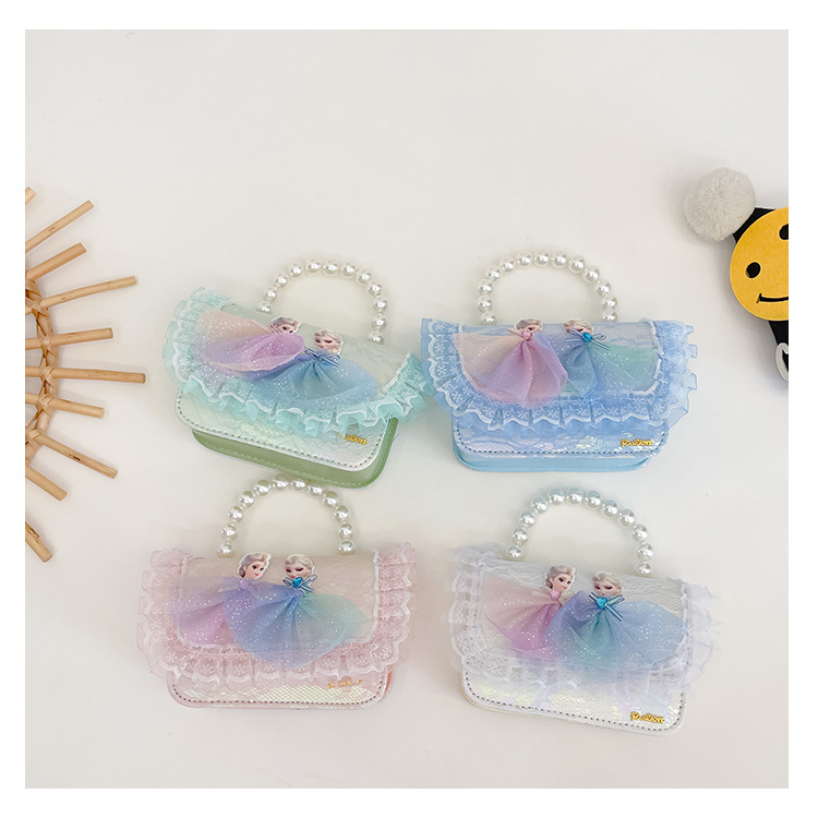 Bolsas para niños nuevas niñas bolsas de hombro lindas princesas bolsas de hombro de perlas de encaje bolsas de hombro al por mayor