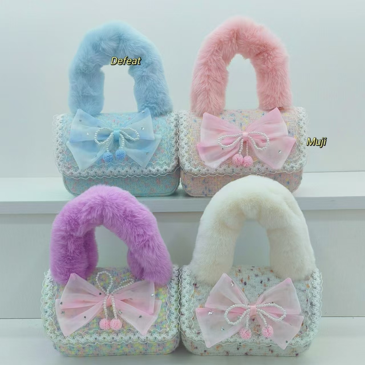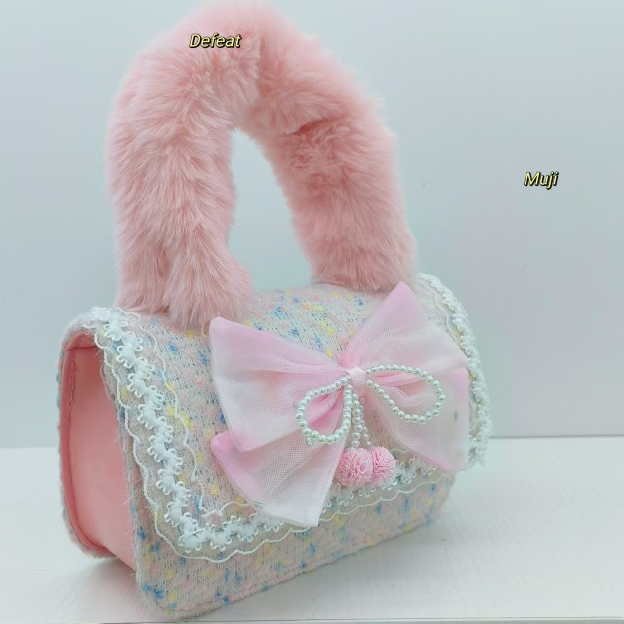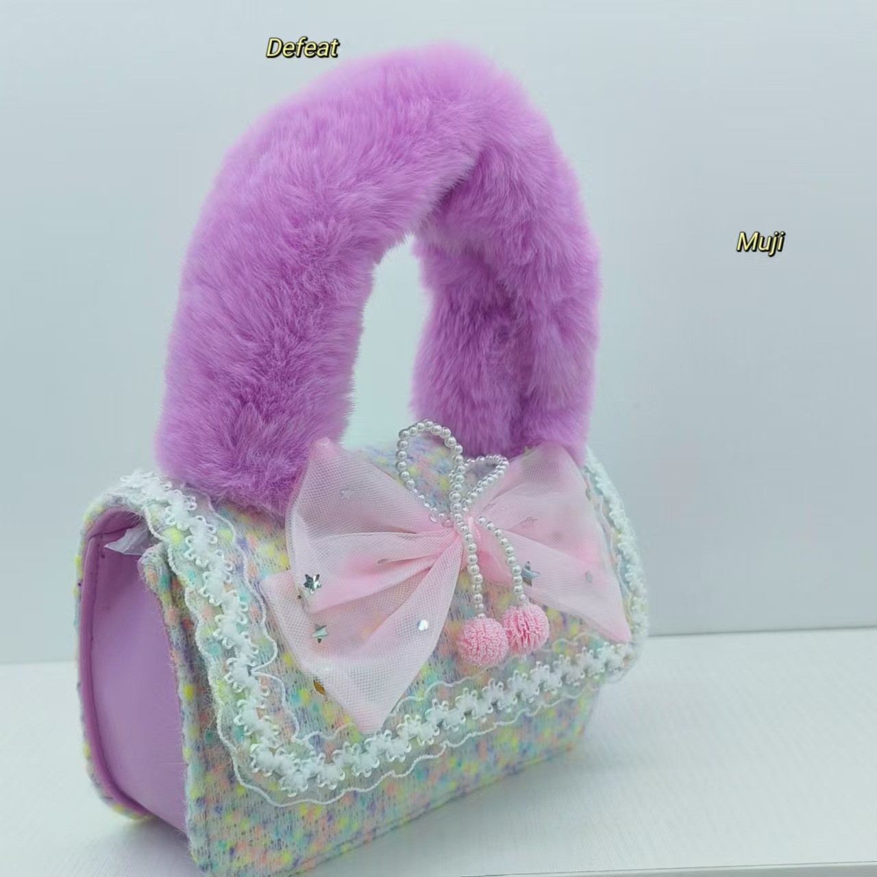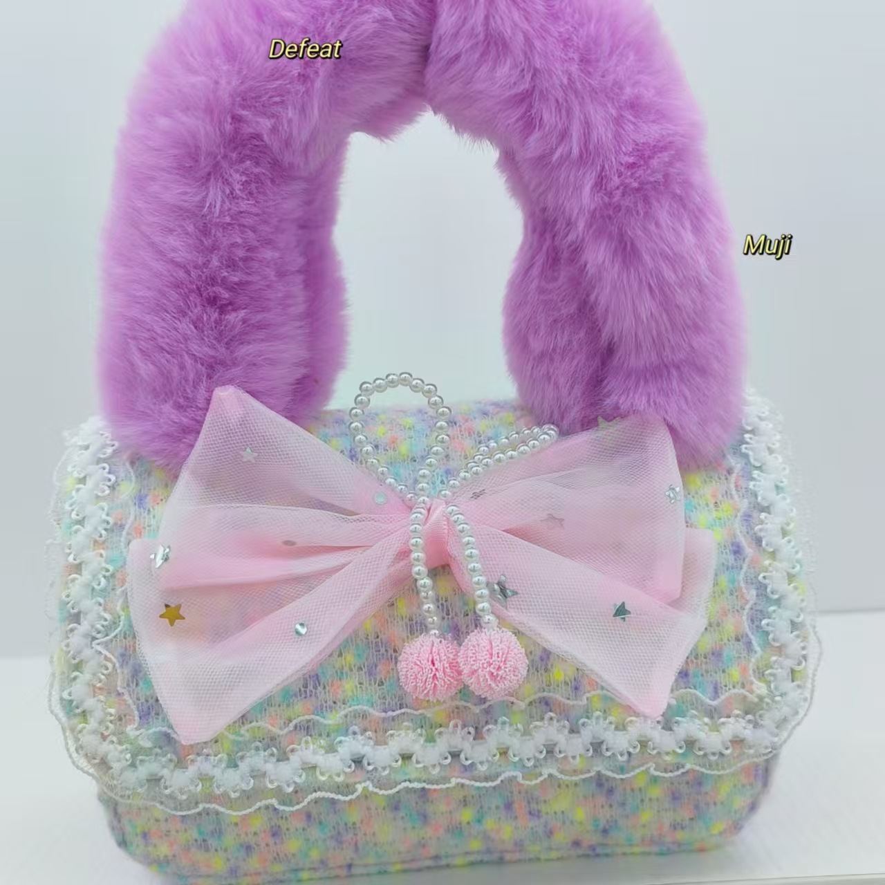 Bolso de peluche de arco, bolso de princesa, bolso de hombro, bolso de mochila, bolso de cambio, bolso de accesorios lindos.