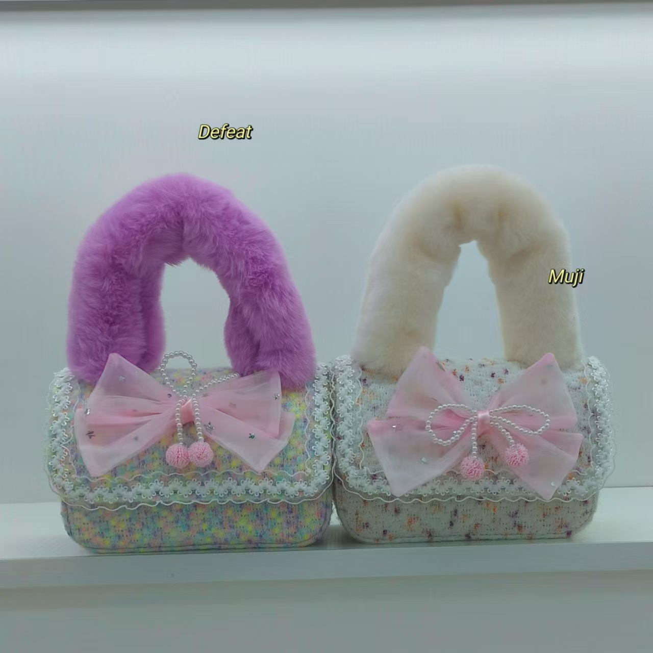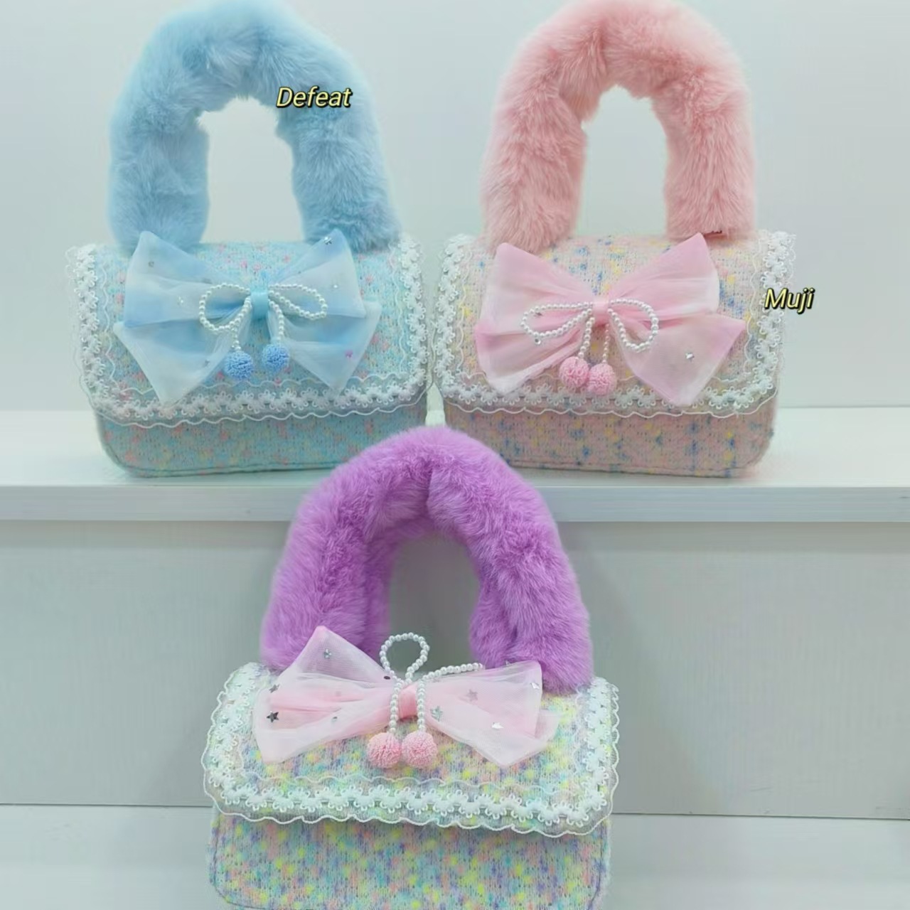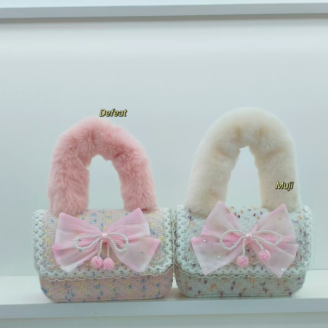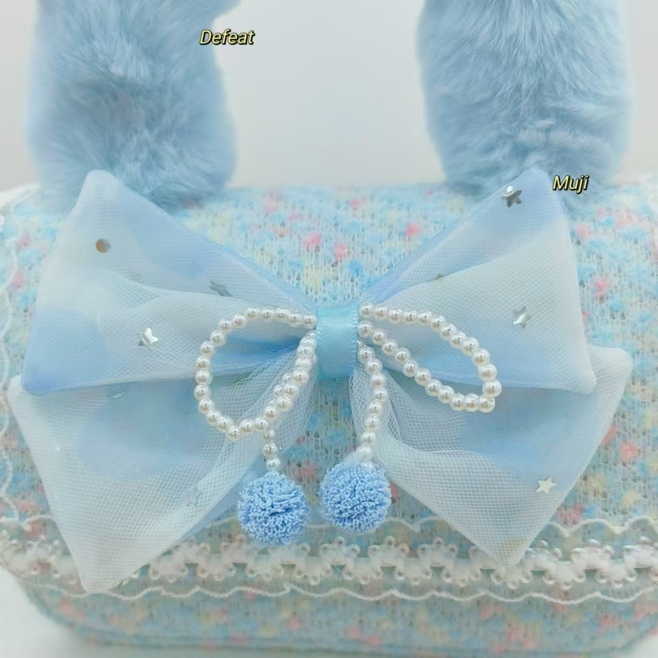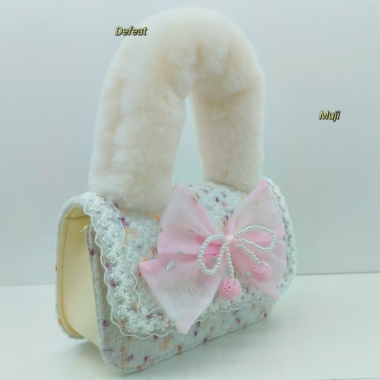 Bolso de peluche de arco, bolso de princesa, bolso de hombro, bolso de mochila, bolso de cambio, bolso de accesorios lindos.
